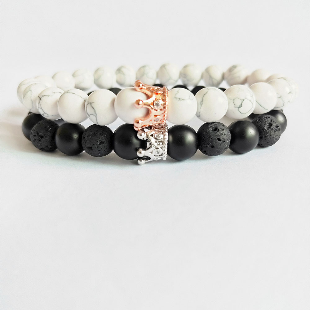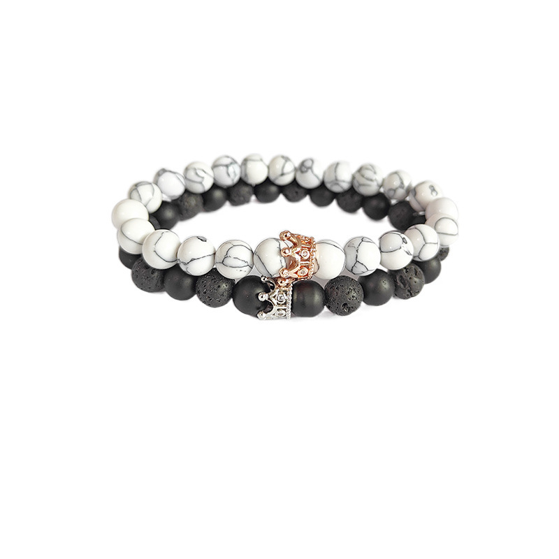 Edelstein Armbänder, Magnesit, mit Lava & Non- magnetische Hämatit & Zinklegierung, Modeschmuck & mit Strass, gemischte Farben, 8mm, Länge:21 cm, verkauft von PC