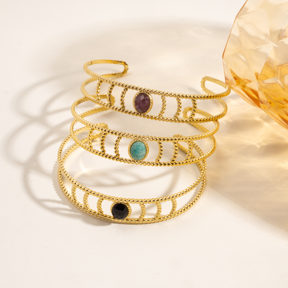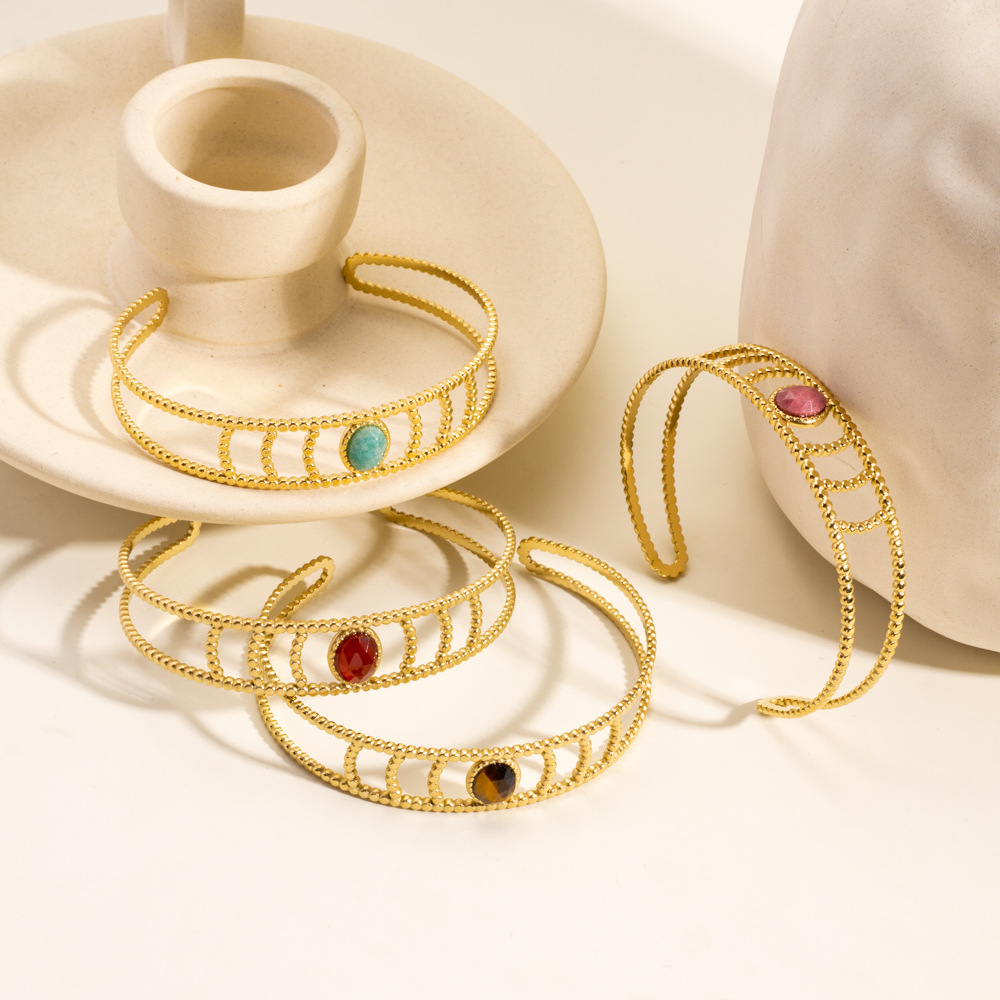 Edelstein Armbänder, 304 Edelstahl, mit Naturstein, plattiert, Modeschmuck, keine, verkauft von PC