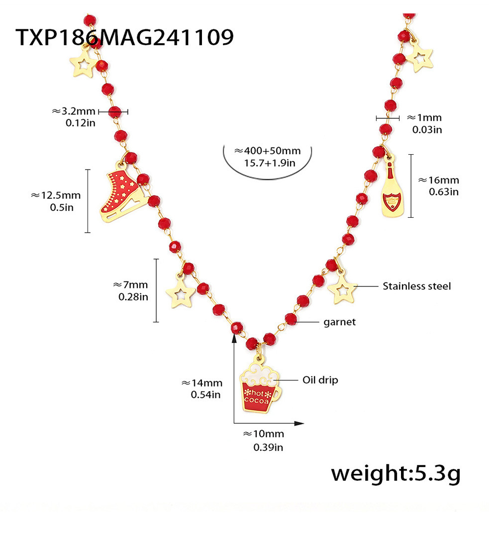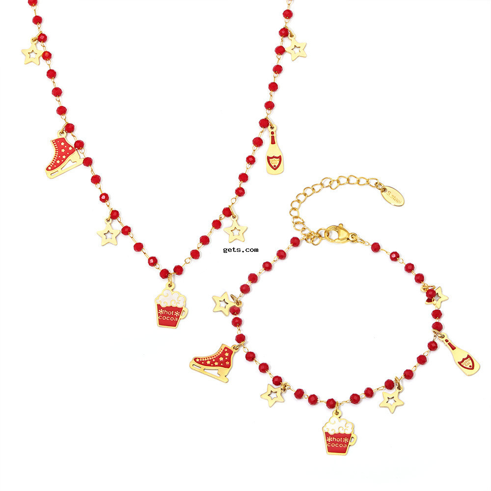 - Emaille Edelstahl Schmuck Set, 304 Edelstahl, mit Granat