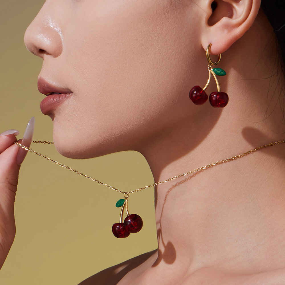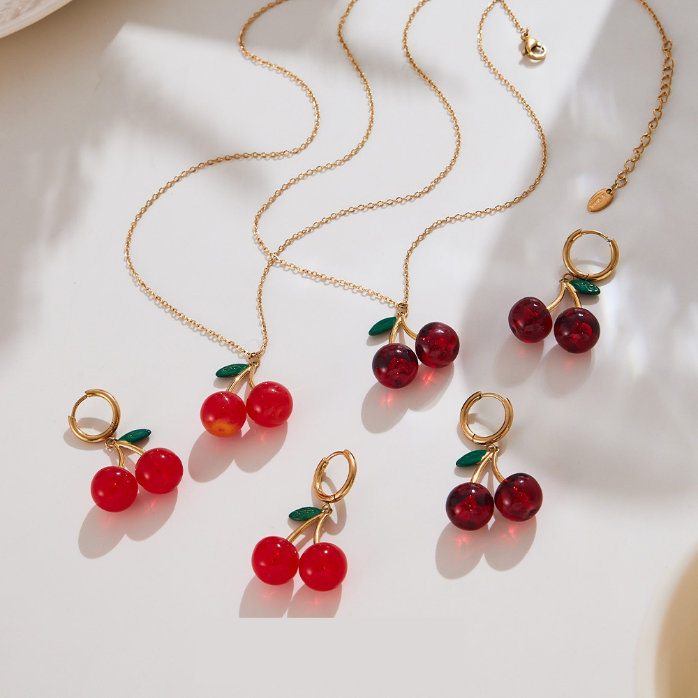 - Emaille Edelstahl Schmuck Set, Anhänger & Ohrring, Tropfen