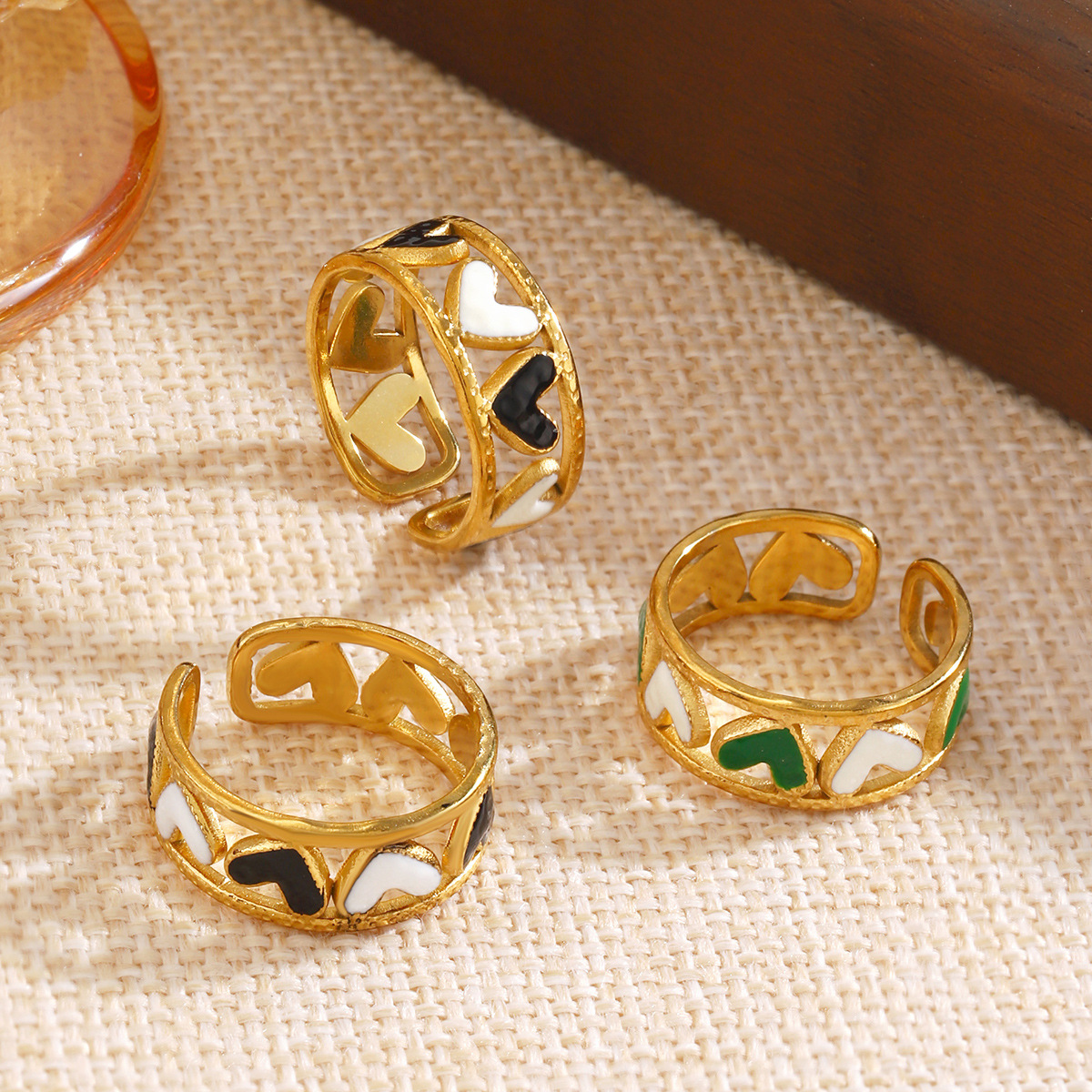 - Emaille Rostfreier Edelstahl Fingerring, 304 Edelstahl, Herz
