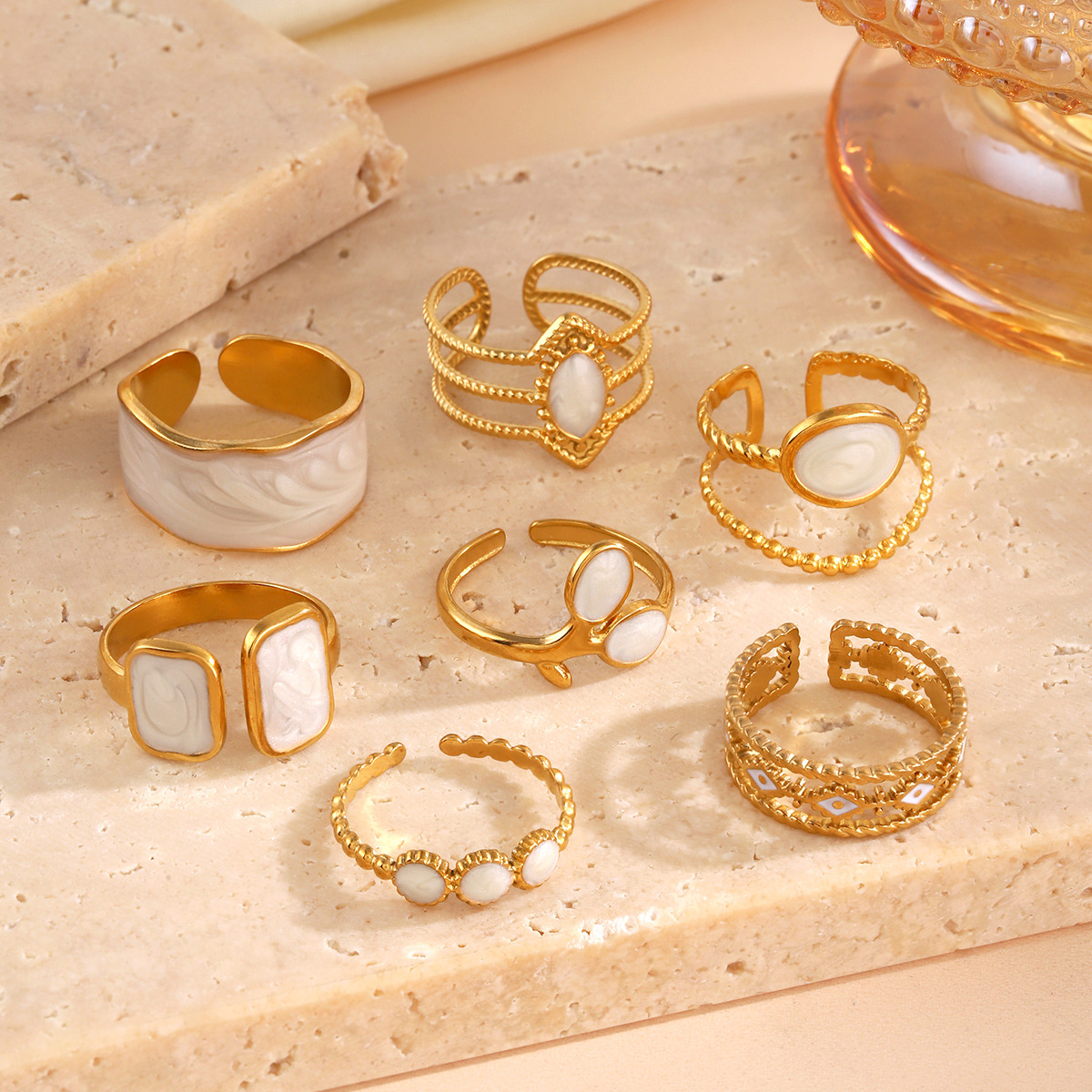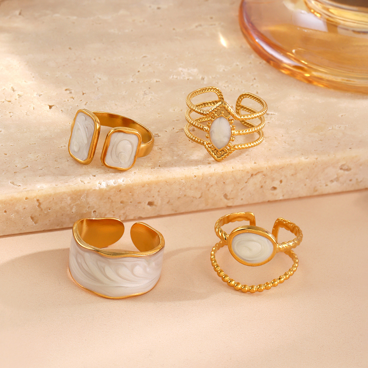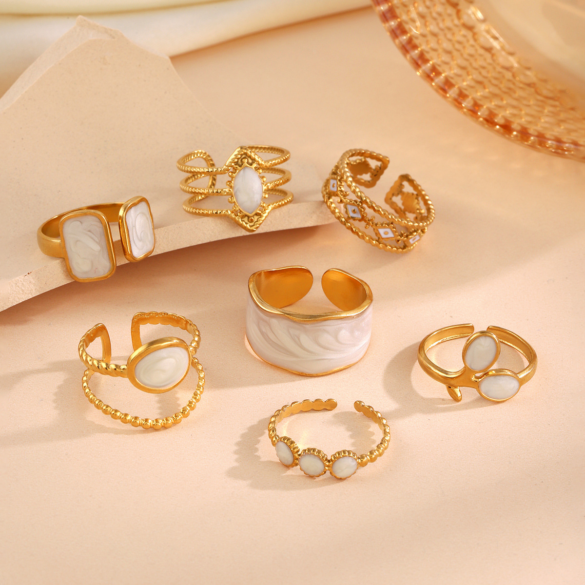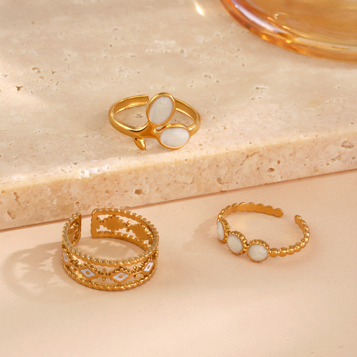 Emaille Rostfreier Edelstahl Fingerring, 304 Edelstahl, plattiert, Einstellbar & drei Stücke & für Frau, goldfarben, verkauft von setzen
