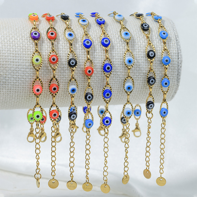 - Evil Eye Schmuck Armband, Zinklegierung, mit Messingkette
