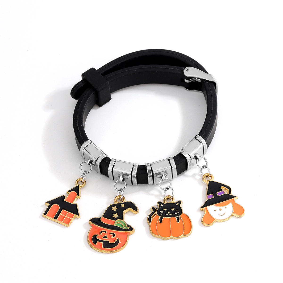 Halloween Armband, 304 Edelstahl, mit Silikon, goldfarben plattiert, Design für Halloween & Emaille, keine, 120x100x10mm, Länge:18 cm, verkauft von PC