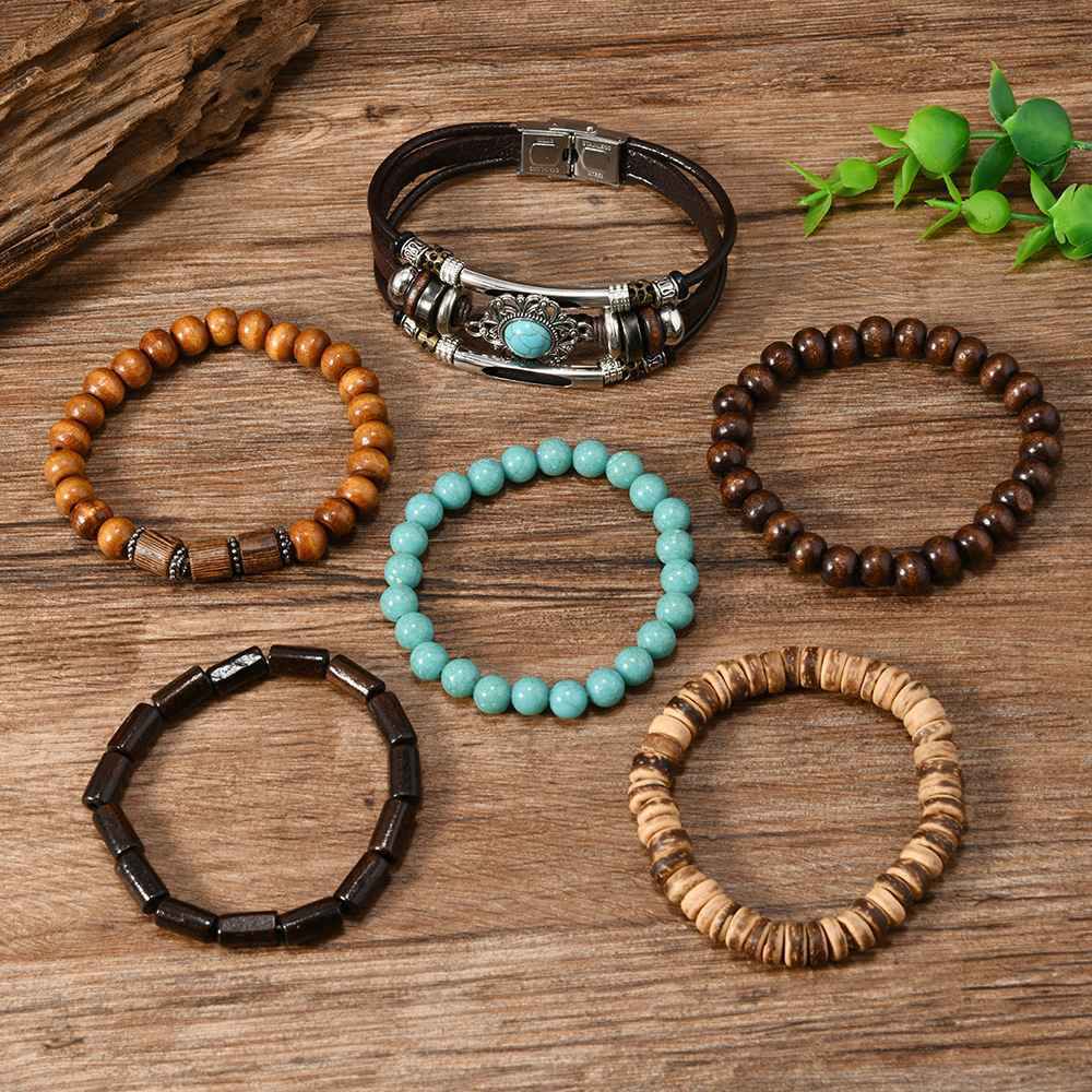 - Holz Armbänder, mit elastischer Faden, handgemacht