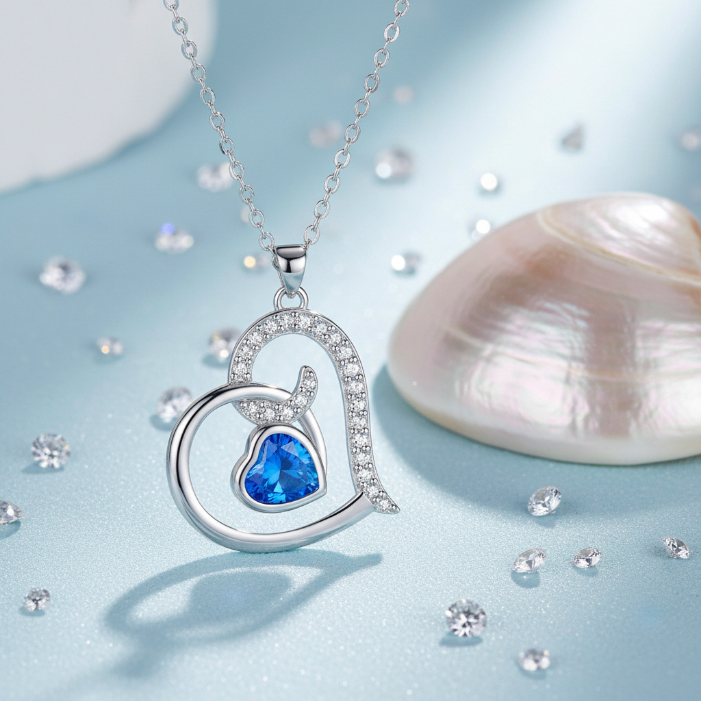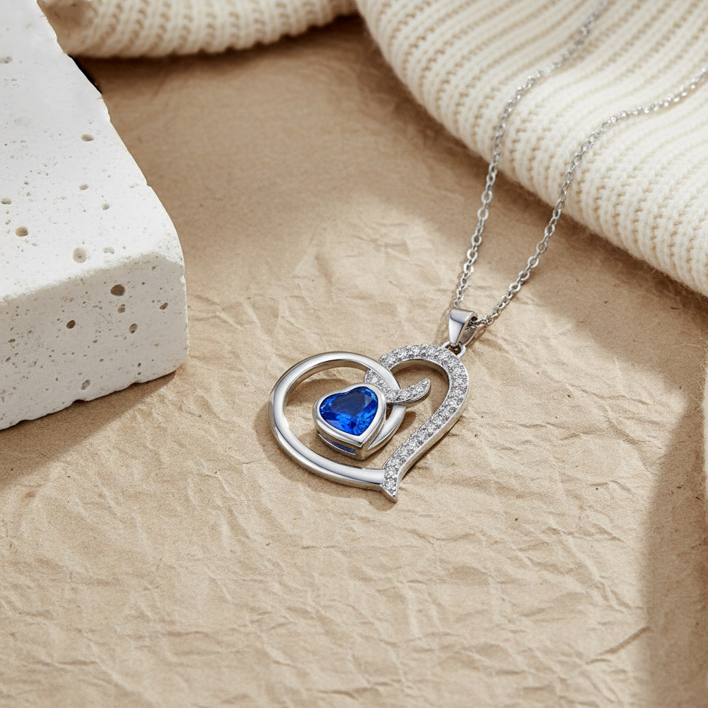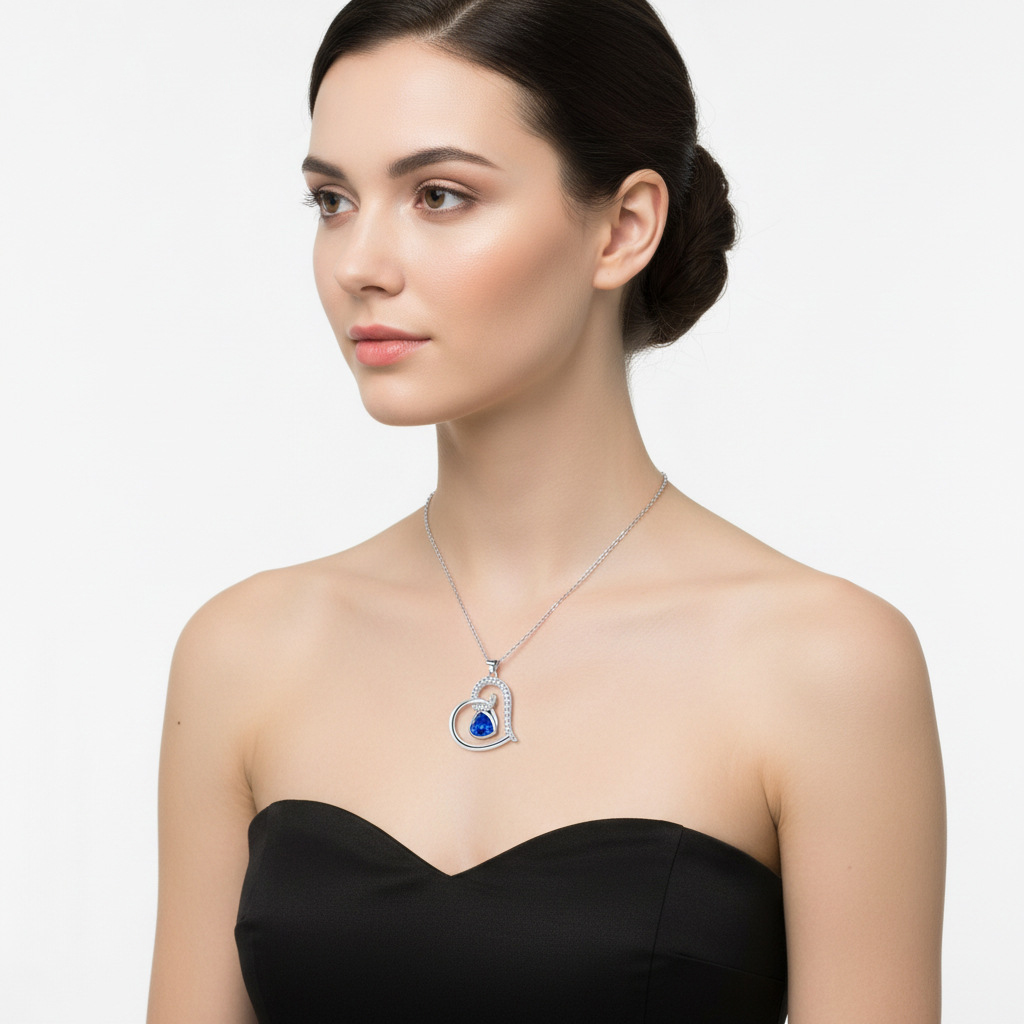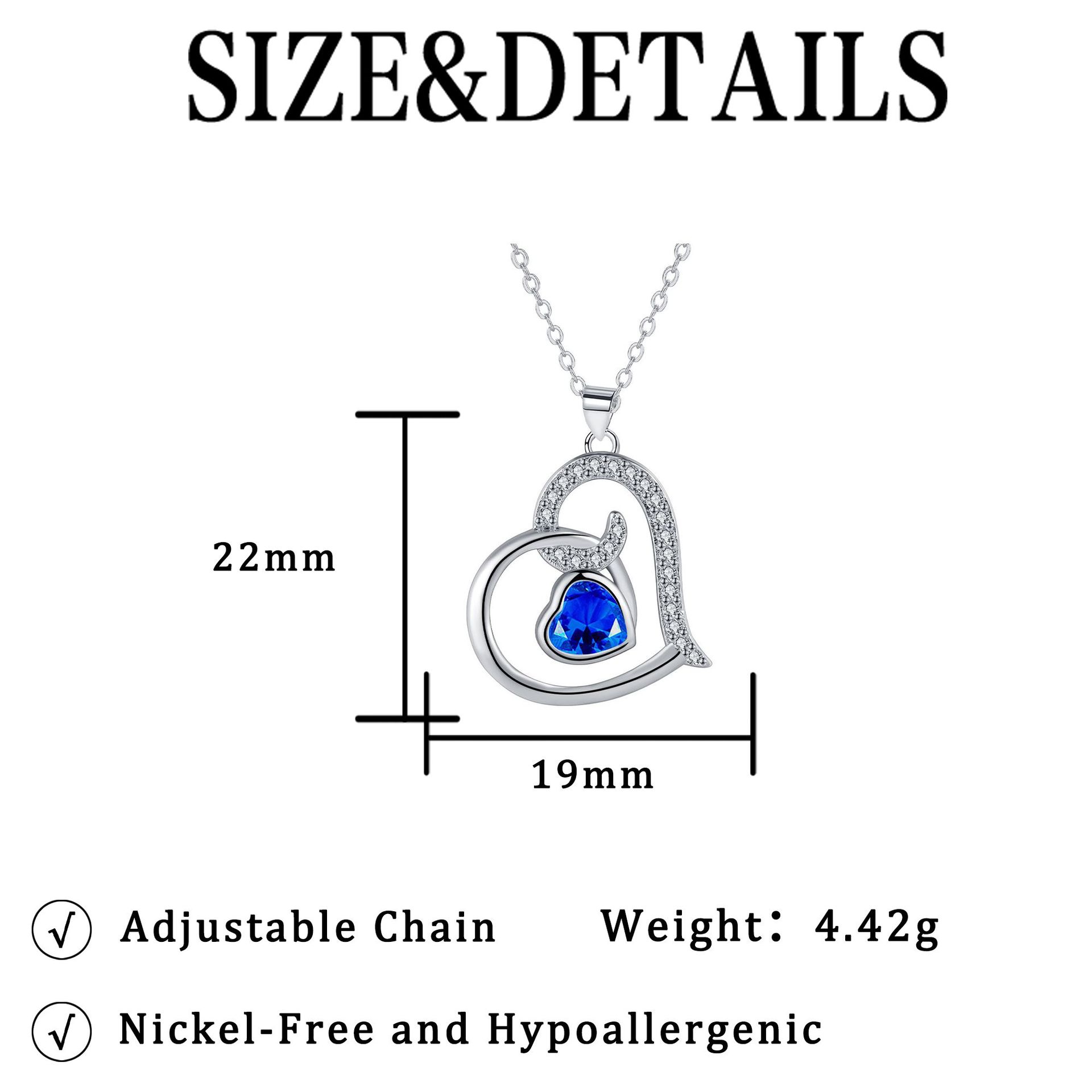 KubikZircon Mikro pflastern Messinghalsketten, Messing, mit Verlängerungskettchen von 5cm, Herz, Platinfarbe platiniert, Oval-Kette & Micro pave Zirkonia & für Frau, blau, 19x22mm, verkauft per ca. 45 cm Strang