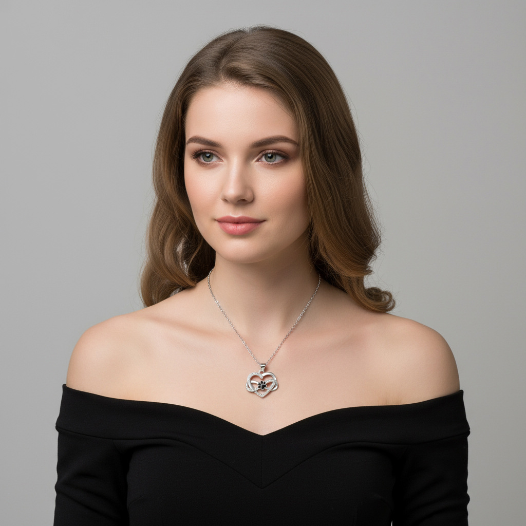 KubikZircon Mikro pflastern Messinghalsketten, Messing, mit Verlängerungskettchen von 5cm, Herz, platiniert, Oval-Kette & Micro pave Zirkonia & für Frau & Emaille, schwarz, 22x22mm, verkauft per ca. 45 cm Strang