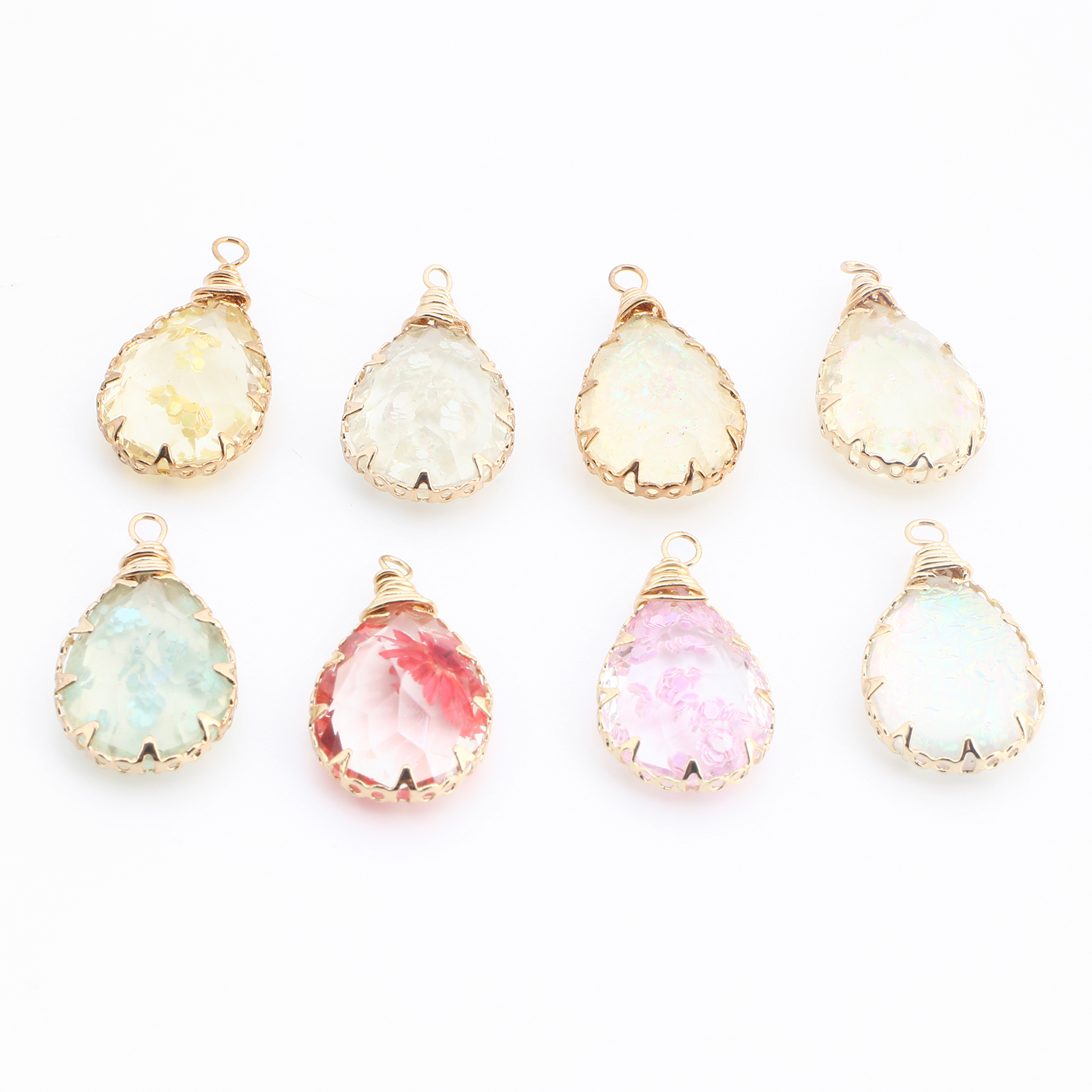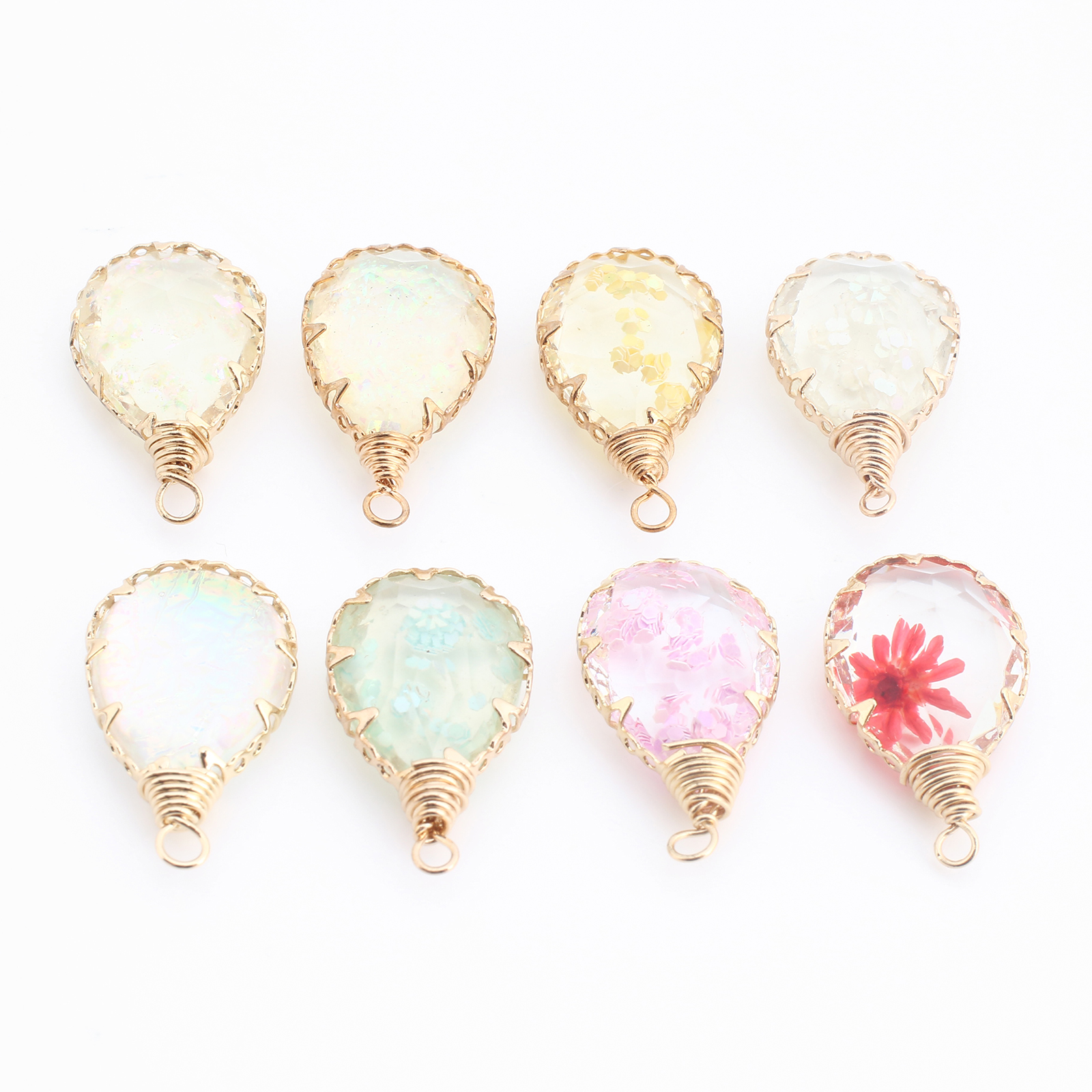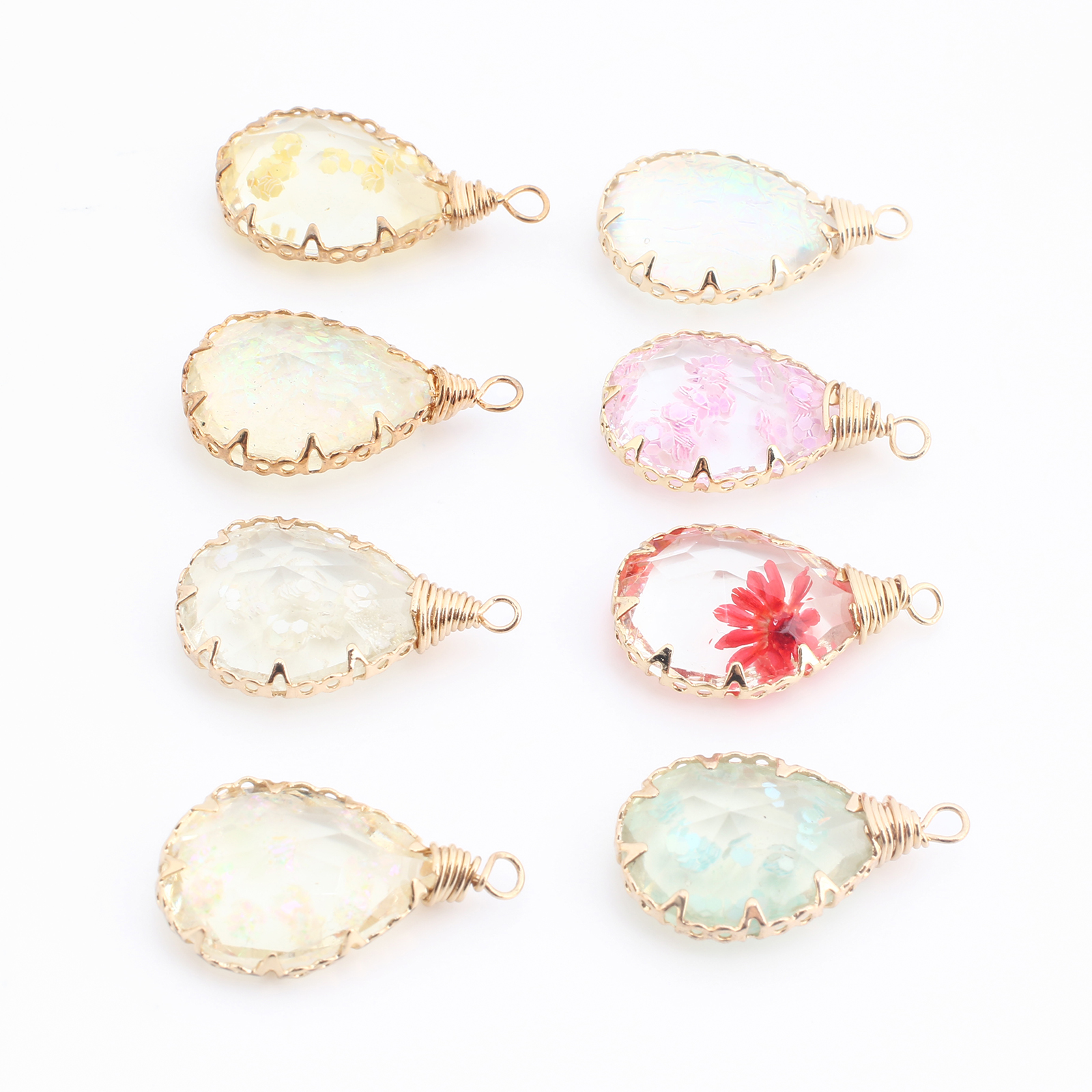 - Harz Halskette, mit Getrocknete Blumen & Zinklegierung, rund