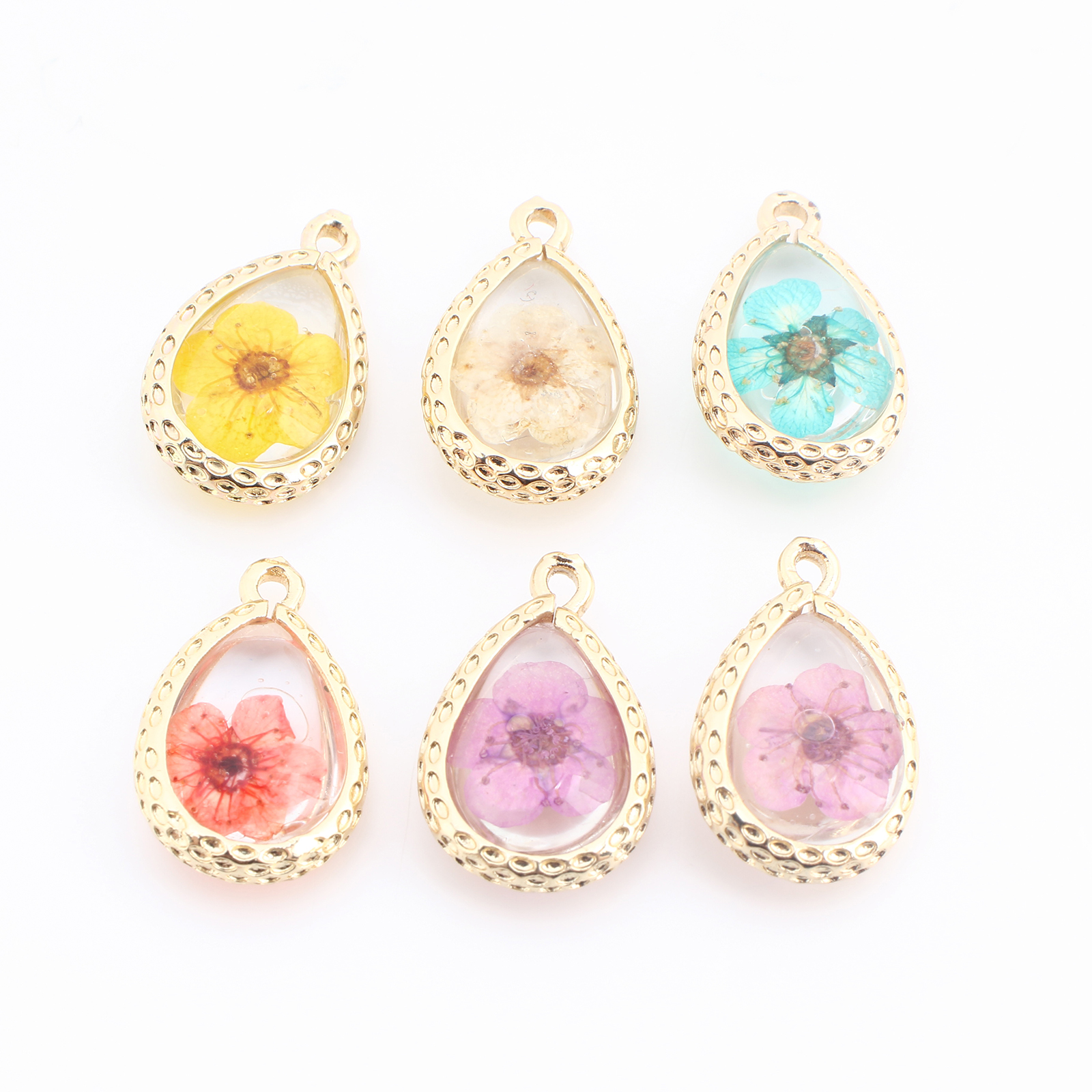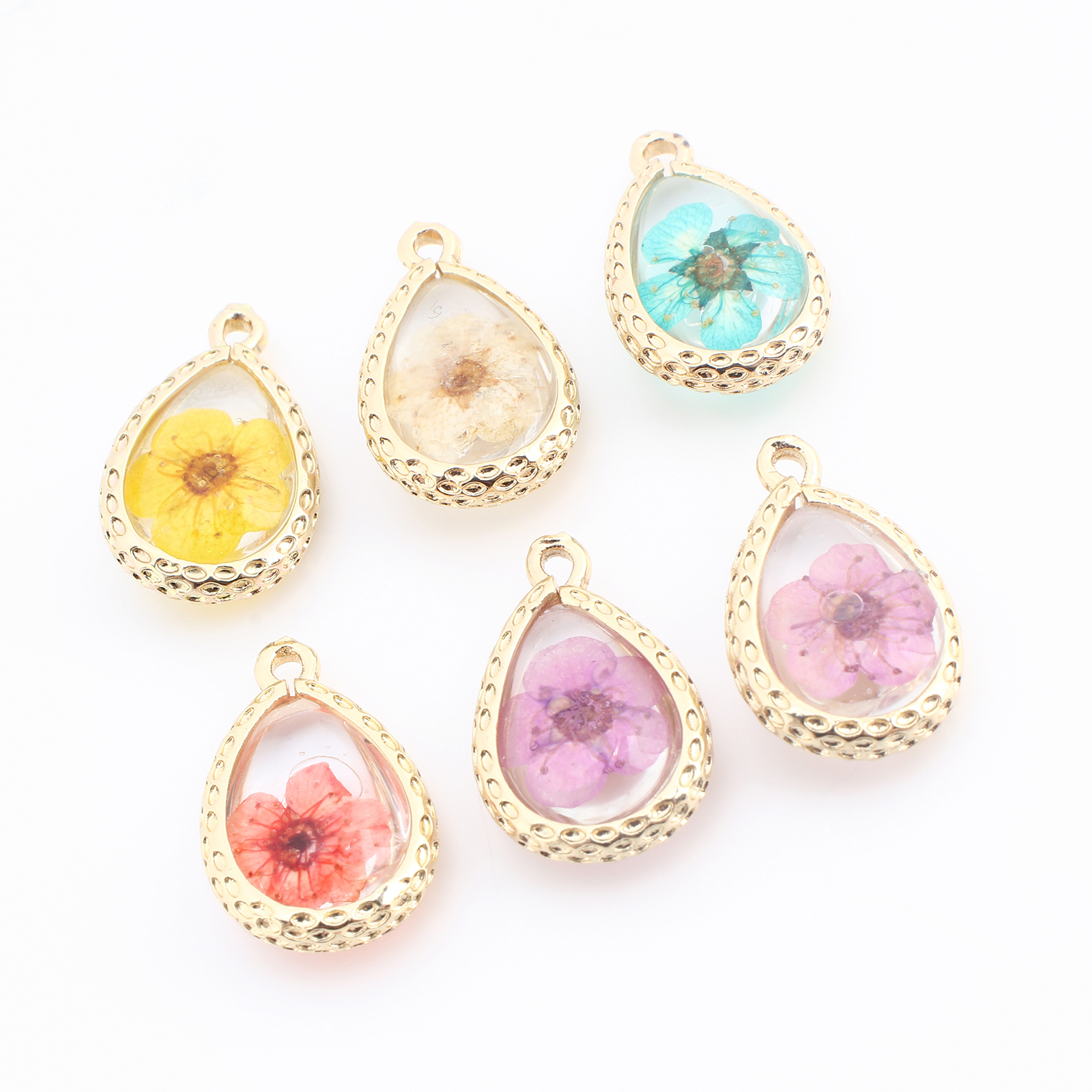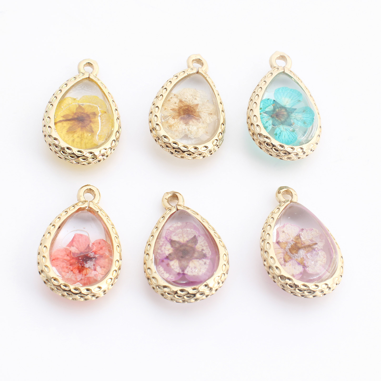 Messing Anhänger, mit Getrocknete Blumen & Harz, Tropfen, goldfarben plattiert, DIY, keine, verkauft von PC