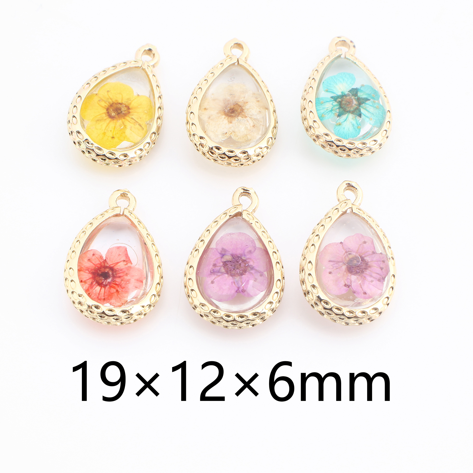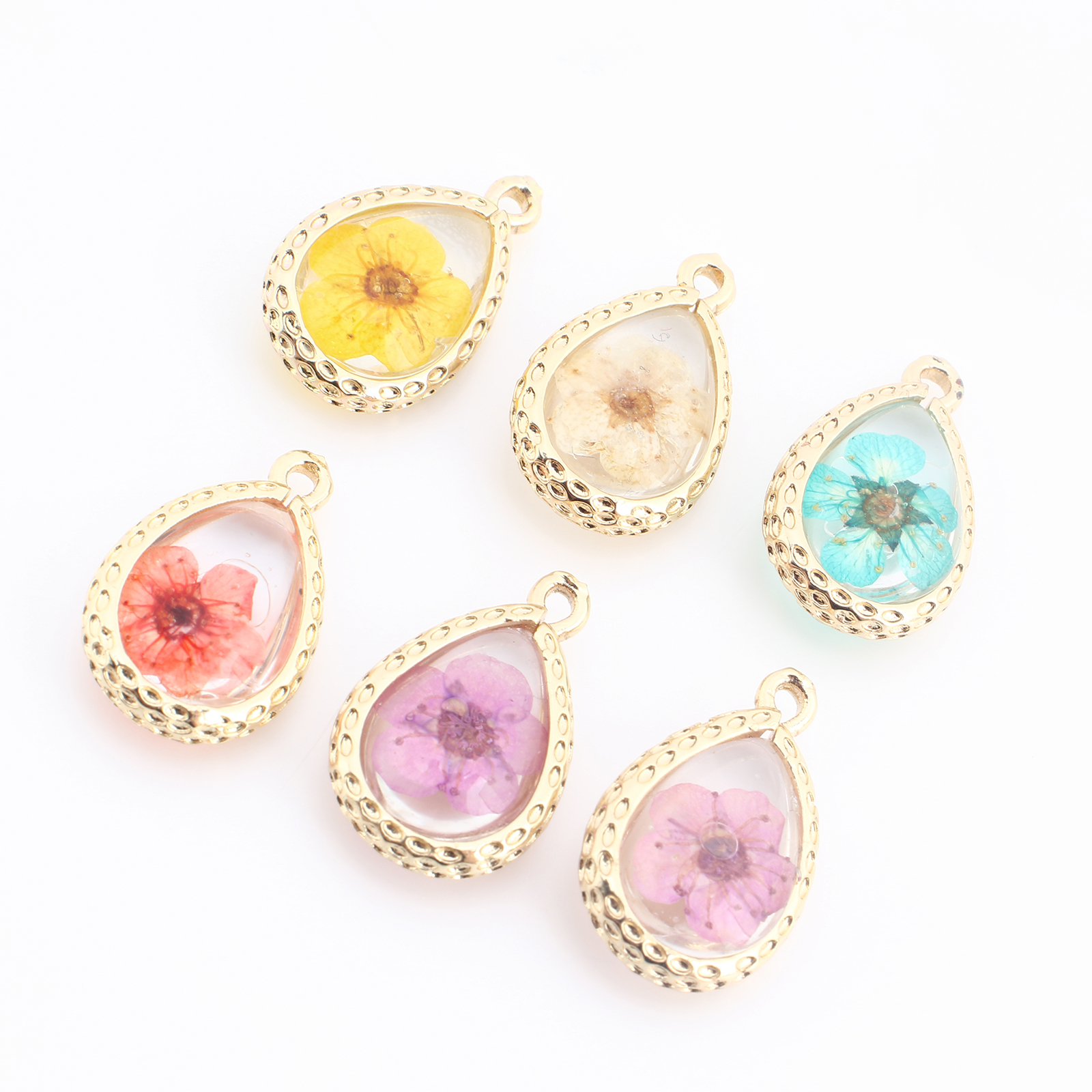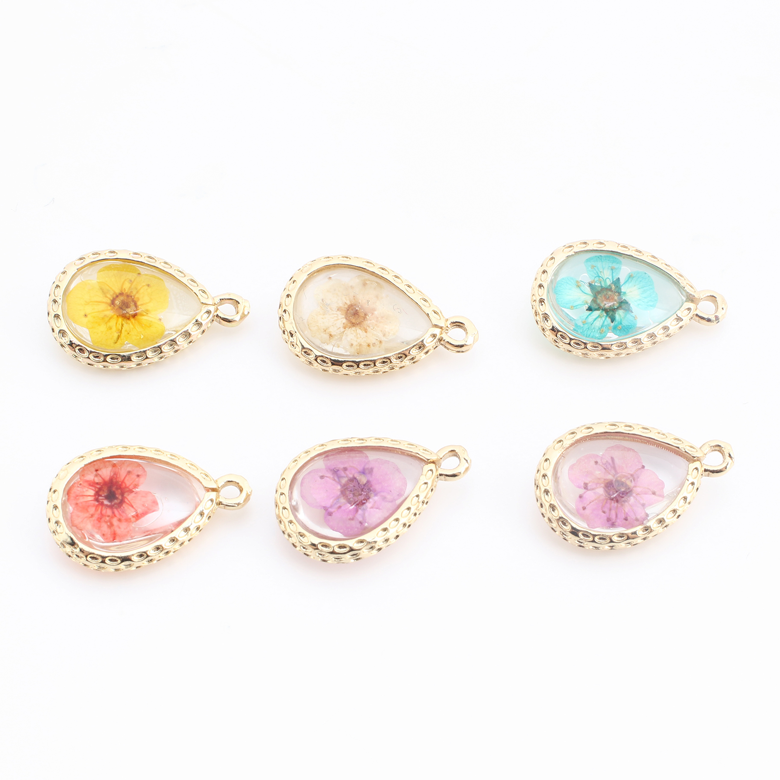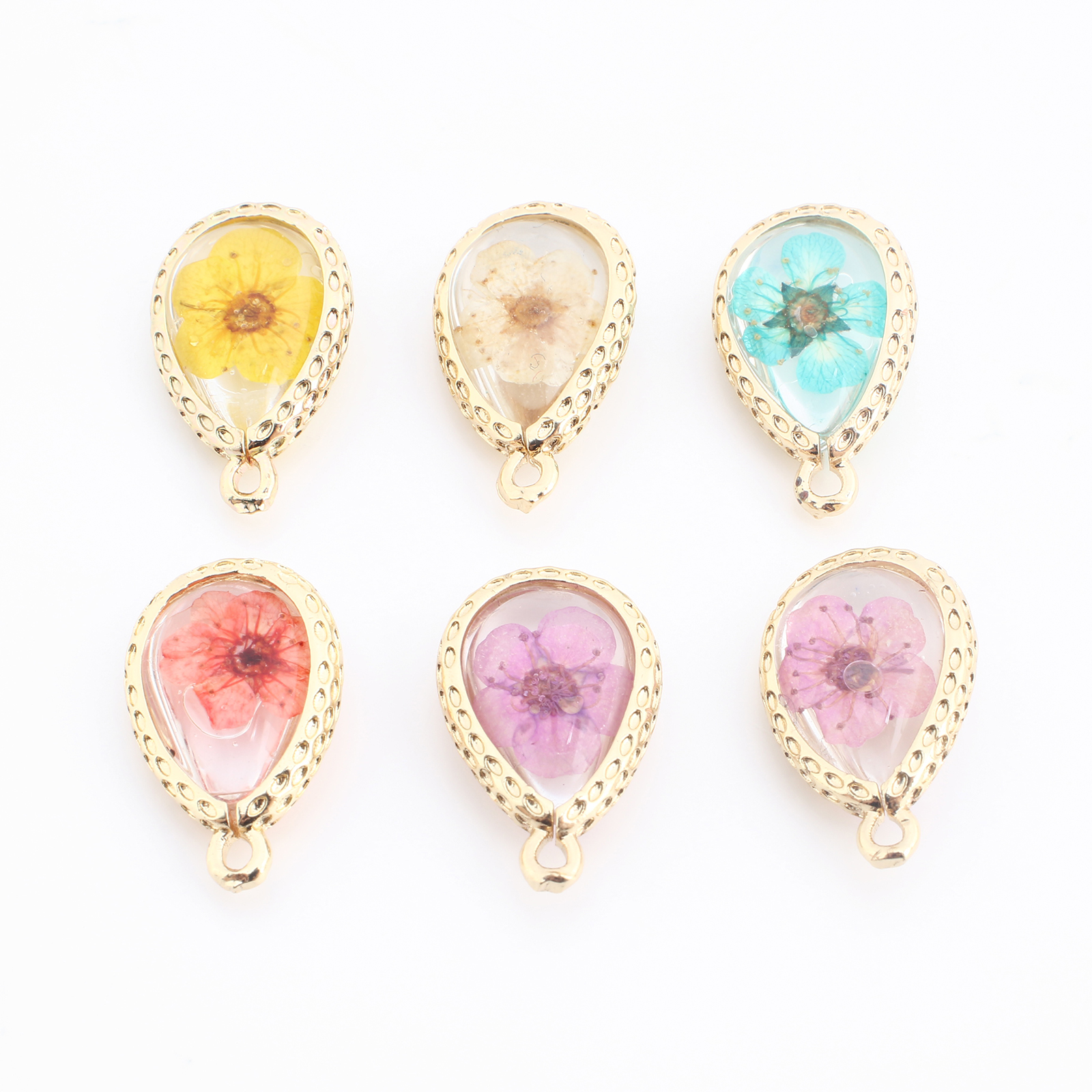 Messing Anhänger, mit Getrocknete Blumen & Harz, Tropfen, goldfarben plattiert, DIY, keine, verkauft von PC