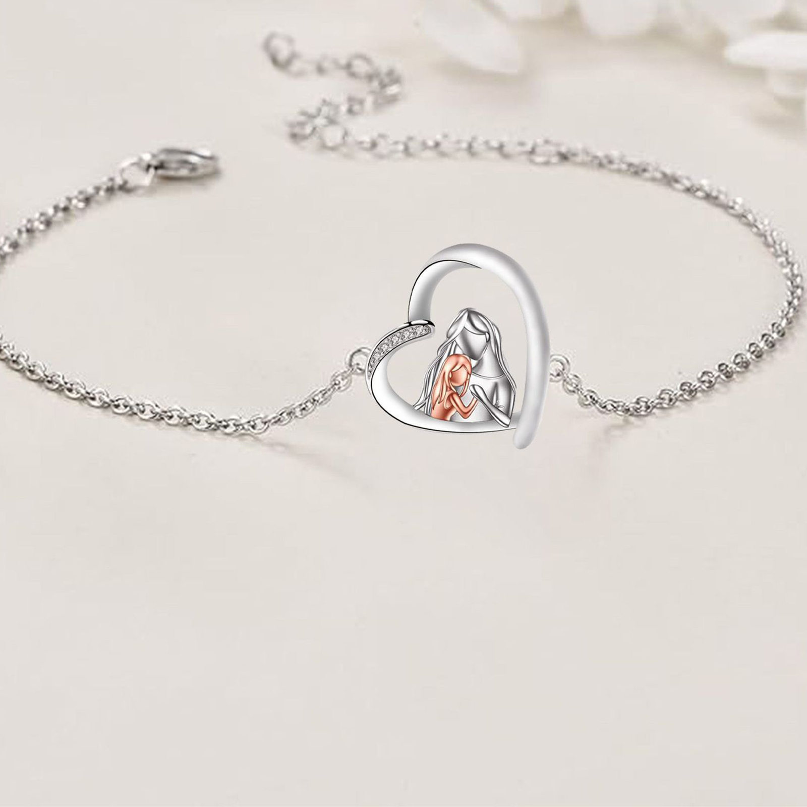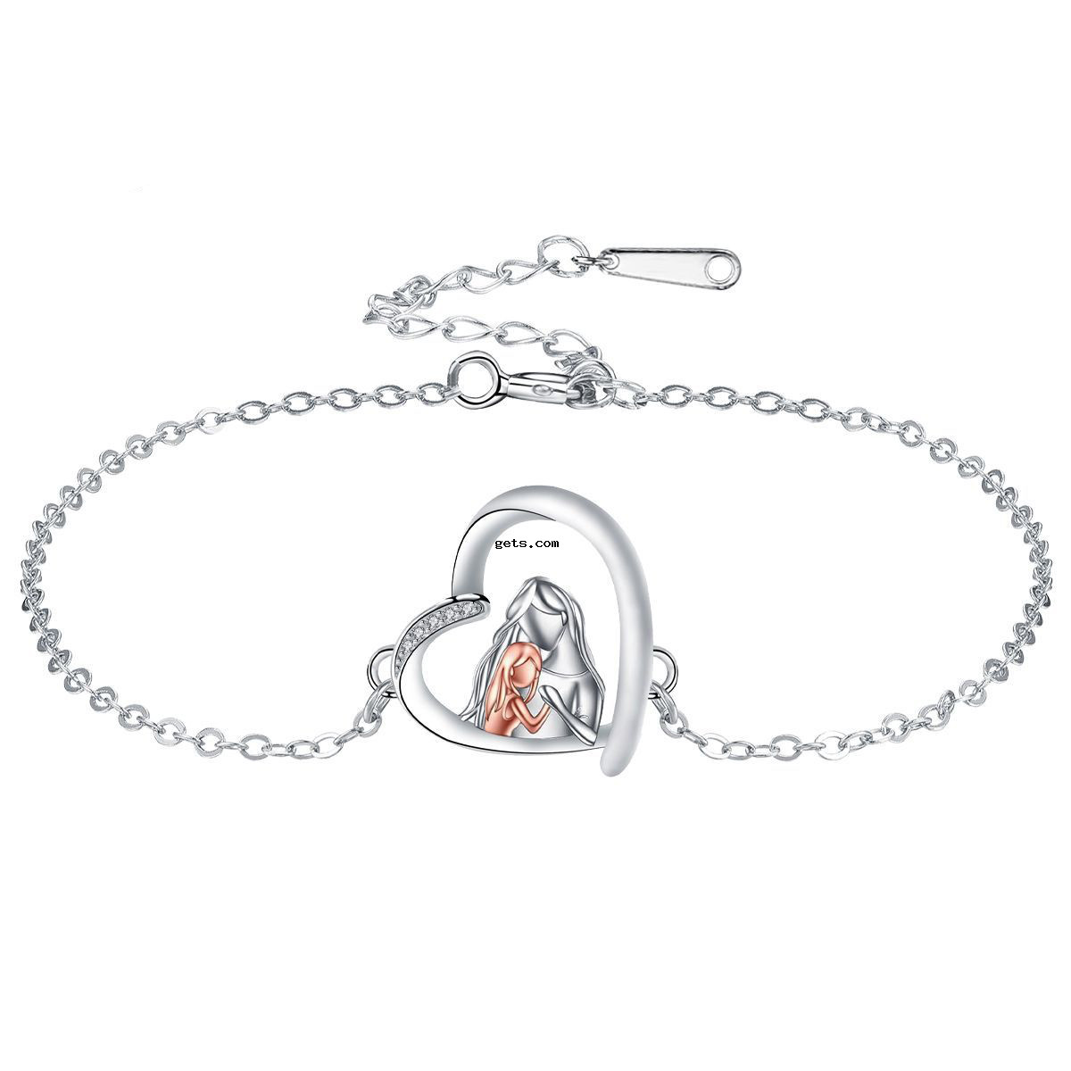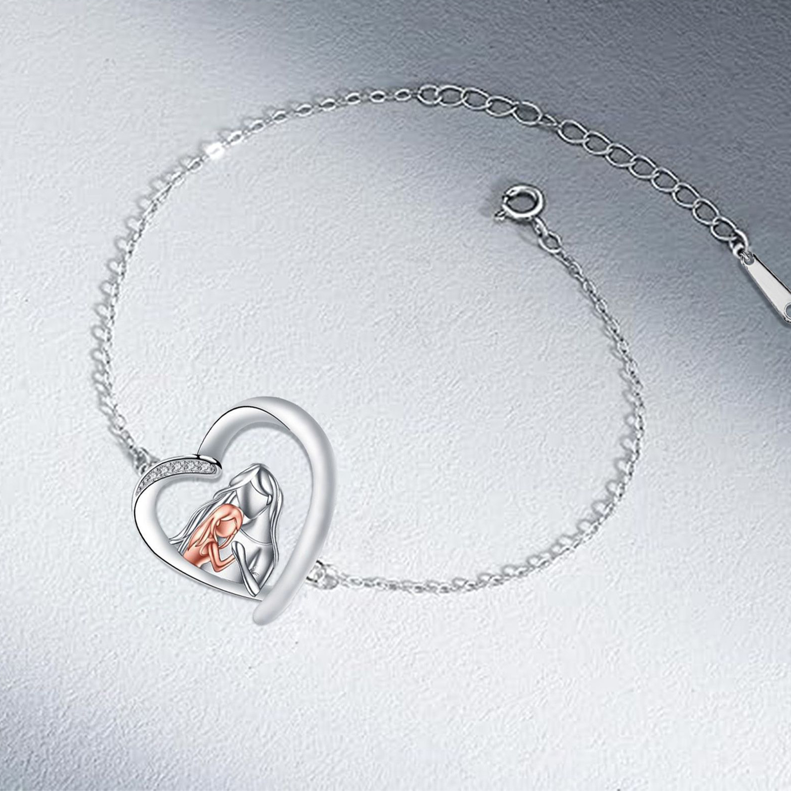 Messing Armband, mit Verlängerungskettchen von 4cm, Herz, plattiert, Mutter Tag Schmuck & Micro pave Zirkonia & für Frau, Länge:ca. 17 cm, verkauft von PC