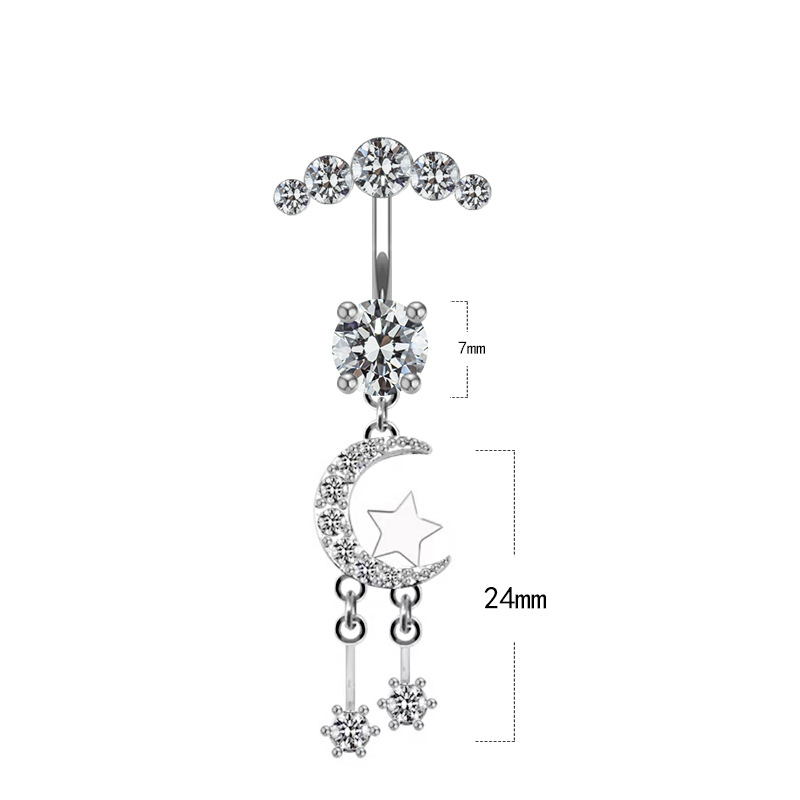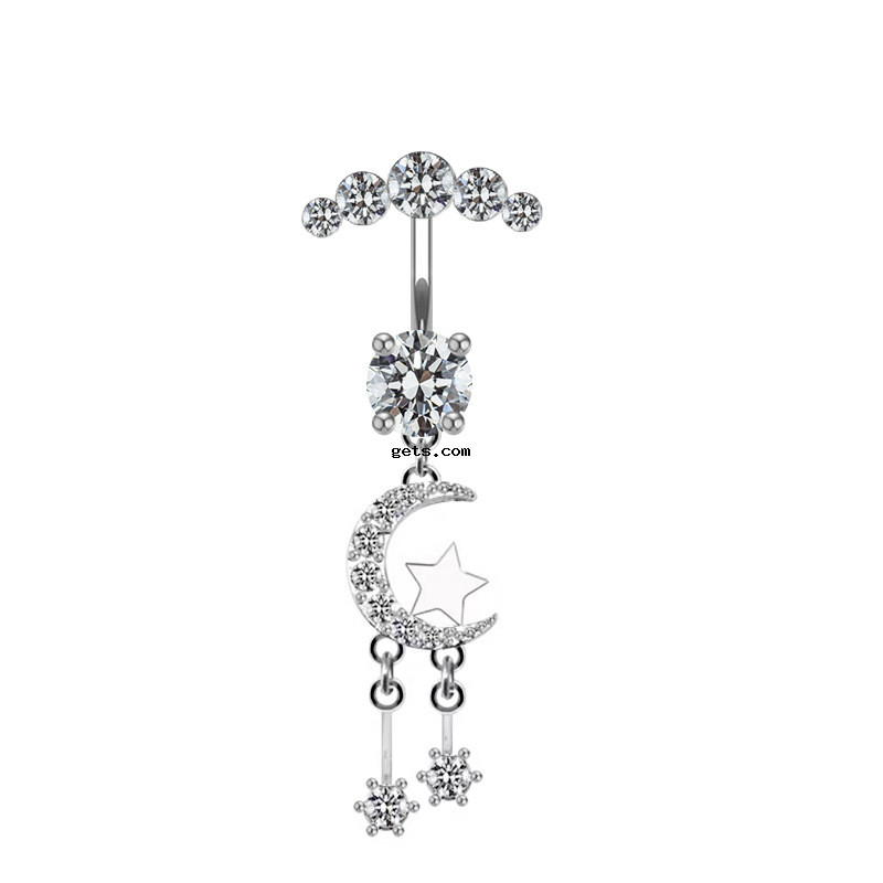 Edelstahl -Bauch-Ring, 304 Edelstahl, mit kubischer Zirkonia & Messing, Galvanische Beschichtung, unisex & facettierte, keine, 50-80mm, verkauft von PC