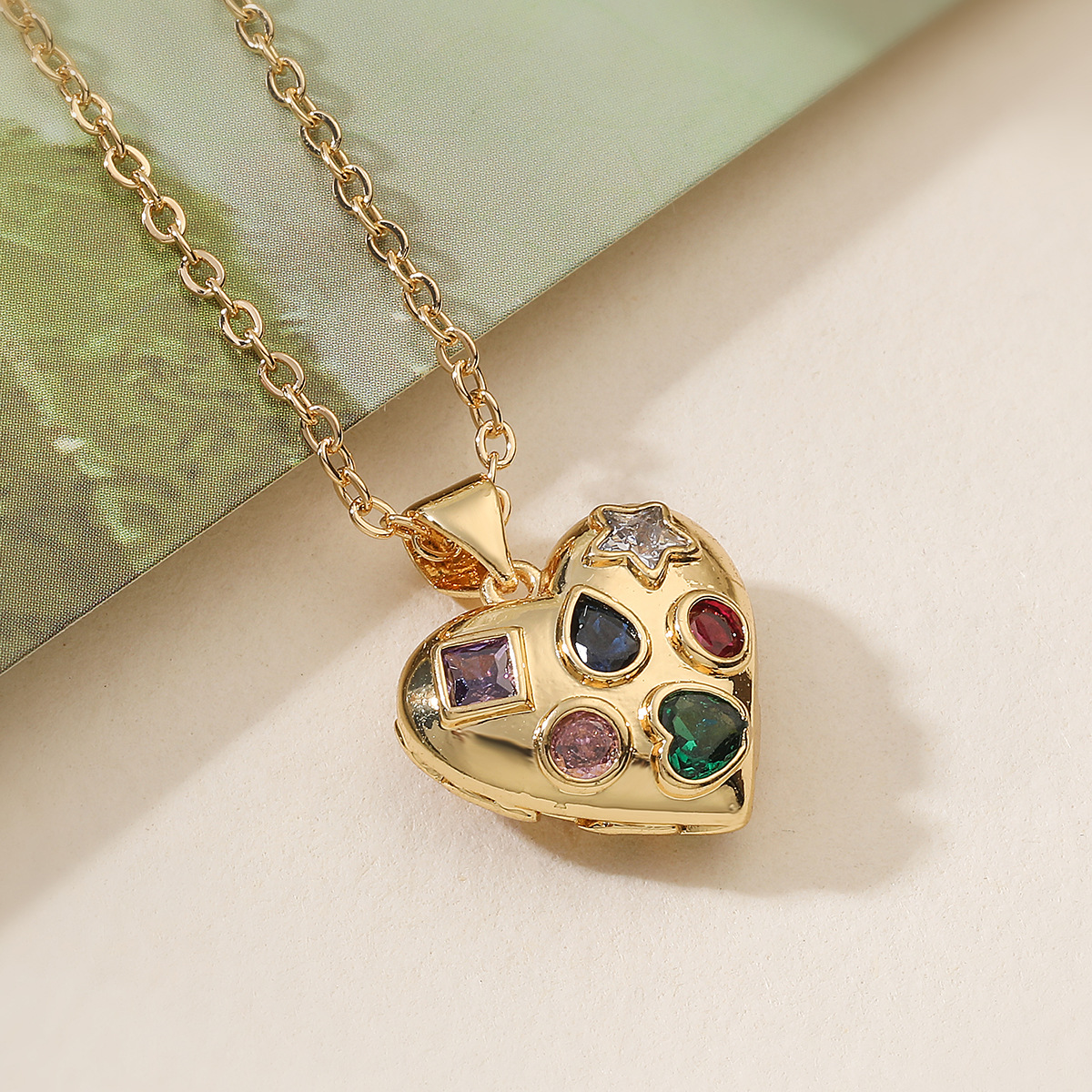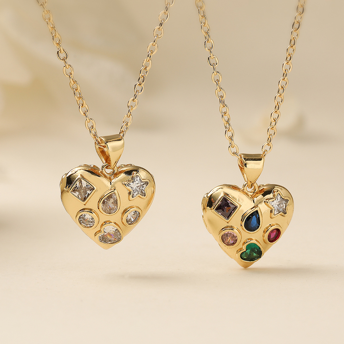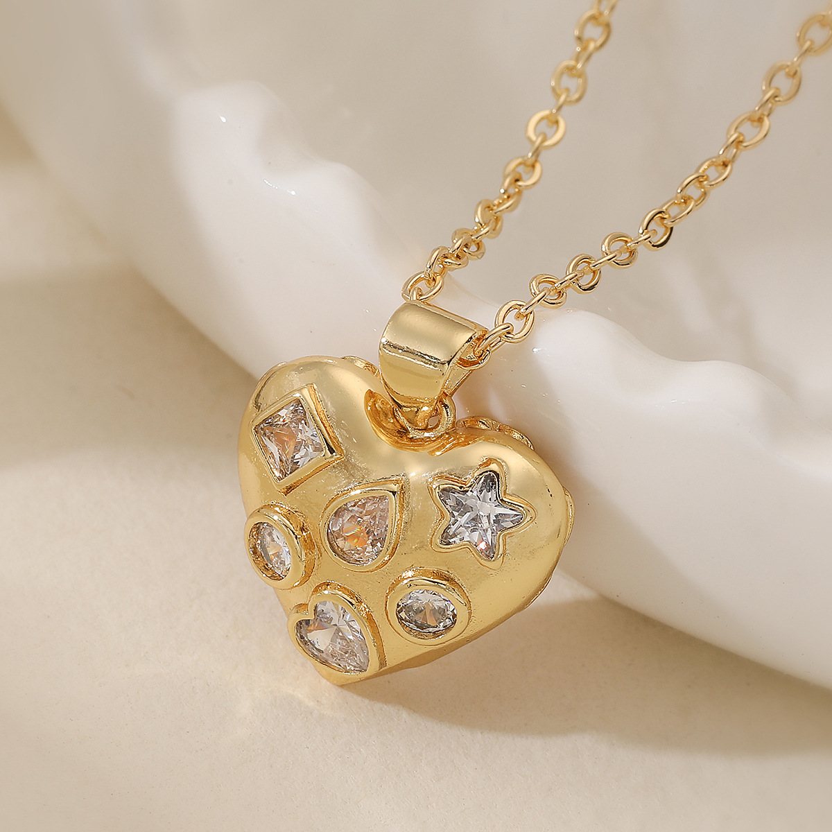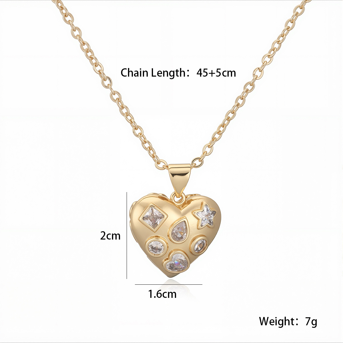 Messing Halskette, mit Verlängerungskettchen von 2inch, Herz, 18K vergoldet, Micro pave Zirkonia & für Frau, keine, Länge:ca. 17.7 ZollInch, verkauft von PC