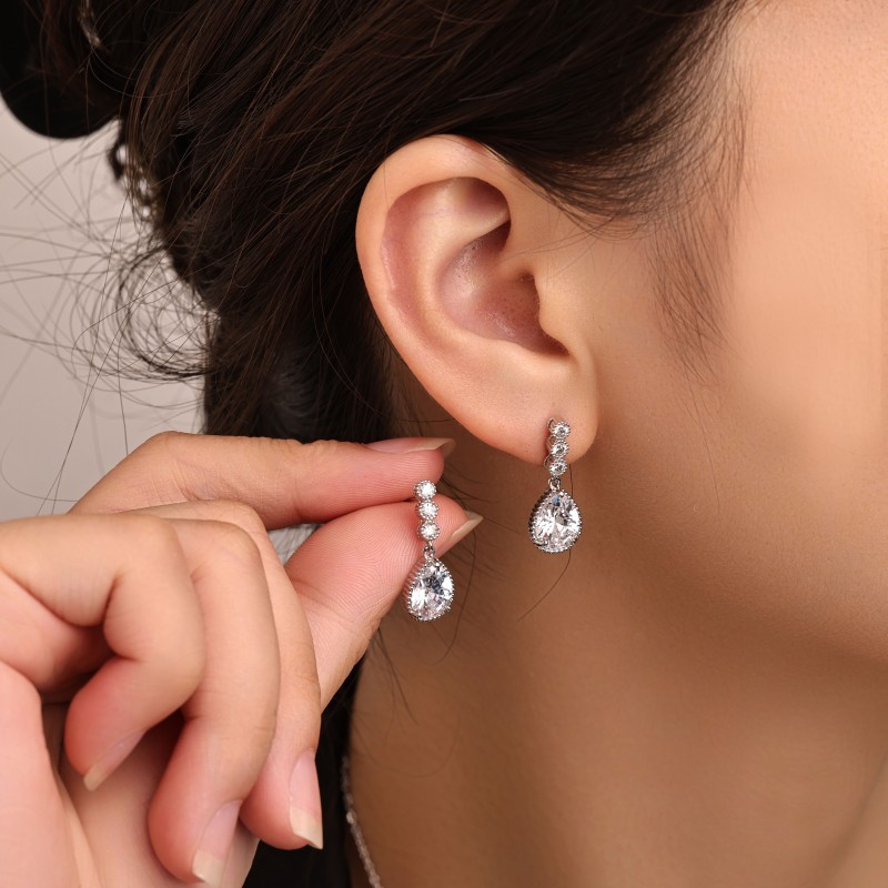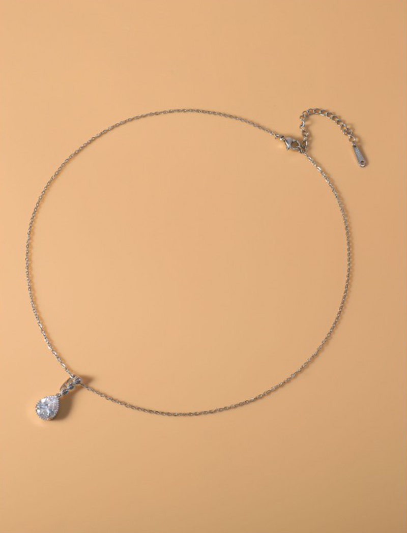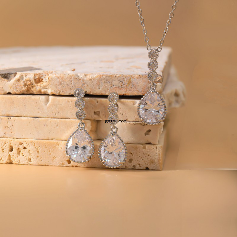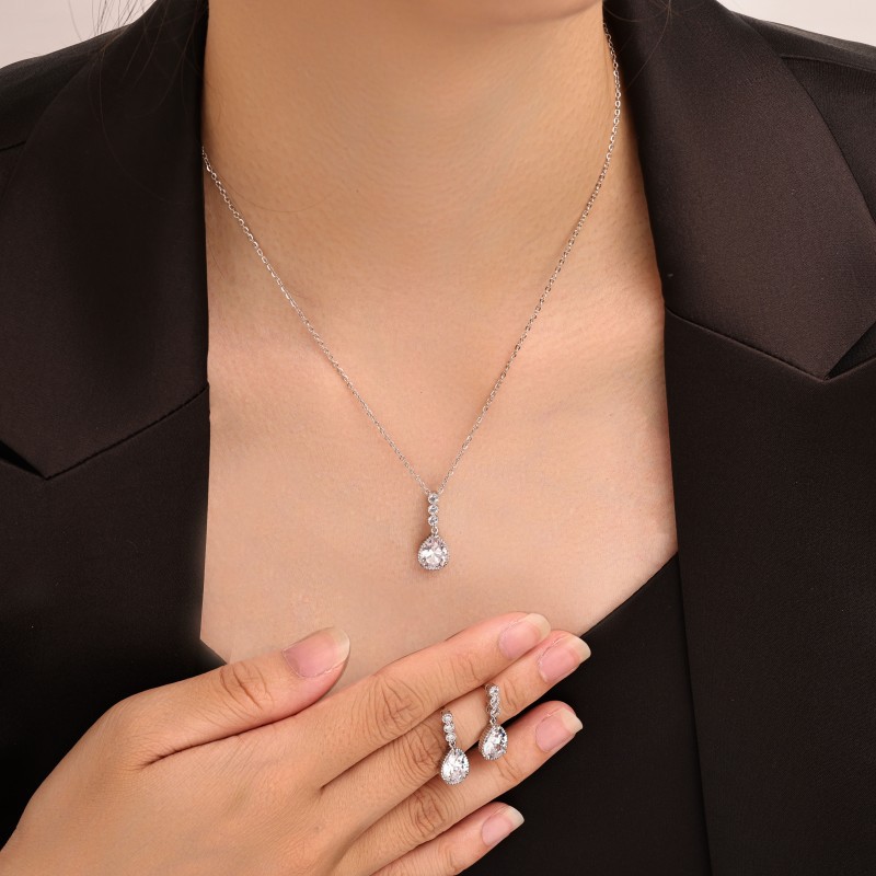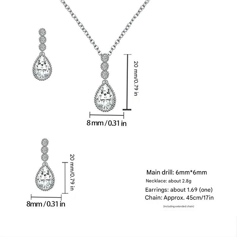 Messing Mode Schmuckset, Ohrring & Halskette, Tropfen, plattiert, 2 Stück & Micro pave Zirkonia & für Frau, Silberfarbe, verkauft von setzen