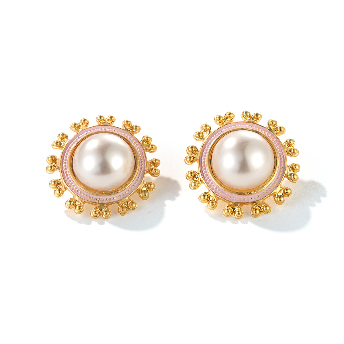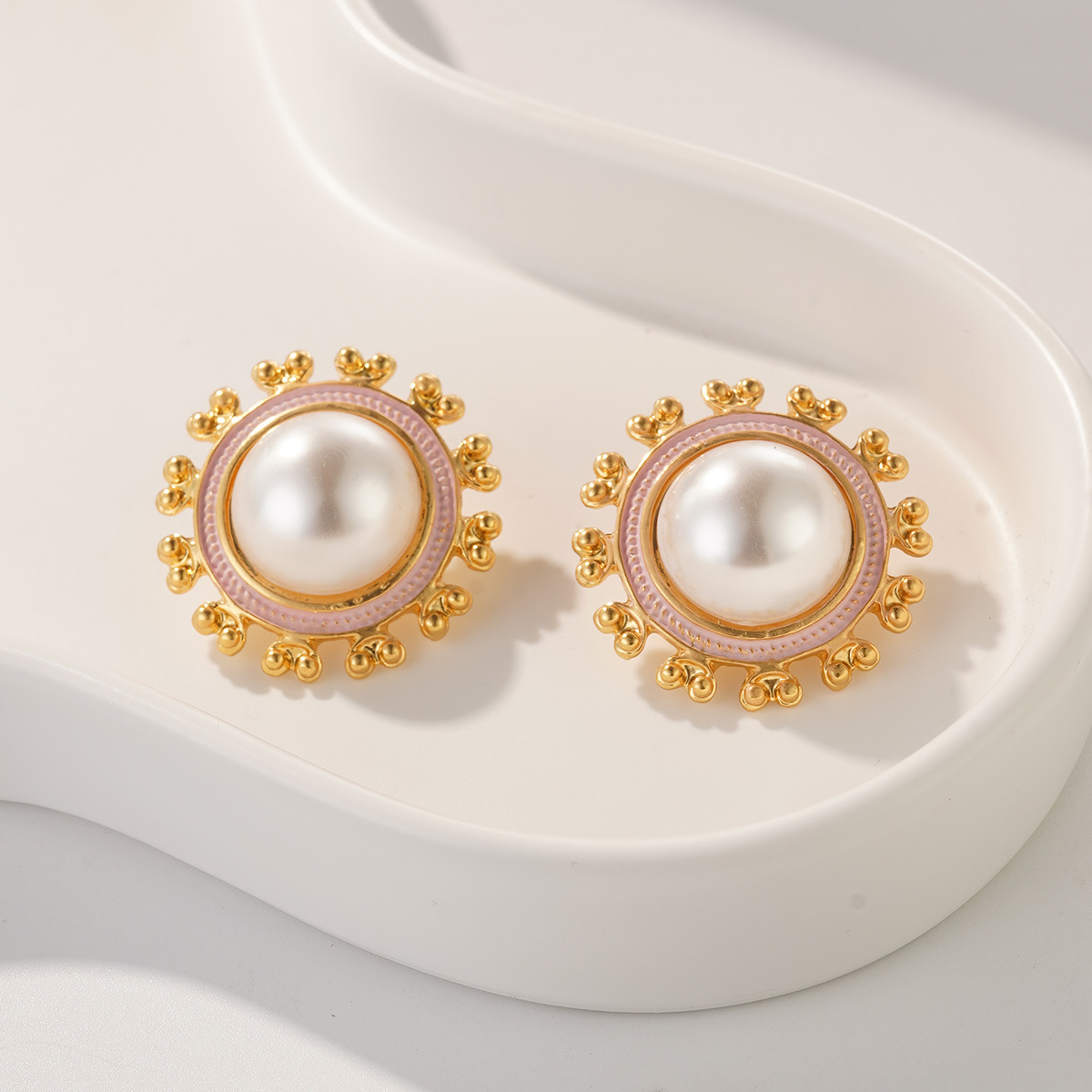 Messing Ohrstecker, mit ABS-Kunststoff-Perlen, plattiert, Modeschmuck & Emaille, keine, frei von Nickel, Blei & Kadmium, verkauft von Paar