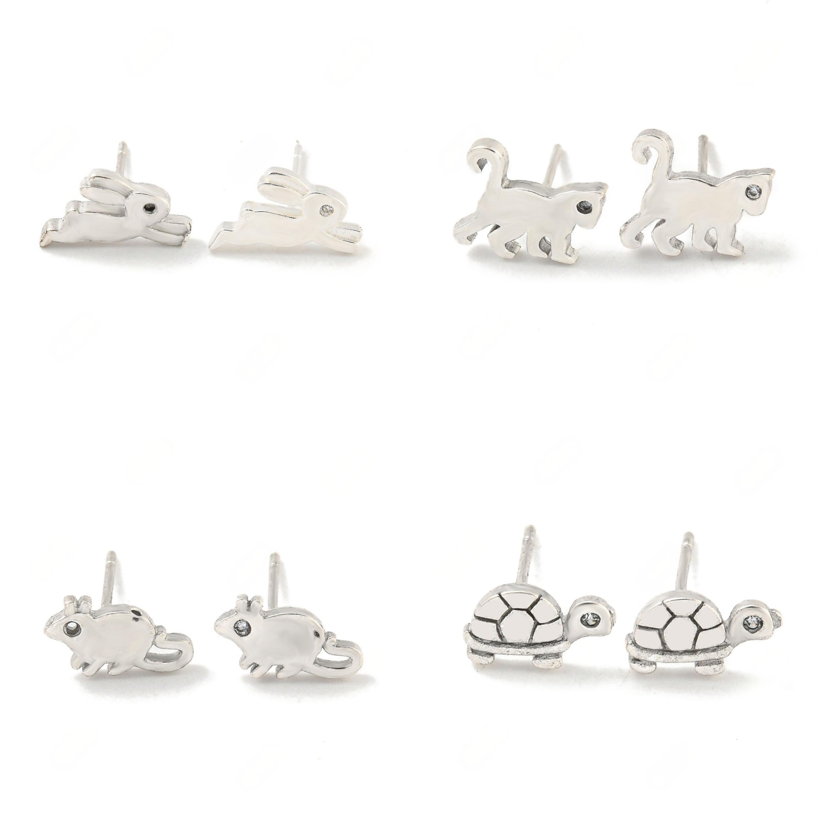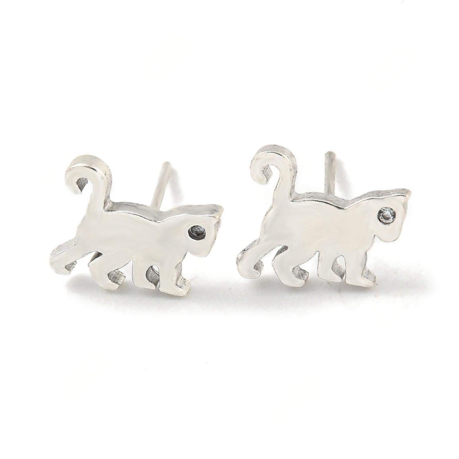 - Messing Ohrstecker, Hund, silberfarben plattiert