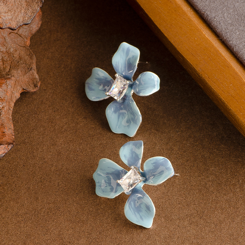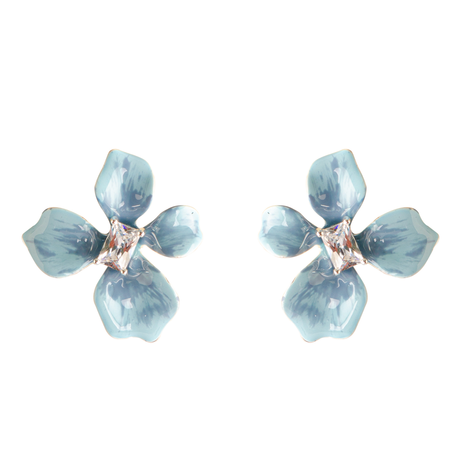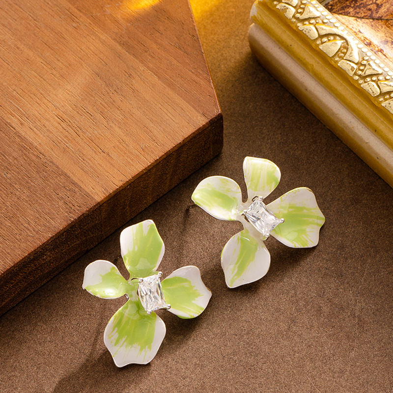 Messing Ohrstecker, Stecker, Blume, goldfarben plattiert, für Frau & Emaille & mit Strass, keine, 22x23mm, verkauft von Paar