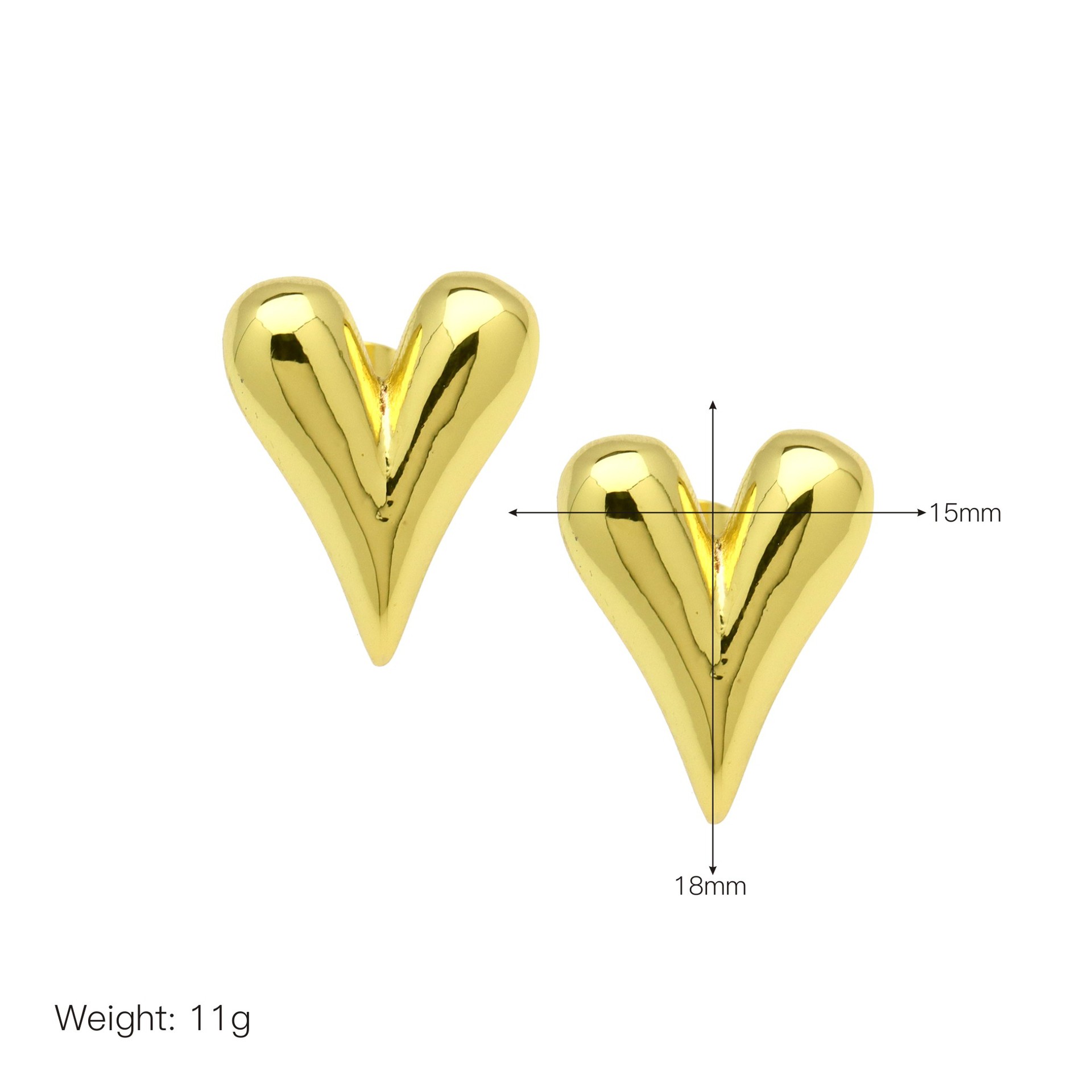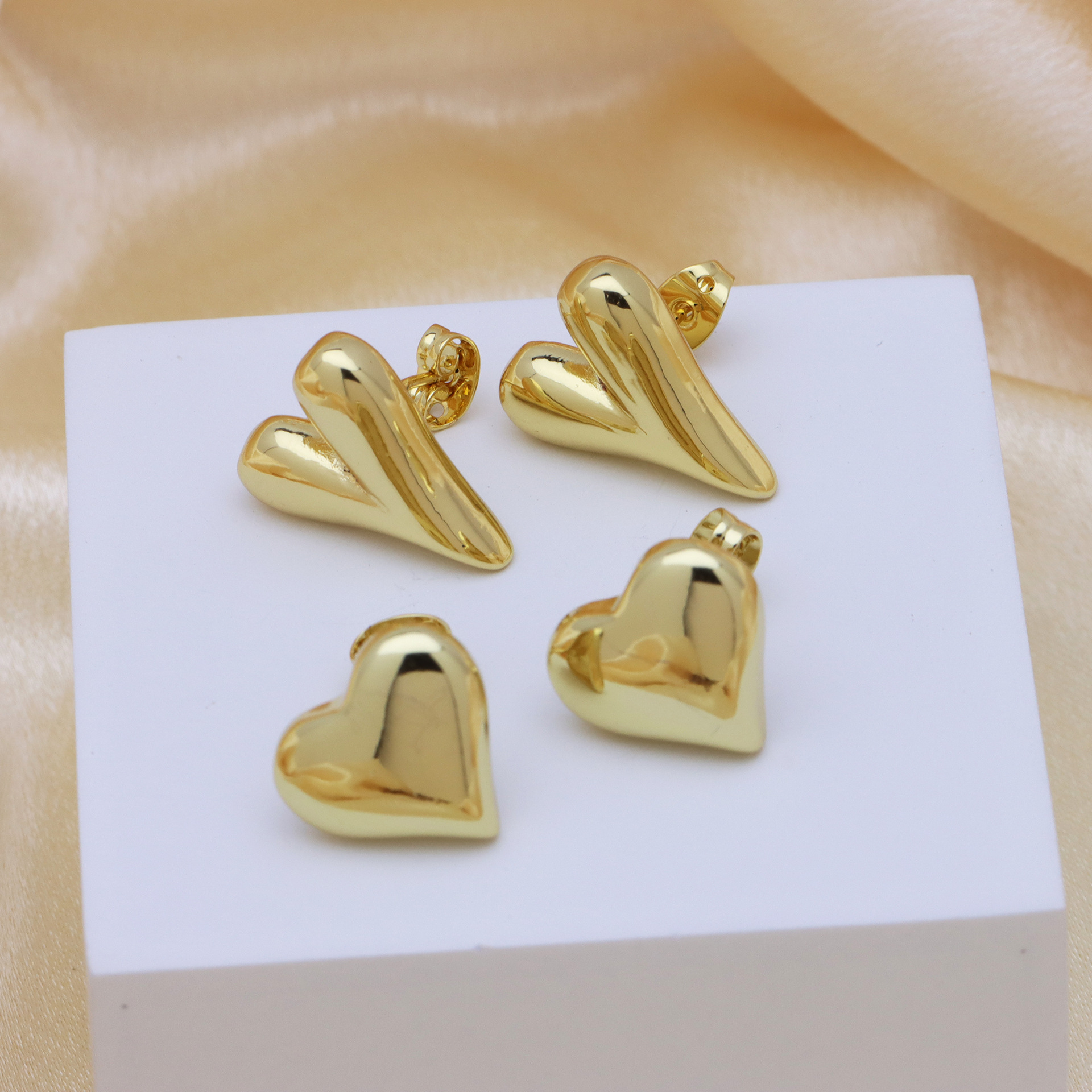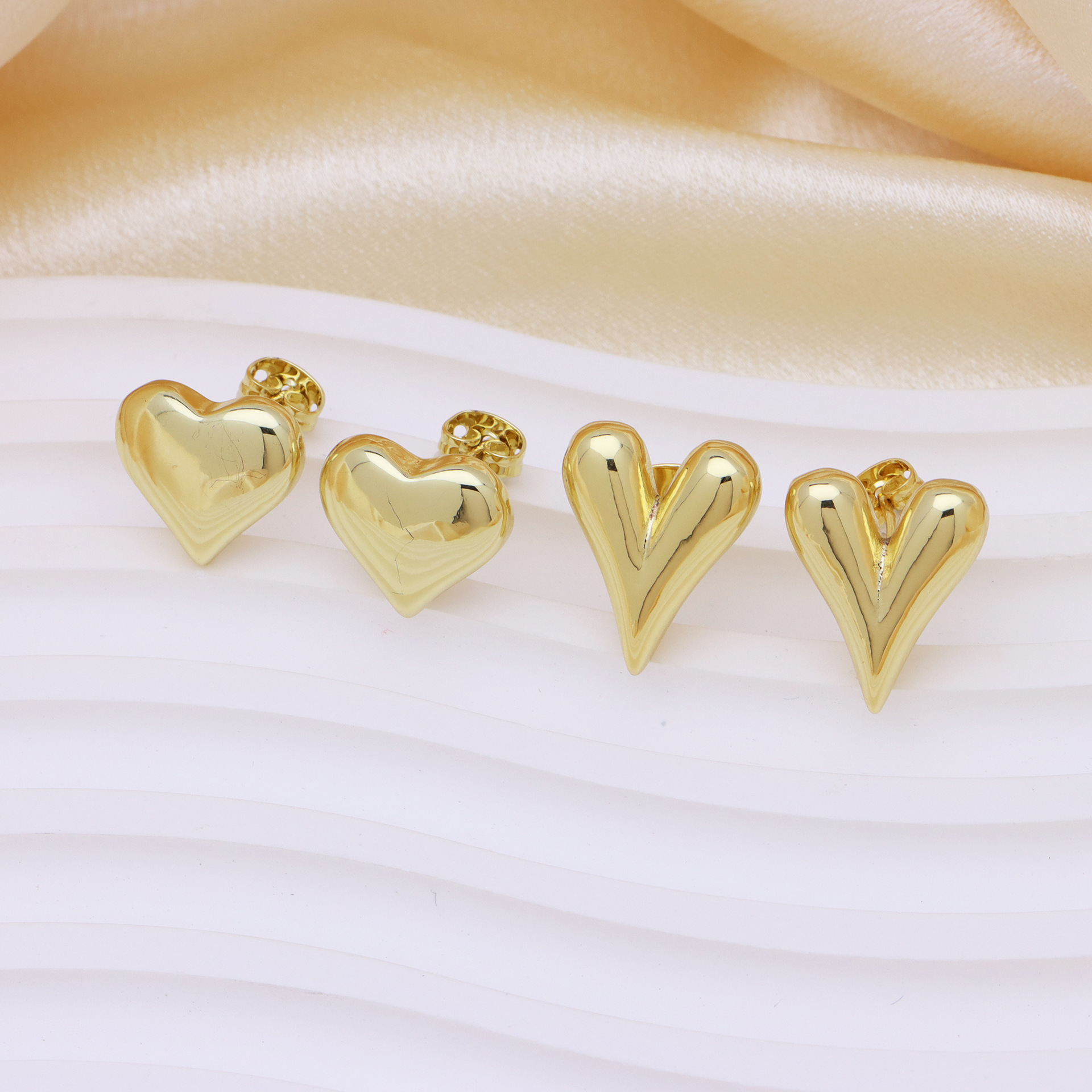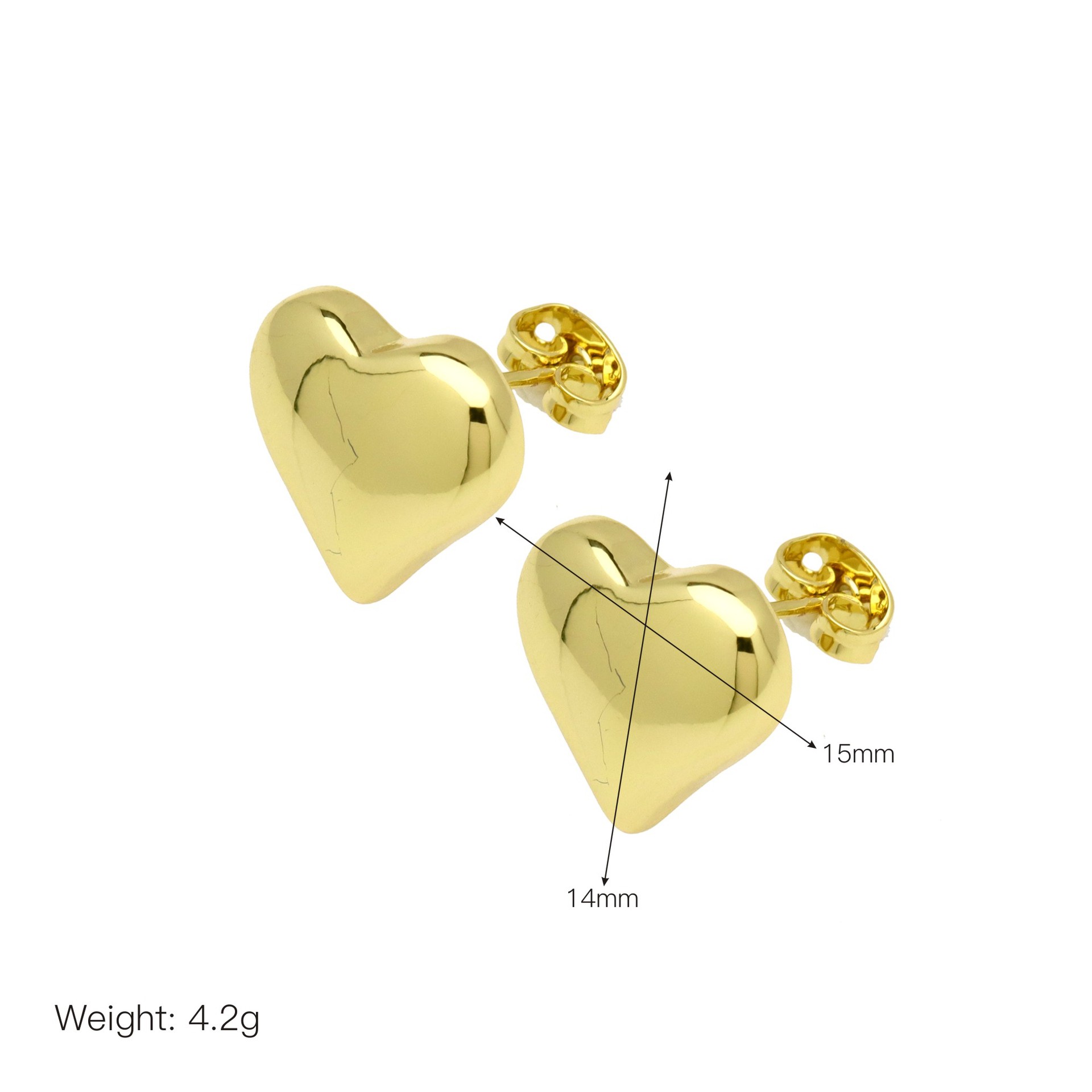 Messing Ohrstecker, Herz, 18K vergoldet