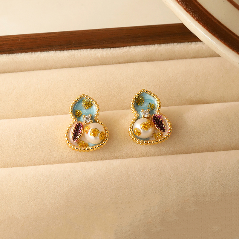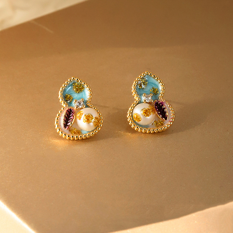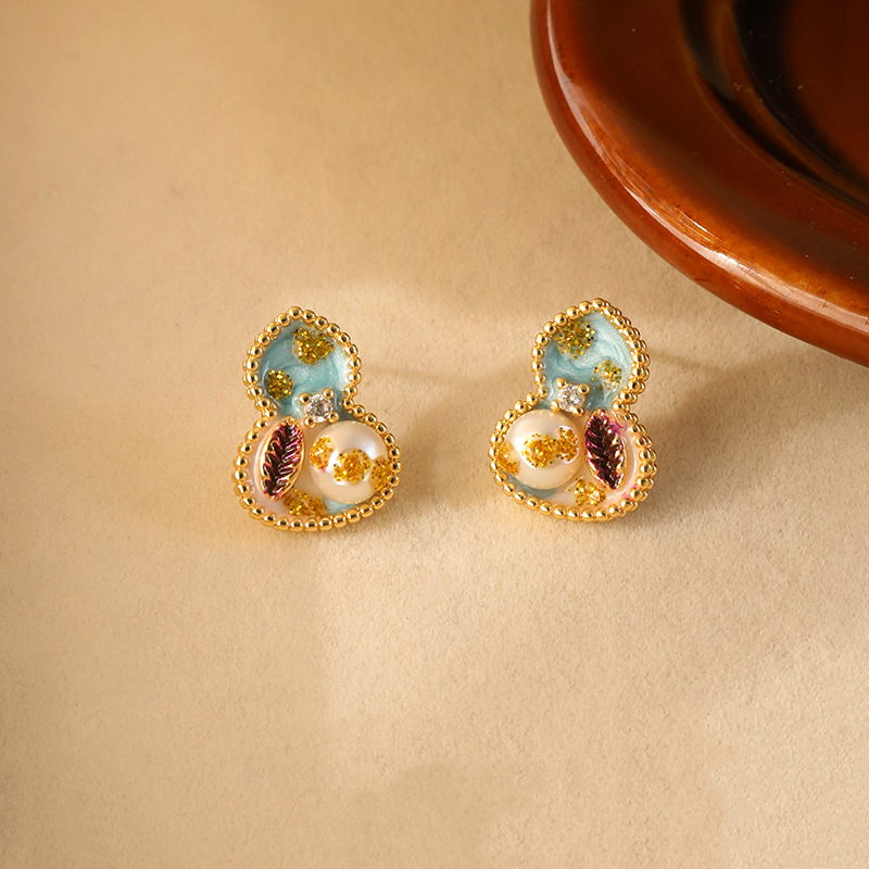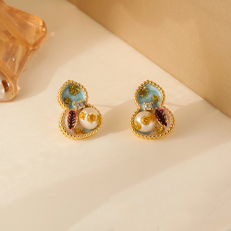 Messing Ohrstecker, mit Kunststoff Perlen, Kalebasse, goldfarben plattiert, für Frau & Emaille, farbenfroh, 13x16mm, verkauft von Paar