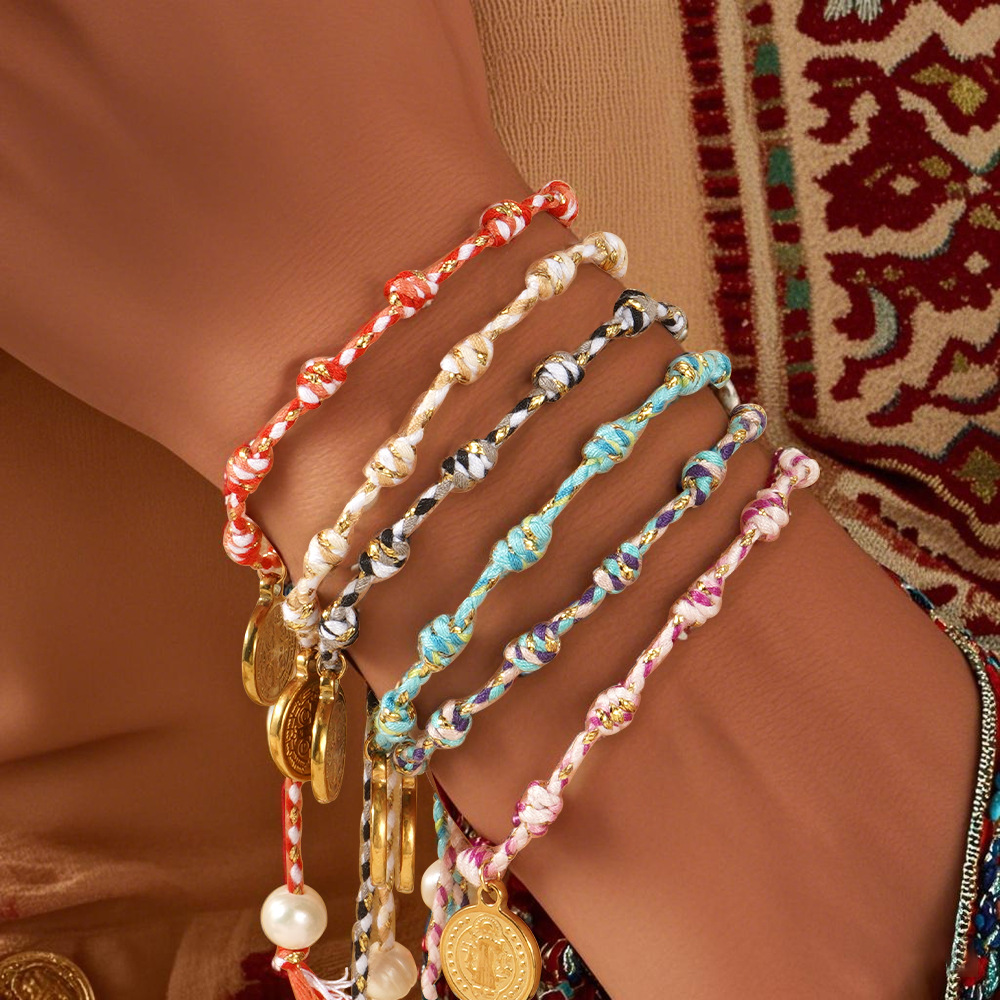 Mode Armband, Baumwollfaden, mit Kunststoff Perlen & Zinklegierung, goldfarben plattiert, Modeschmuck, keine, verkauft von PC