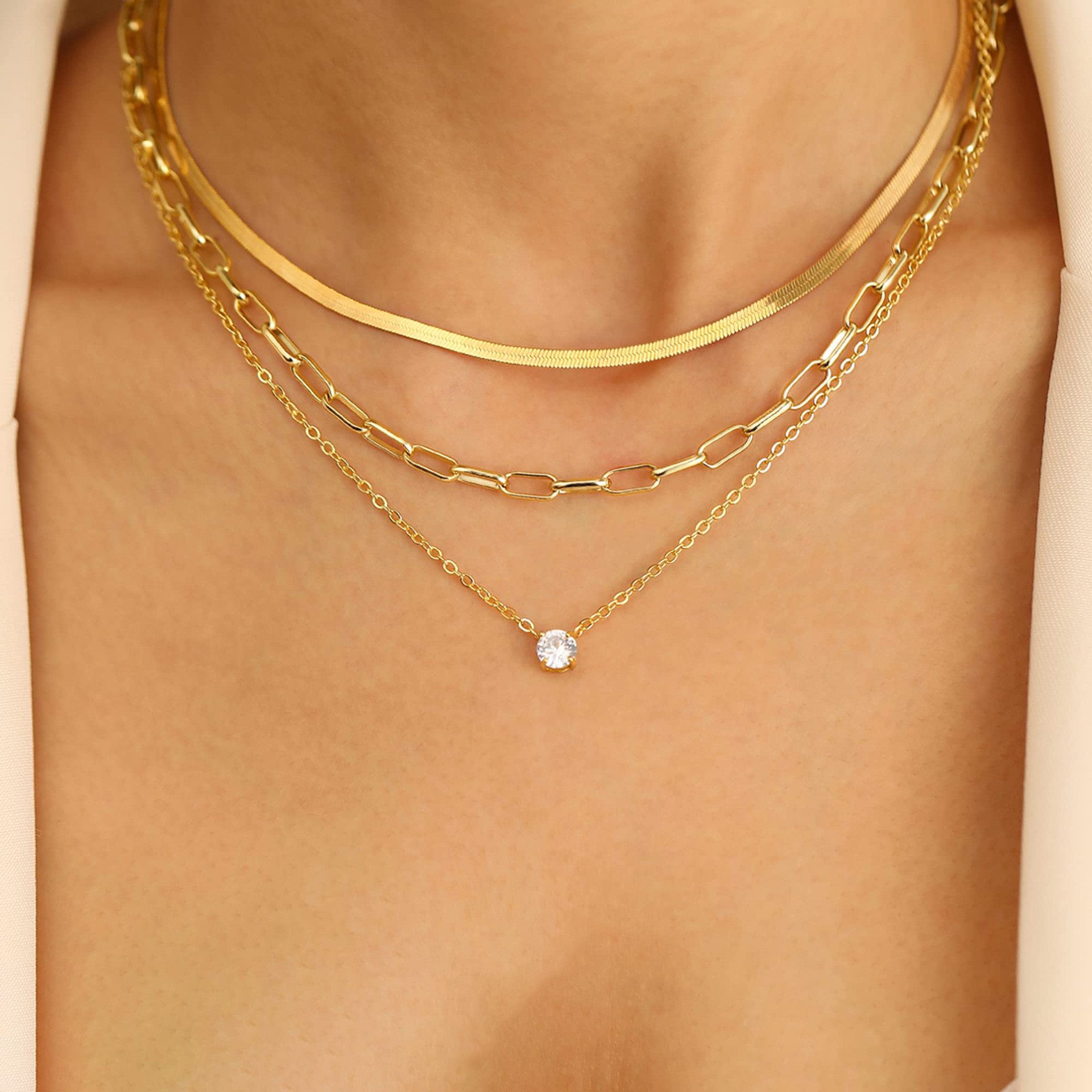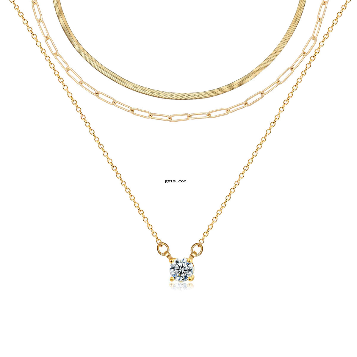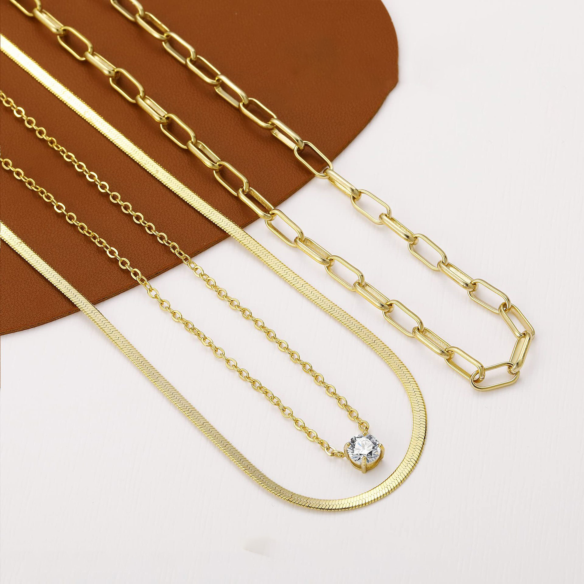 Mode-Multi-Layer-Halskette, 304 Edelstahl, mit kubischer Zirkonia, 18K vergoldet, drei Stücke & Modeschmuck & für Frau, verkauft von setzen