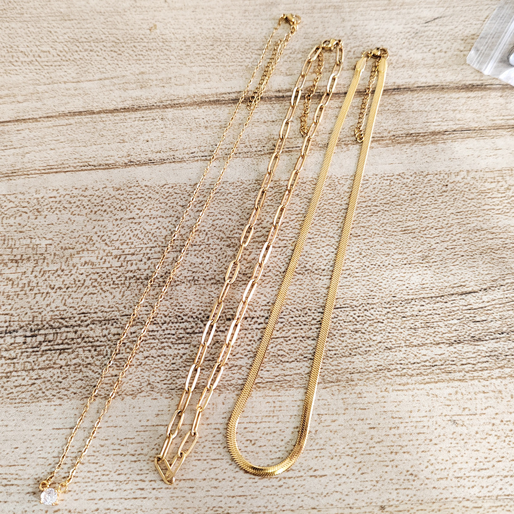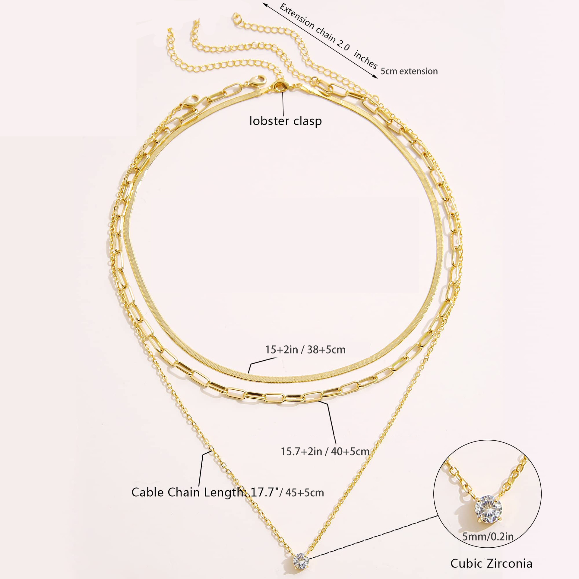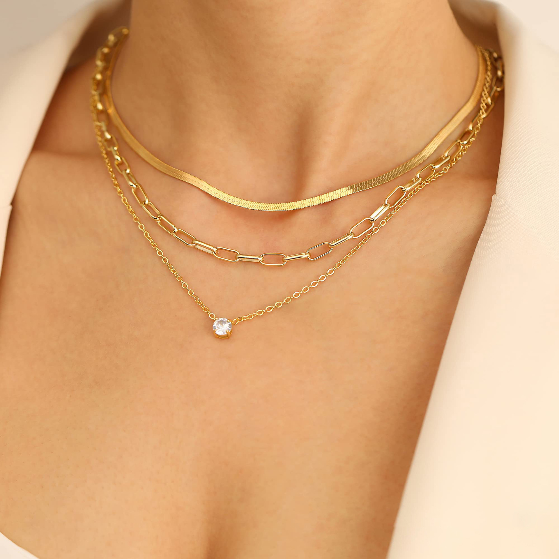 Mode-Multi-Layer-Halskette, 304 Edelstahl, mit kubischer Zirkonia, 18K vergoldet, drei Stücke & Modeschmuck & für Frau, verkauft von setzen