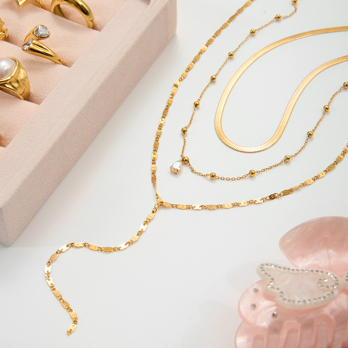 - Mode-Multi-Layer-Halskette, Titanstahl, plattiert