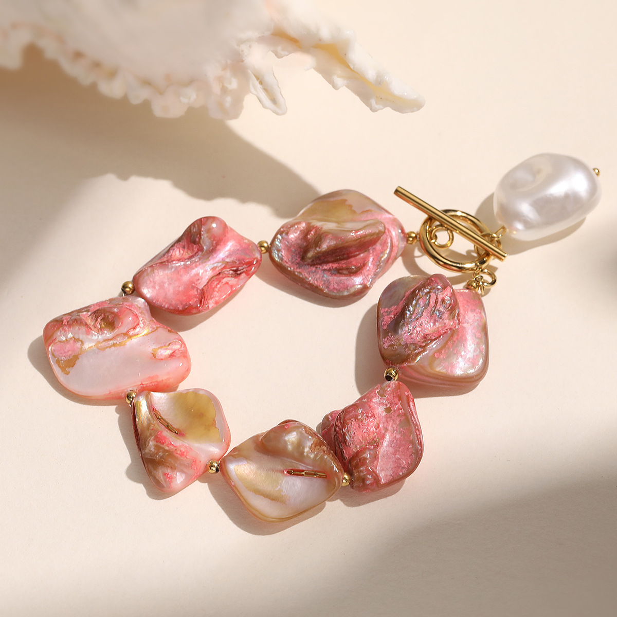 Muschel Schmuck Armband, 304 Edelstahl, mit Muschel & Kunststoff Perlen, plattiert, Modeschmuck & für Frau, Rosa, verkauft von PC
