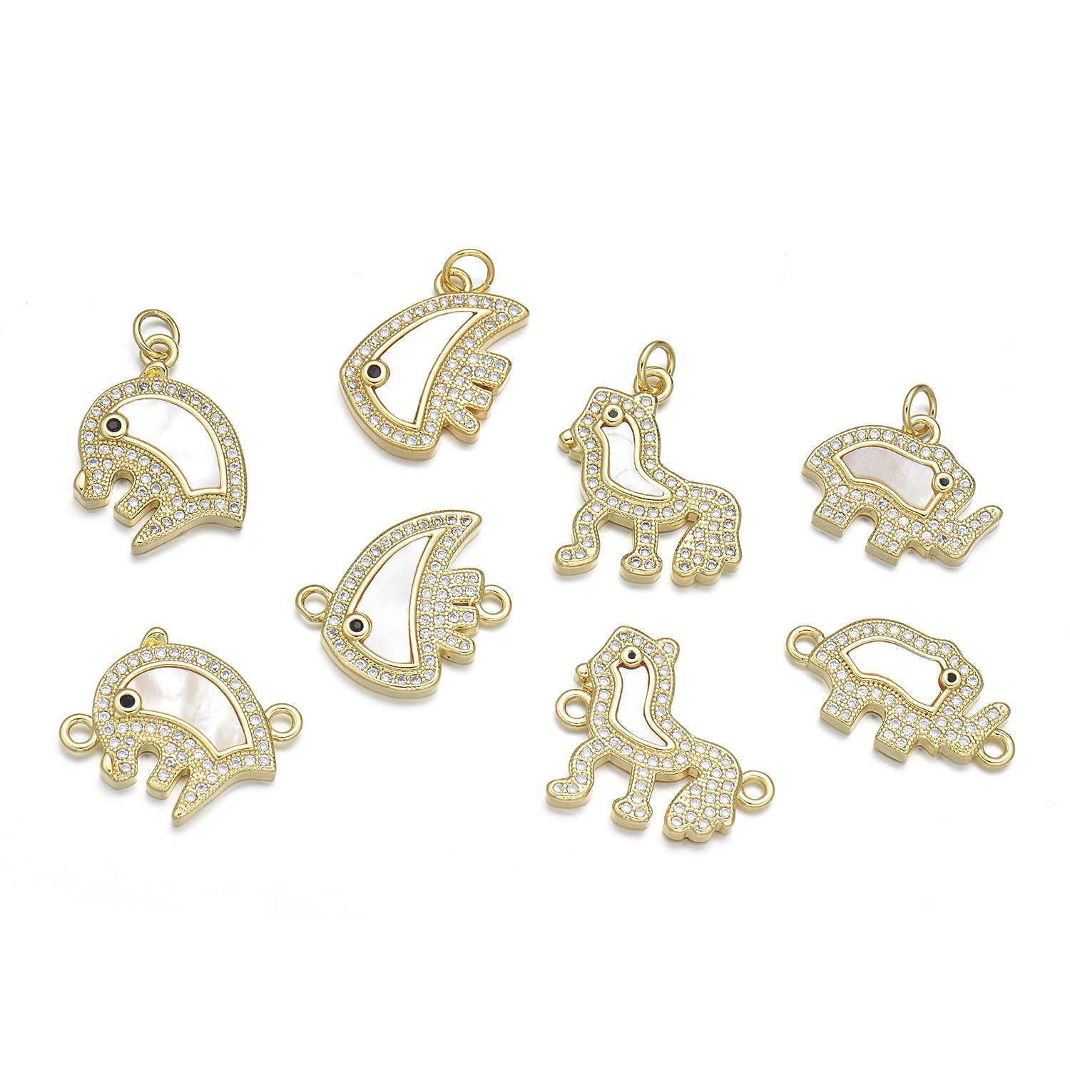 - Messing Schmuckverbinder, mit Weiße Muschel, 14 K vergoldet