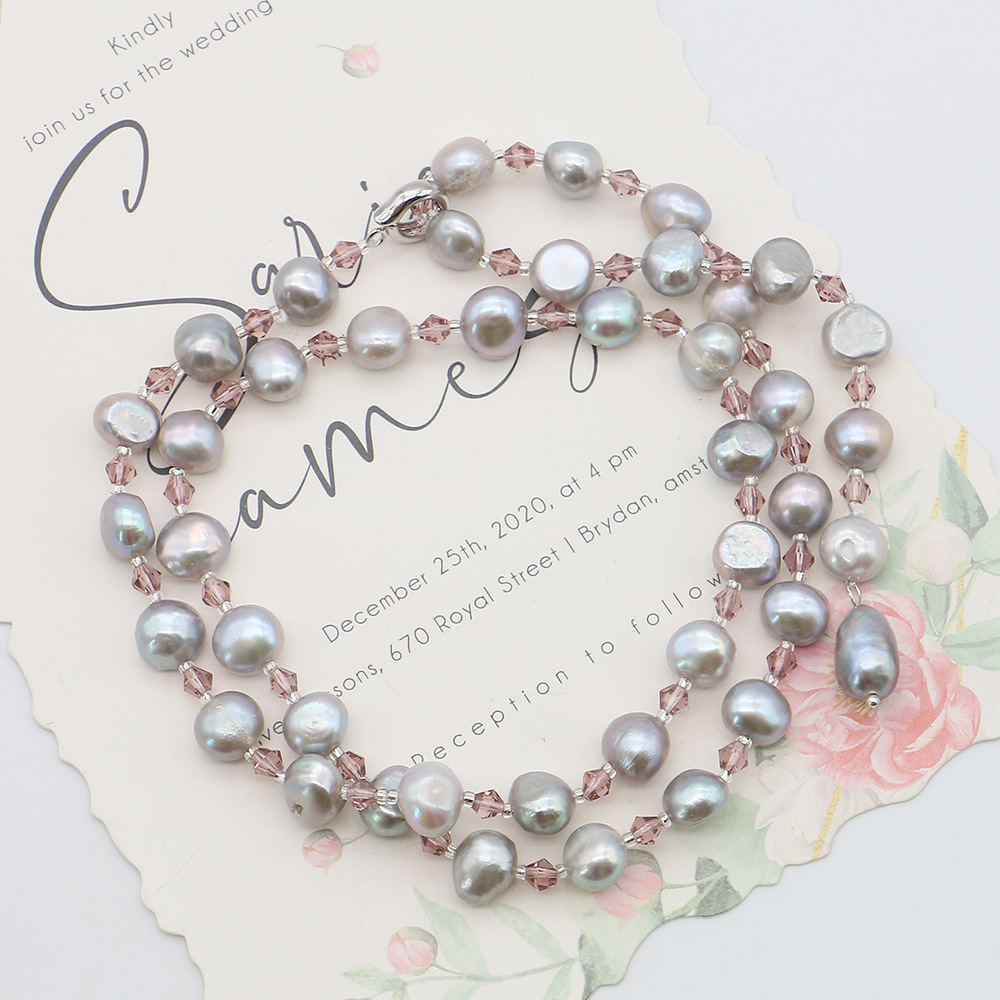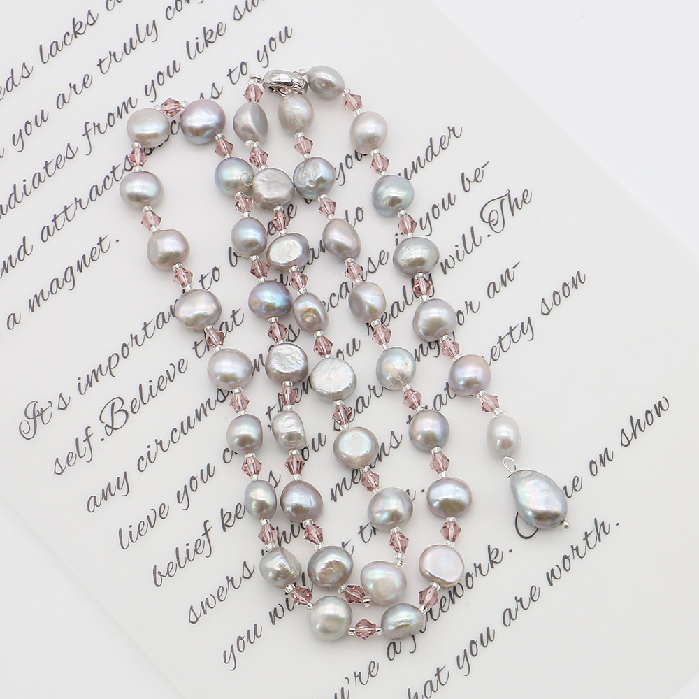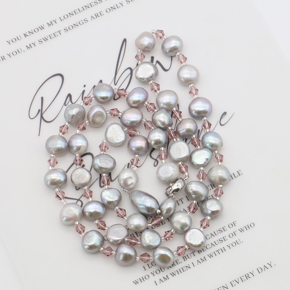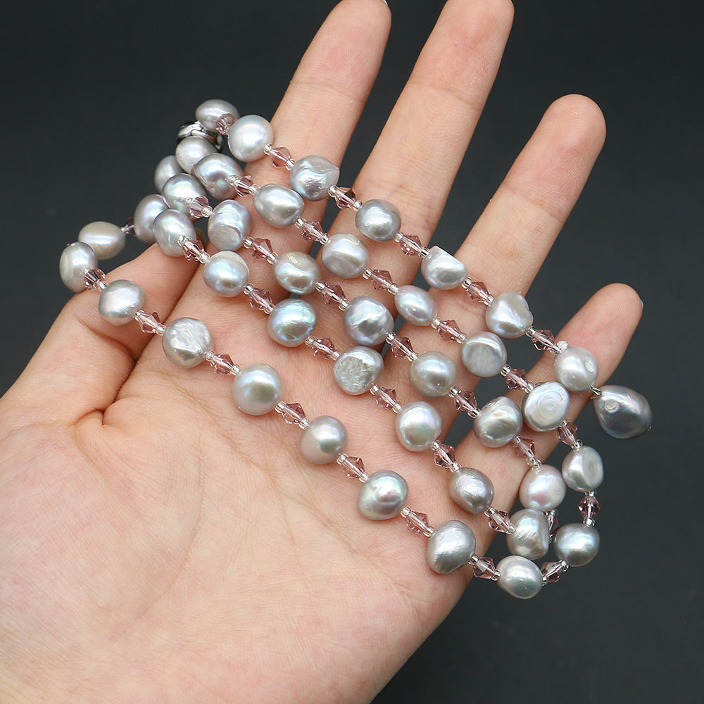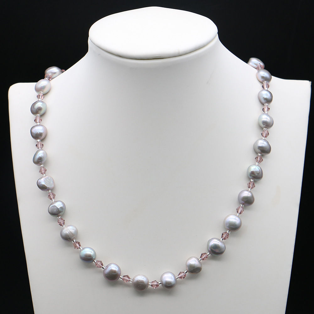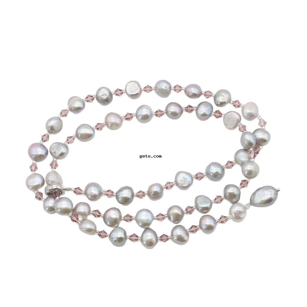 Natürliche Süßwasser Perle Halskette, Natürliche kultivierte Süßwasserperlen, mit Kristall & 304 Edelstahl, Unregelmäßige, Modeschmuck, gemischte Farben, 8-9mm, verkauft per 62 cm Strang