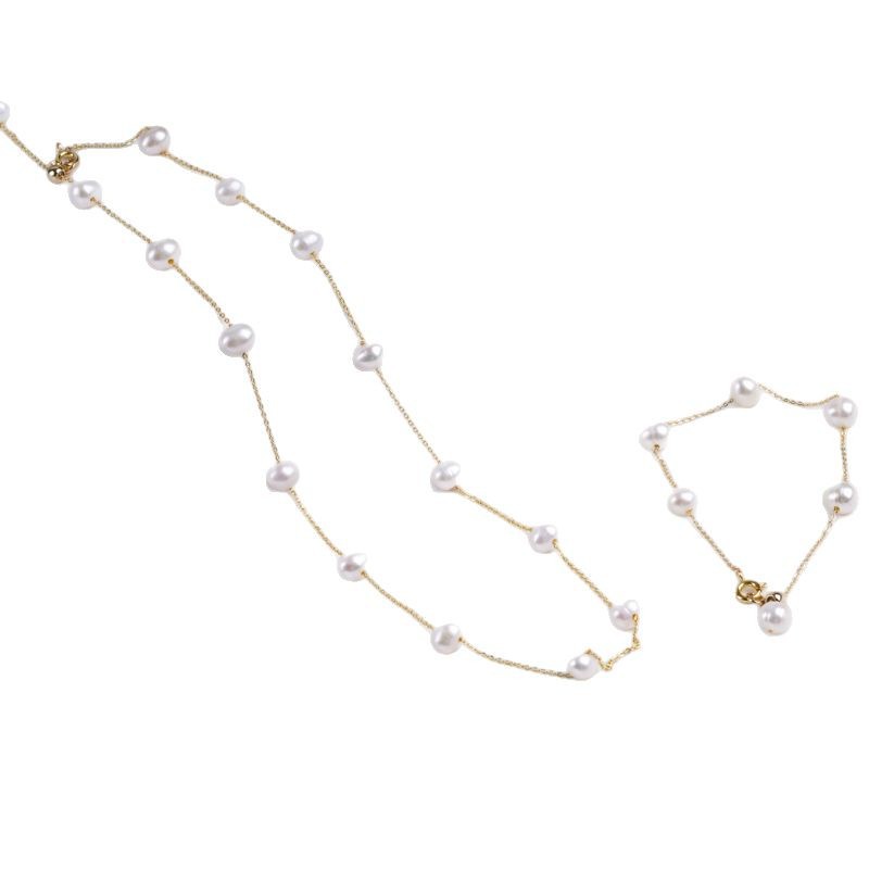 - Natürliche kultivierte Süßwasserperlen Schmucksets, Armband & Halskette, 304 Edelstahl