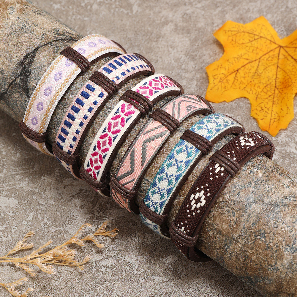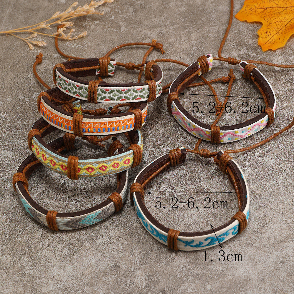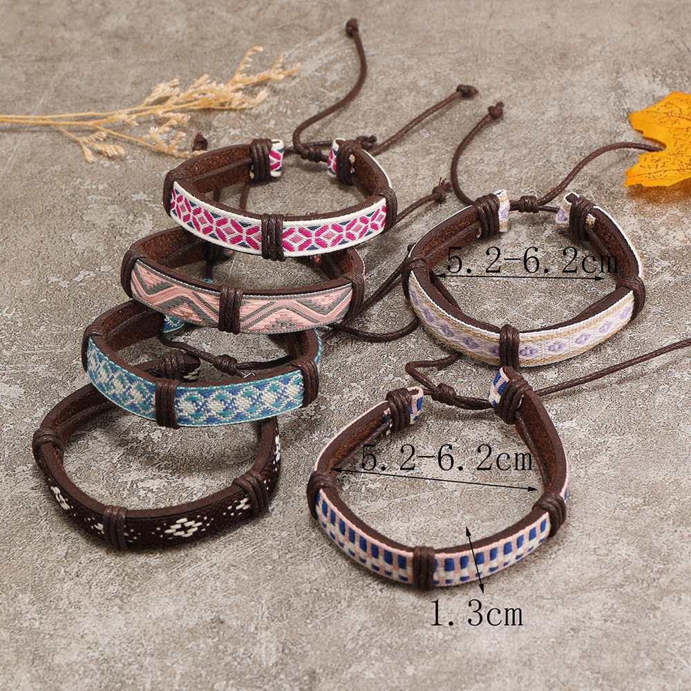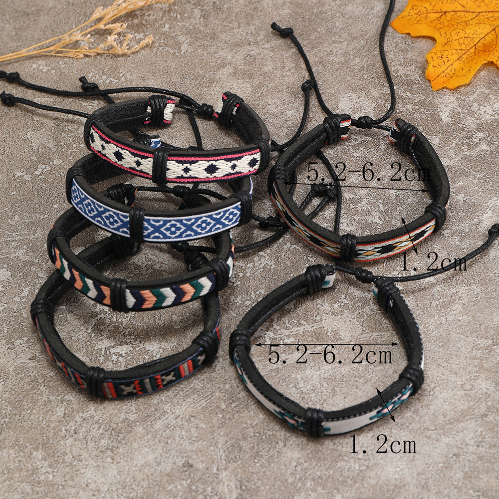 PU Schnur Armbänder, PU Leder, mit Wachsschnur & Terylen Schnur, handgemacht, 5 Stück & unisex & verschiedene Muster für Wahl, farbenfroh, verkauft von setzen
