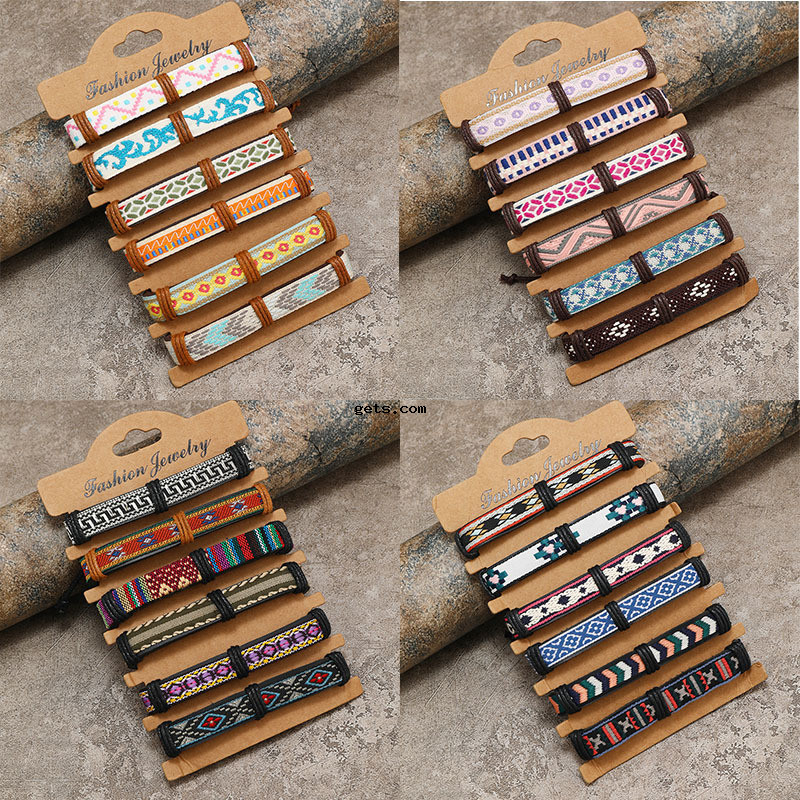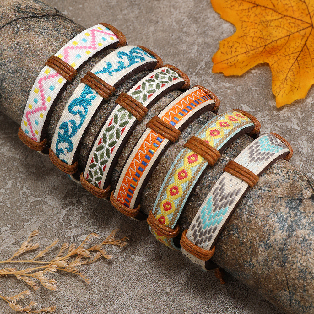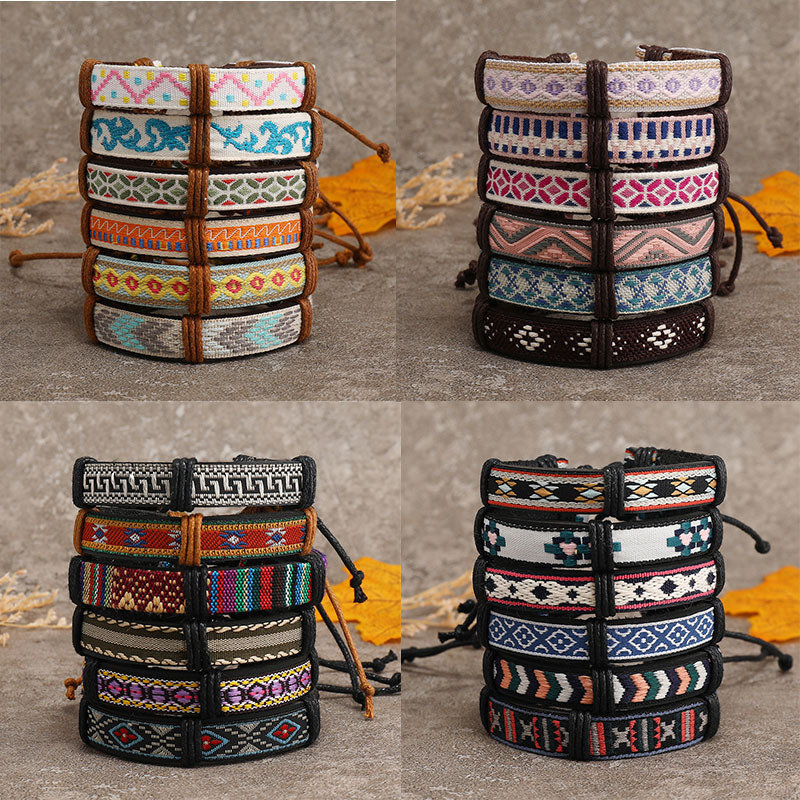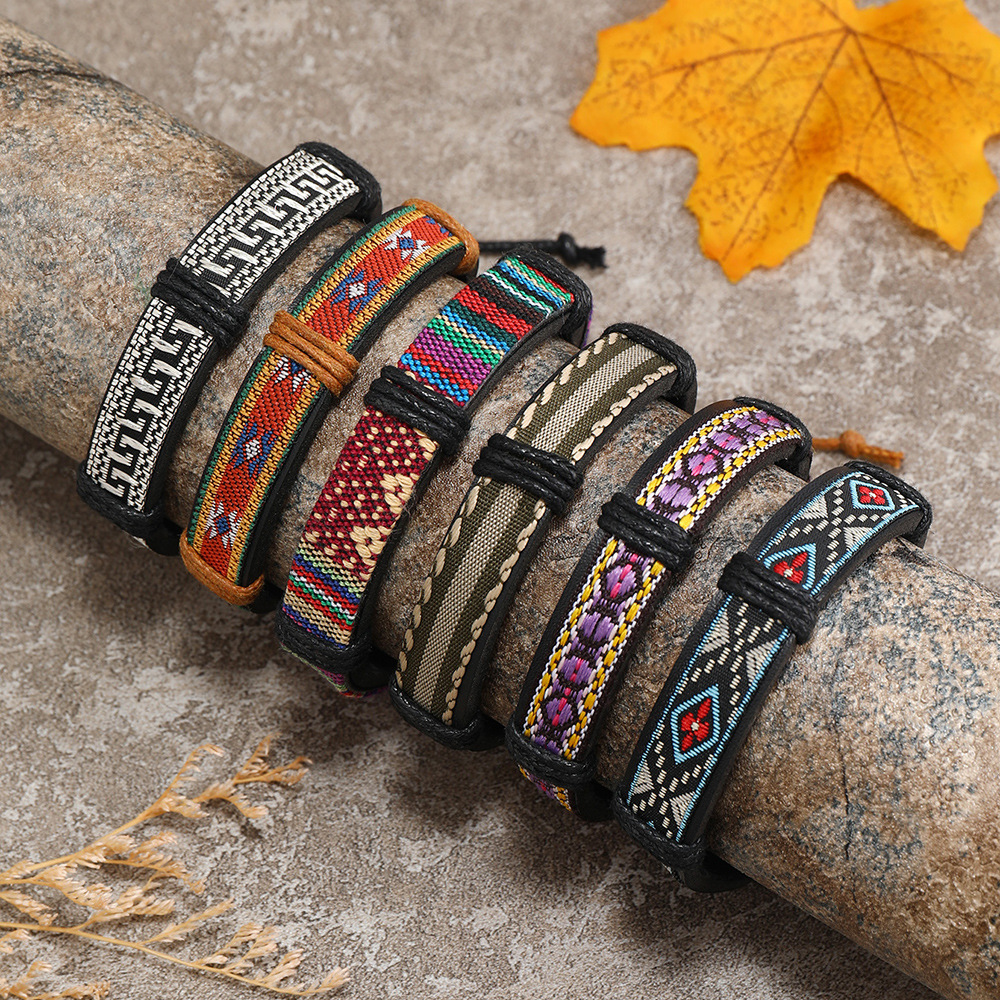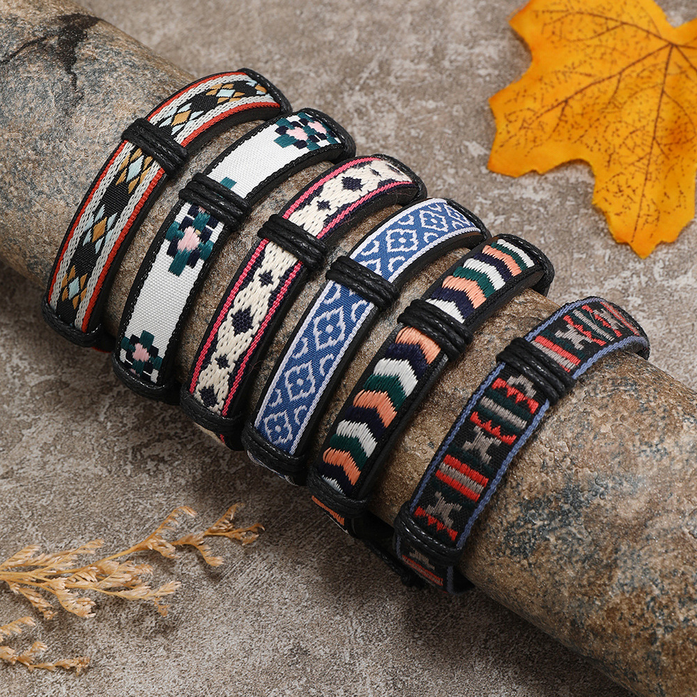 PU Schnur Armbänder, PU Leder, mit Wachsschnur & Terylen Schnur, handgemacht, 5 Stück & unisex & verschiedene Muster für Wahl, farbenfroh, verkauft von setzen