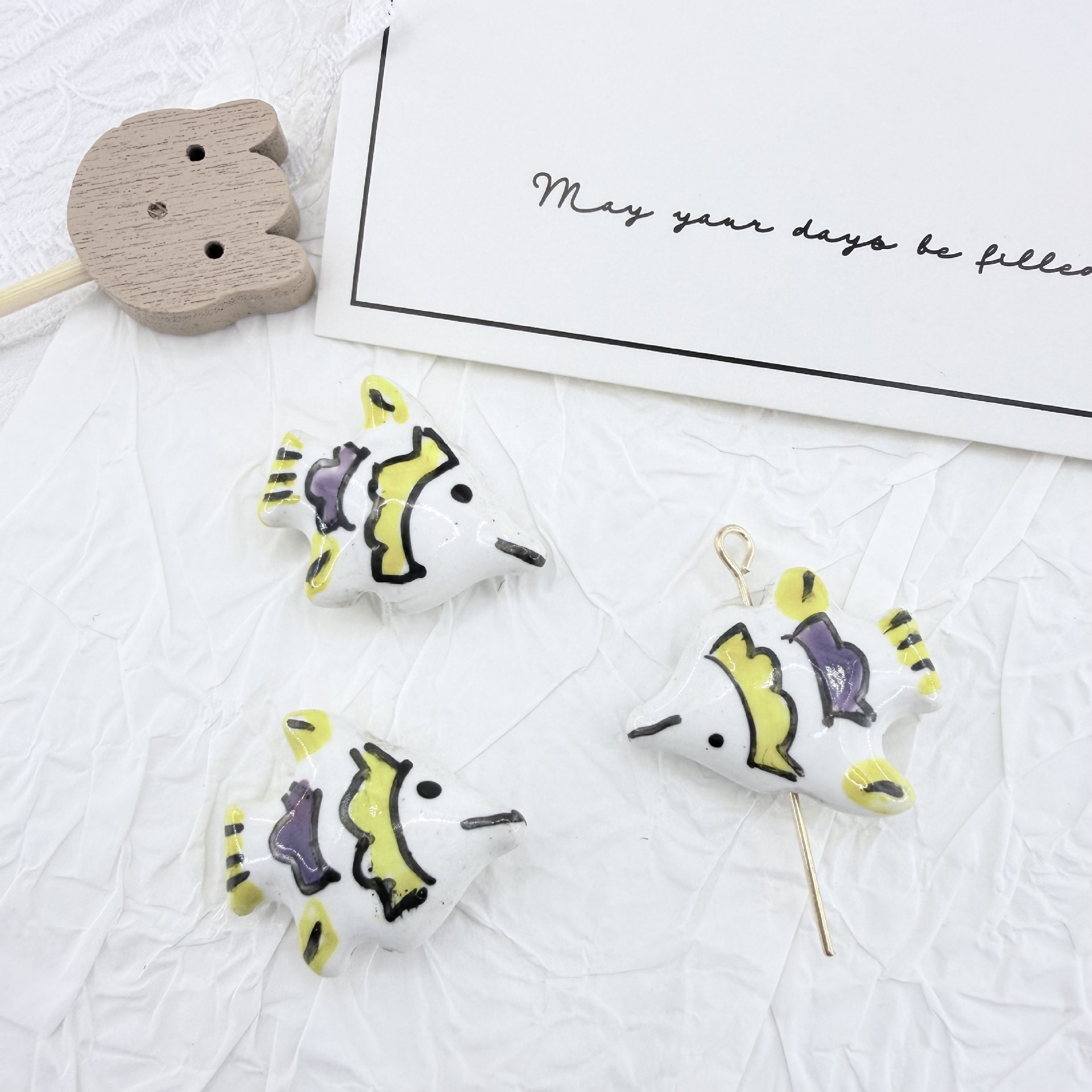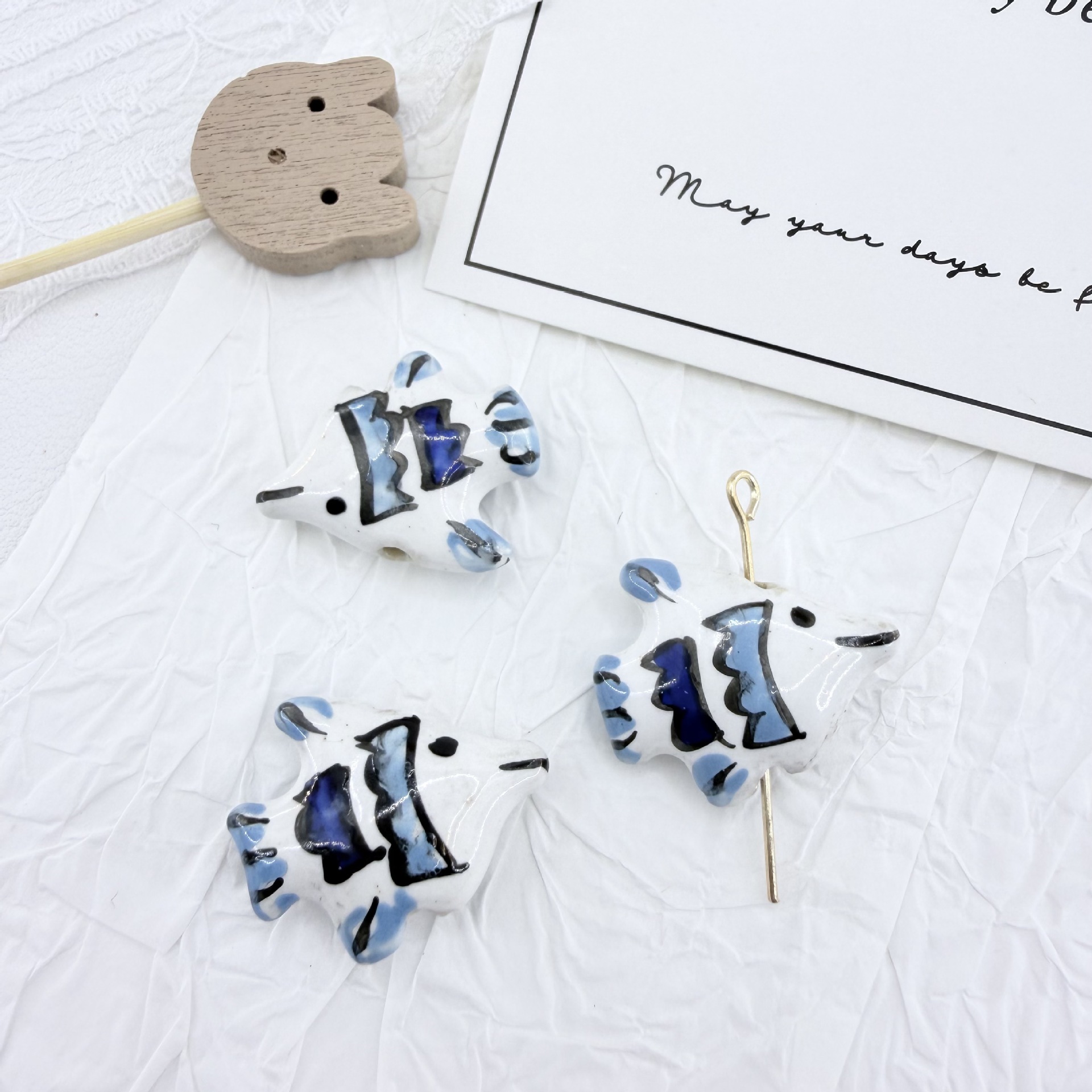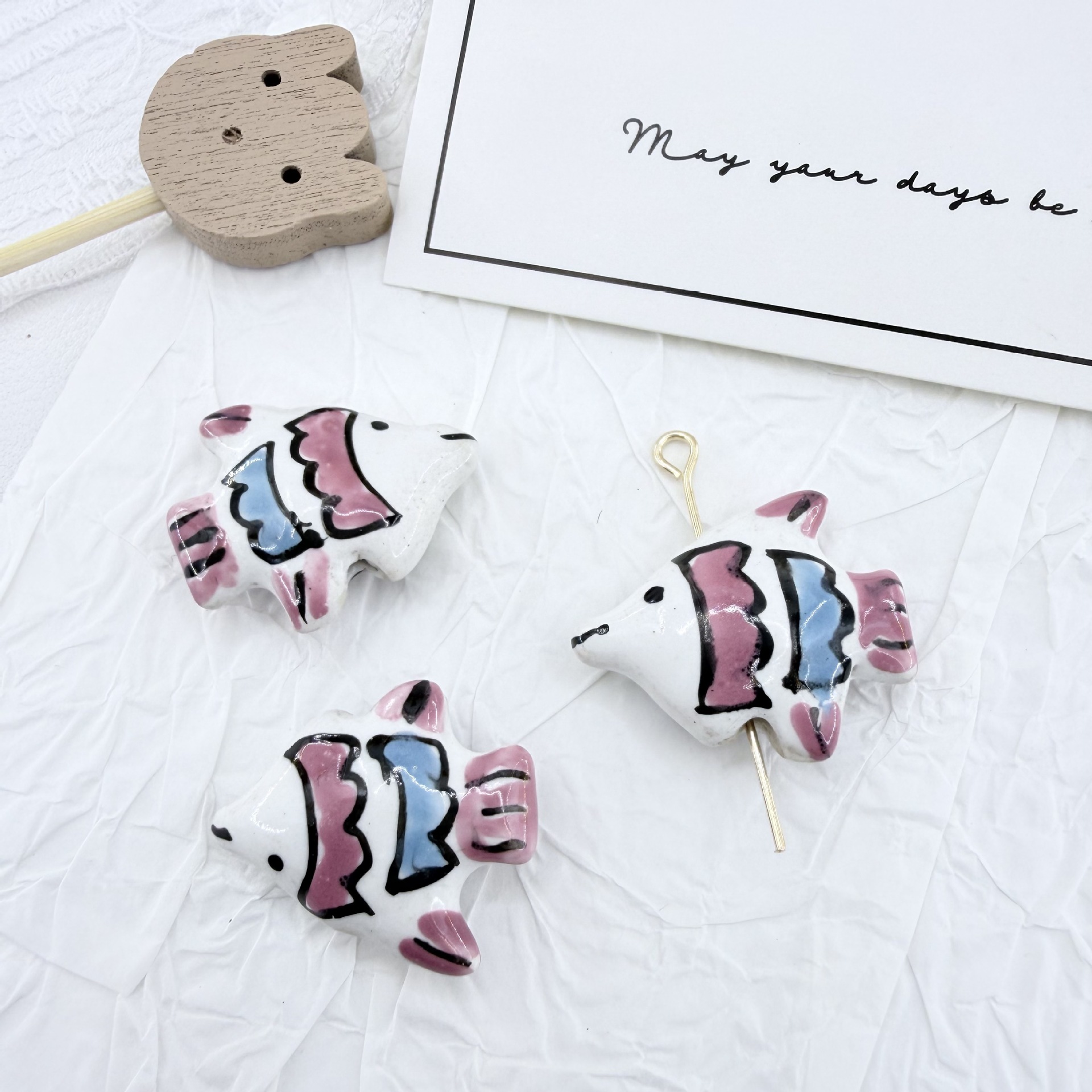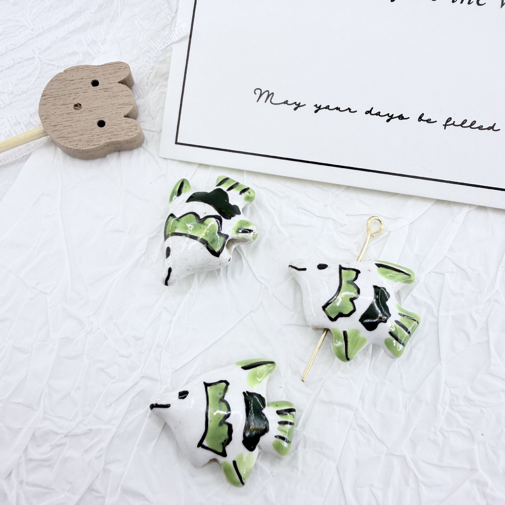 - Porzellan Schmuckperlen, Fisch, Einbrennlack