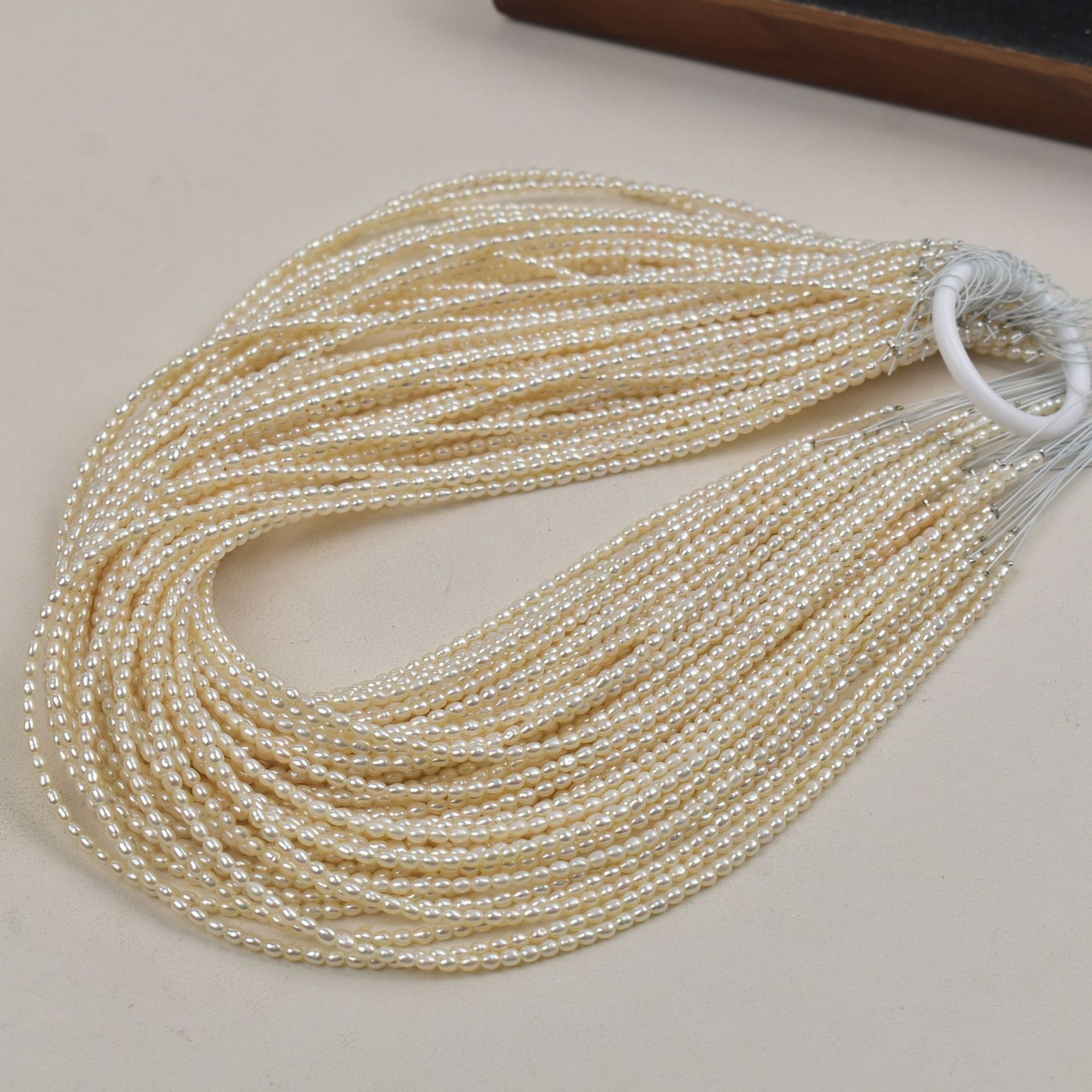 Reis Süßwasser Zuchtperlen, Natürliche kultivierte Süßwasserperlen, mit Baumwollfaden & 304 Edelstahl, DIY, weiß, u7ea62.5mm, verkauft per 38 cm Strang