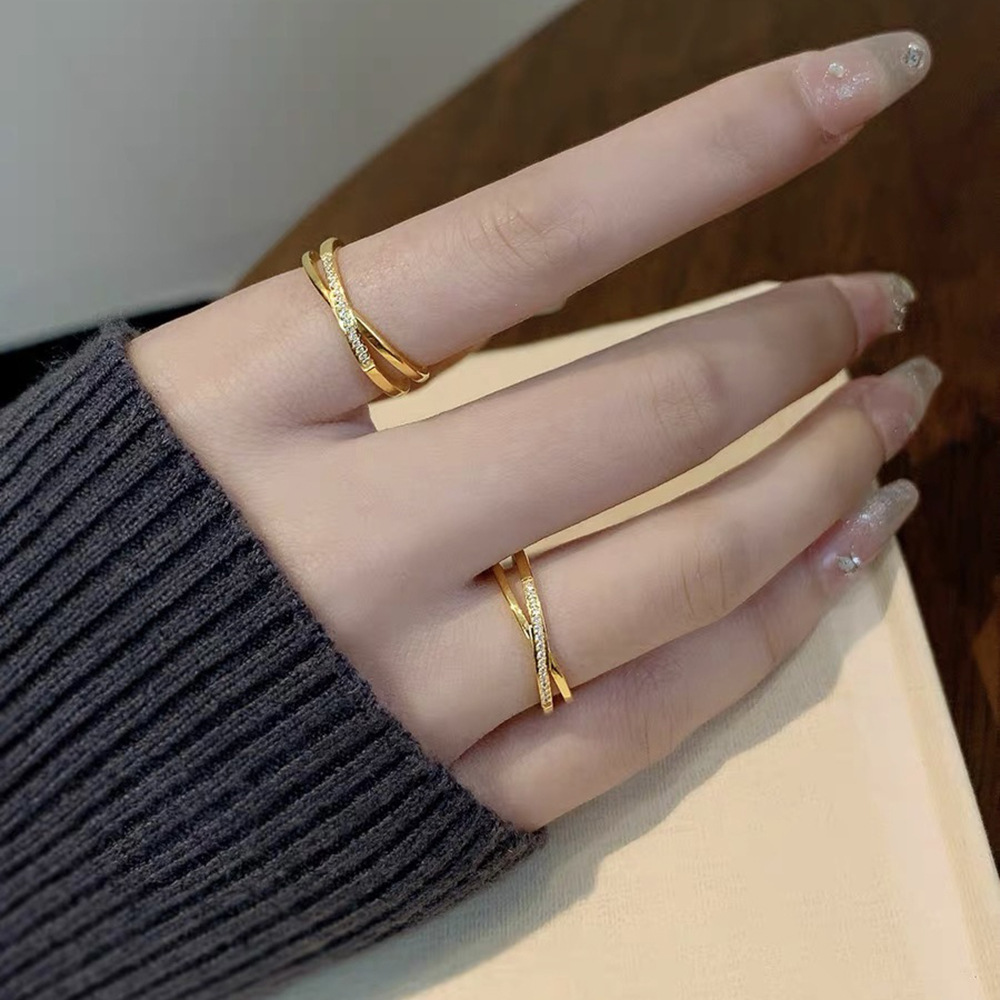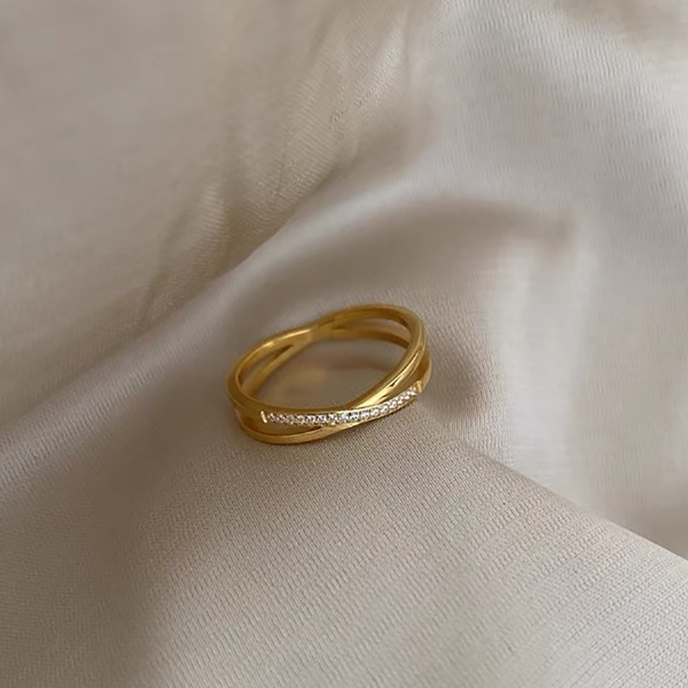 Rhinestone-Edelstahl -Finger-Ring, 304 Edelstahl, 18K vergoldet