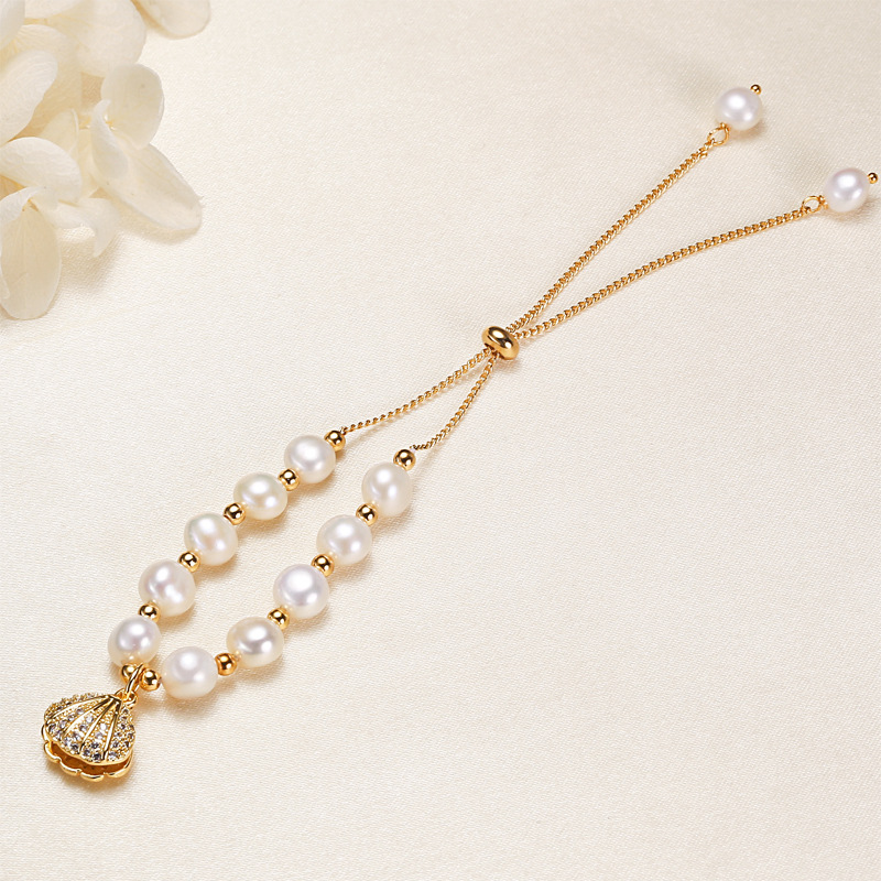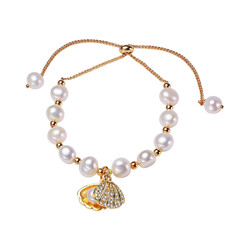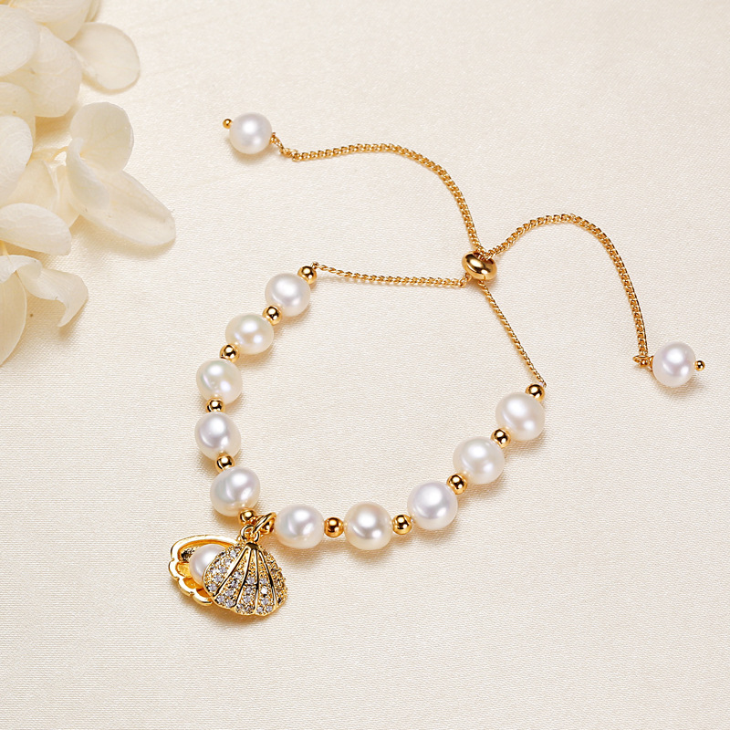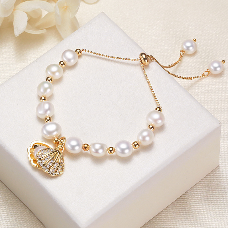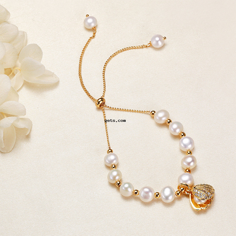Süßwasser Zuchtperlen Armband, Natürliche kultivierte Süßwasserperlen, mit Messing, Barock, plattiert, Modeschmuck & Micro pave Zirkonia, keine, frei von Nickel, Blei & Kadmium, 7-8mm, Länge:25 cm, verkauft von PC