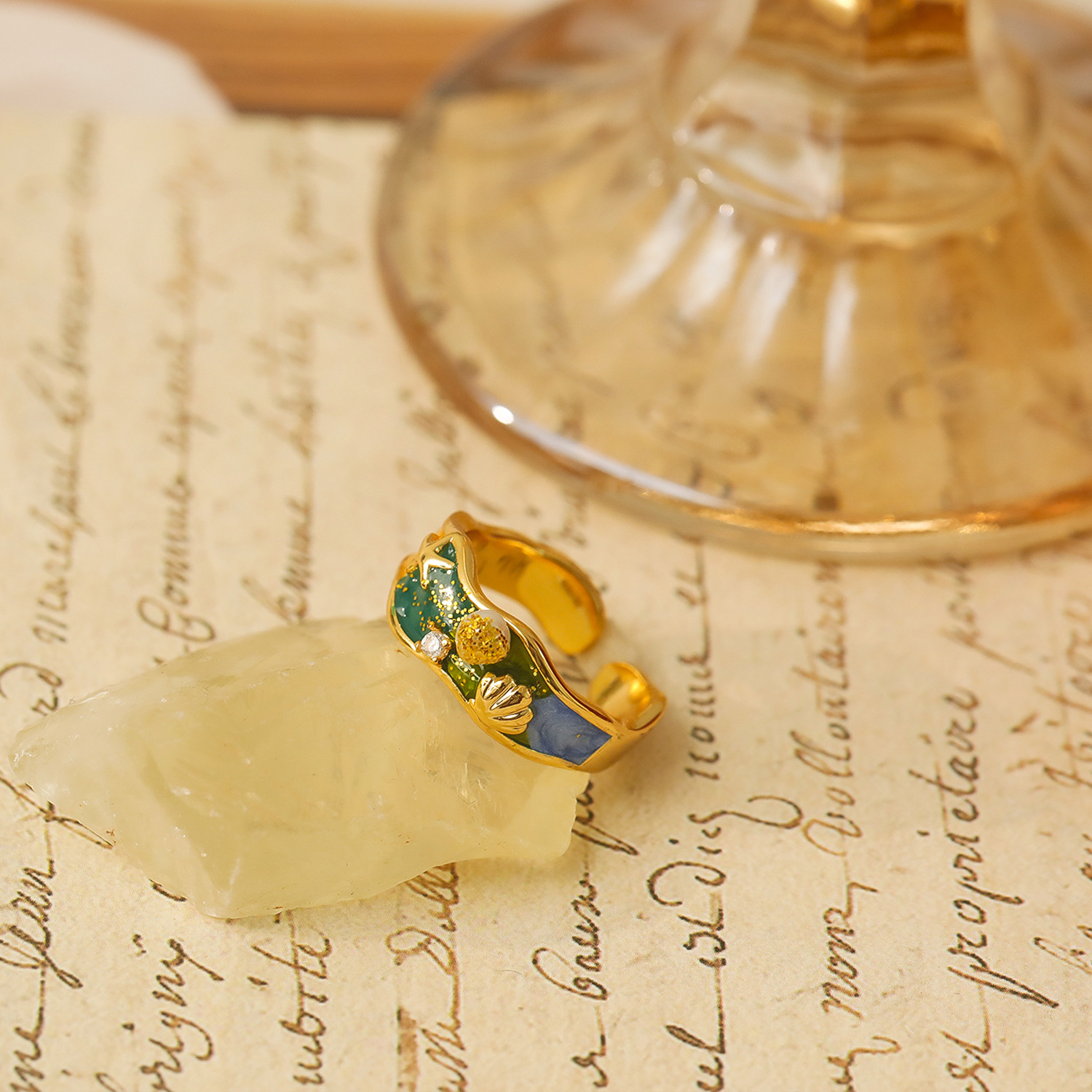 Süßwasserperlen Fingerring, Messing, mit Natürliche kultivierte Süßwasserperlen, 18K vergoldet, Micro pave Zirkonia & für Frau & Emaille, The inner diameter of the open ring is 1.6mm and cannot be adjusted, verkauft von PC
