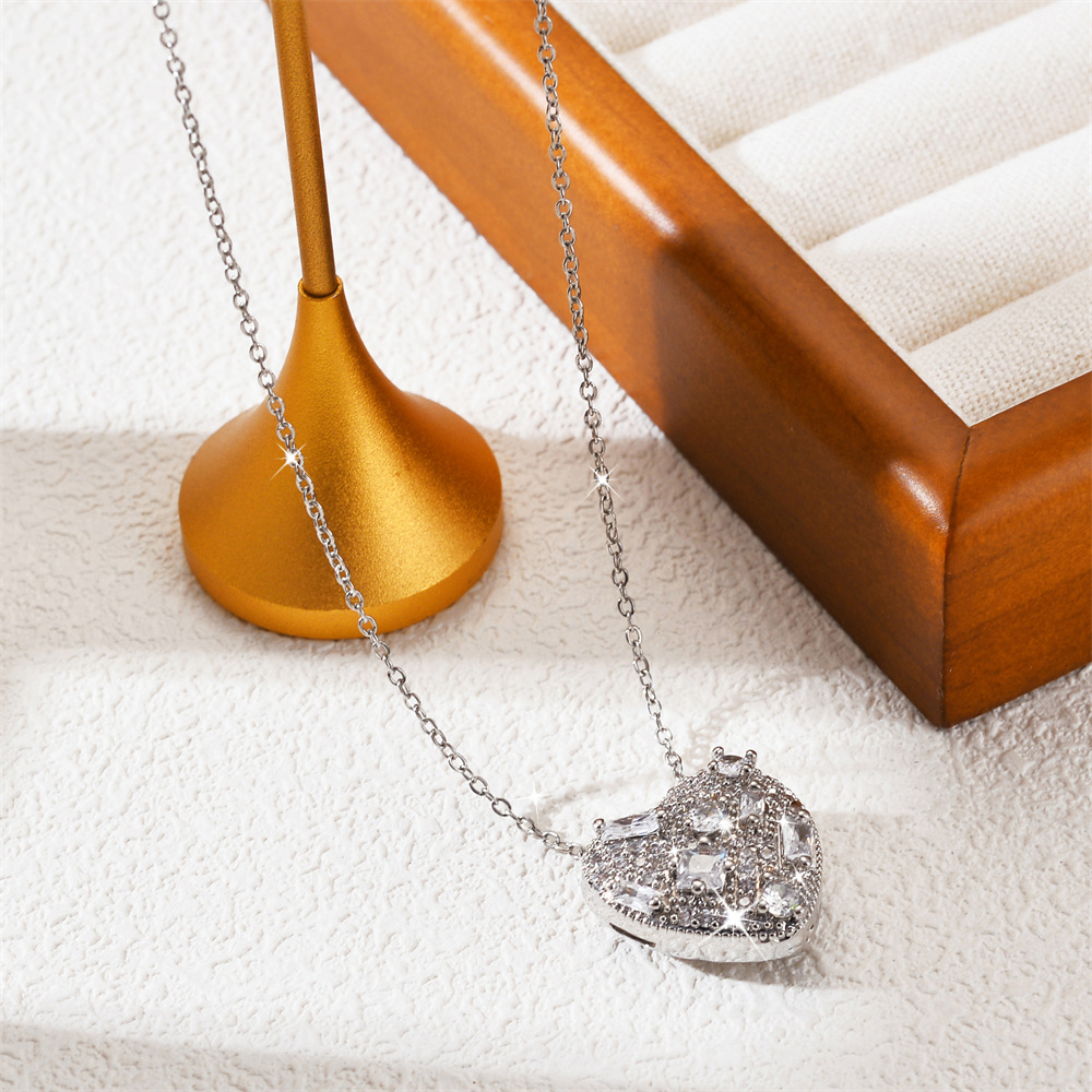 Titanstahl Halskette, Herz, plattiert, Modeschmuck & Micro pave Zirkonia & für Frau, keine, verkauft von PC
