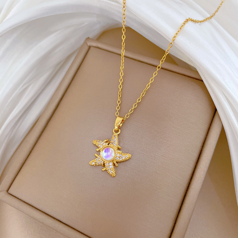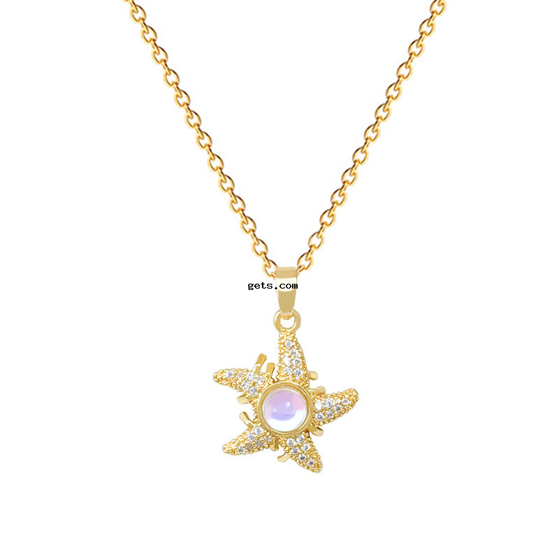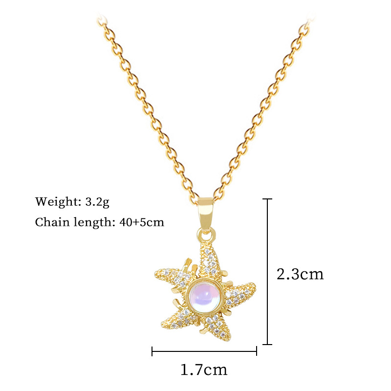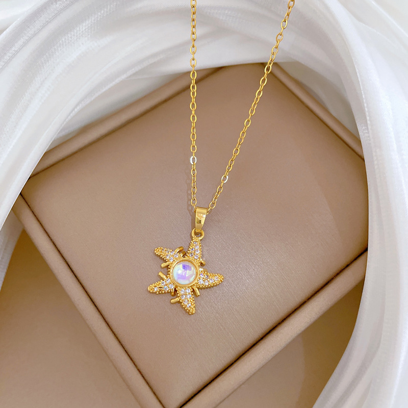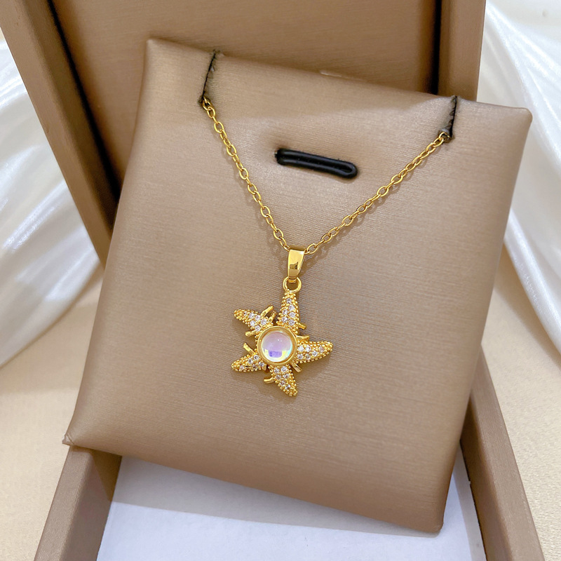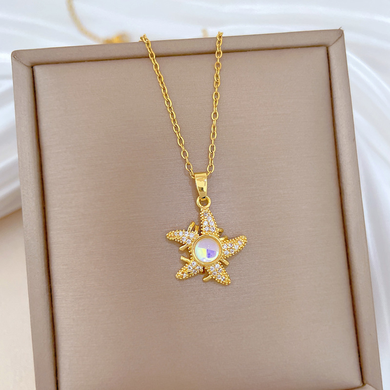 Titanstahl Halskette, mit Messing, Seestern, Modeschmuck & Micro pave Zirkonia & für Frau, goldfarben, verkauft von PC
