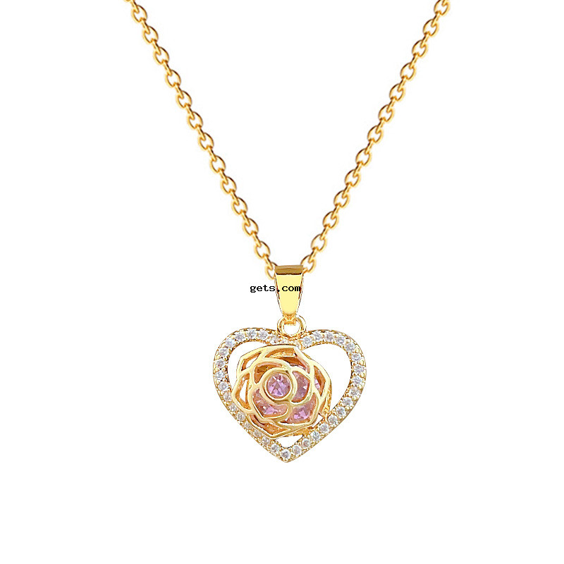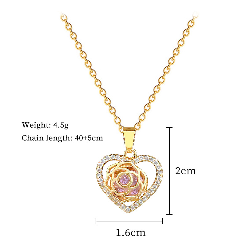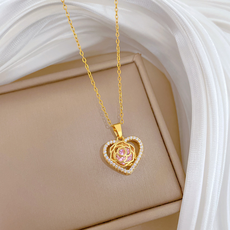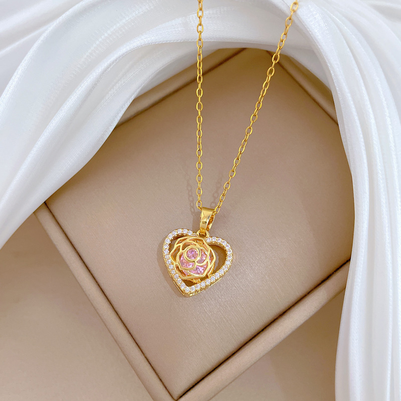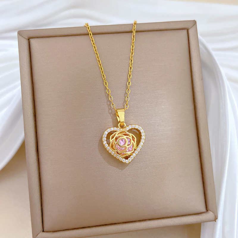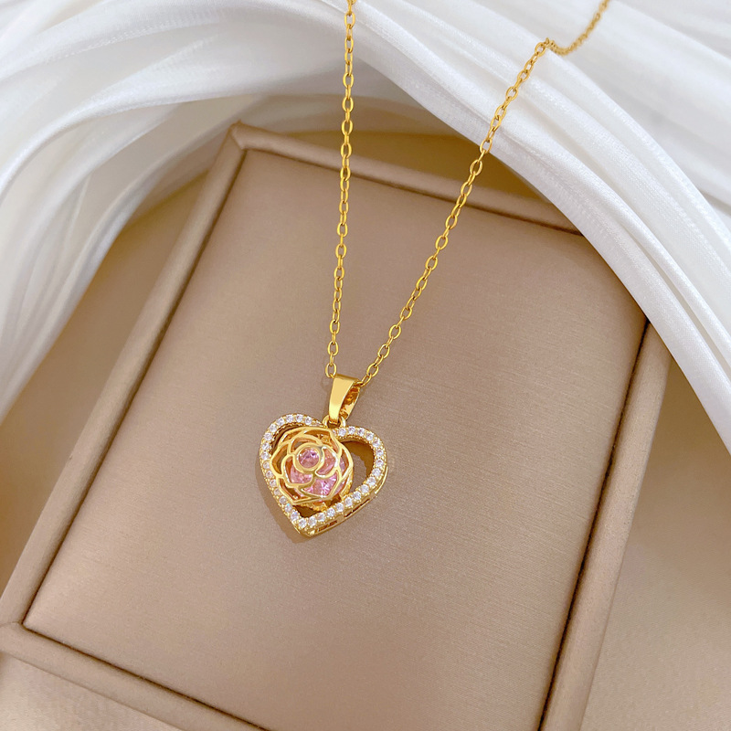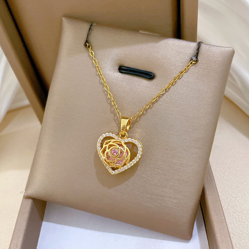 Titanstahl Halskette, mit Messing, Herz, Micro pave Zirkonia & für Frau & hohl, goldfarben, verkauft von PC