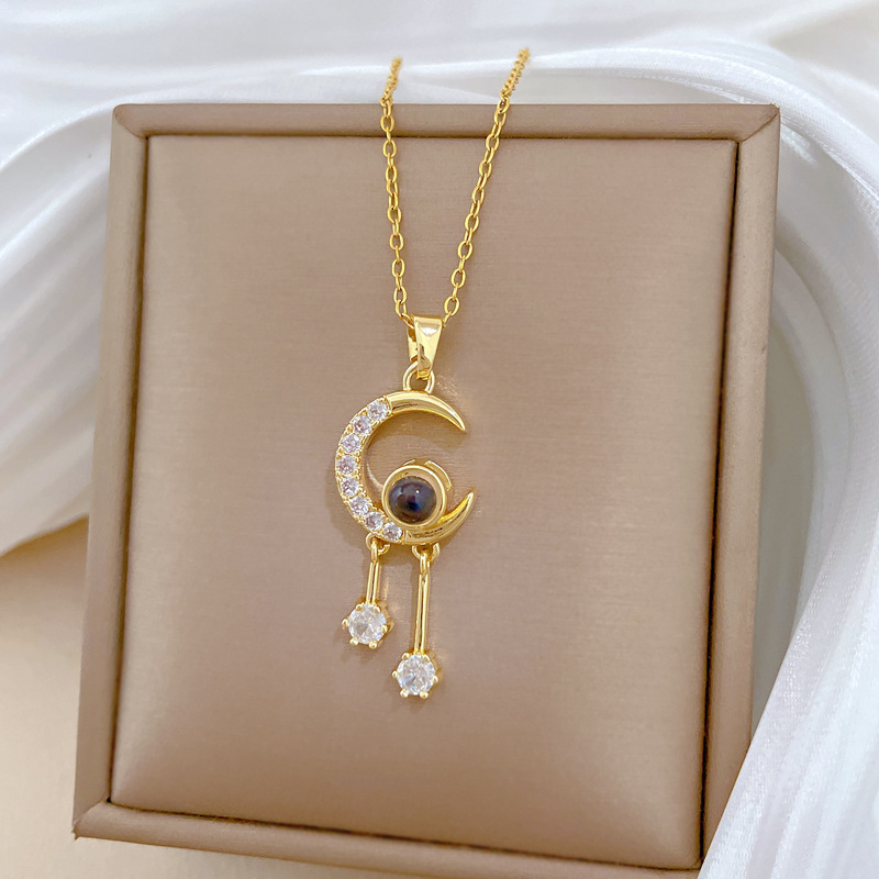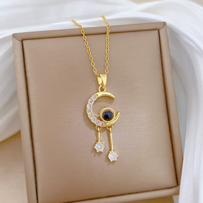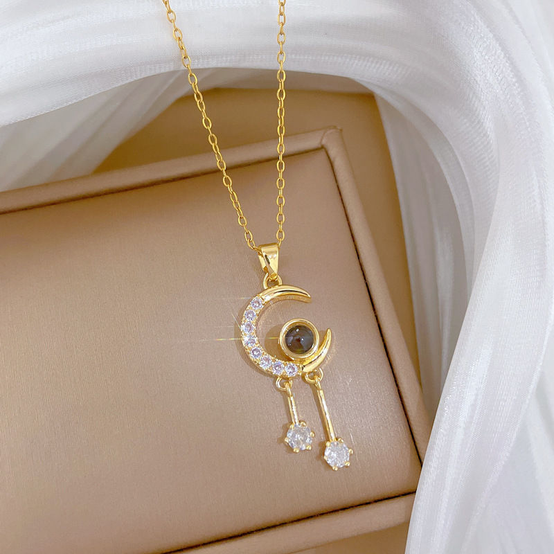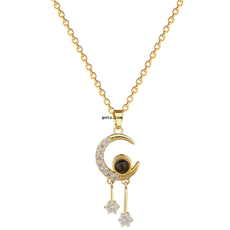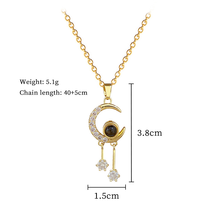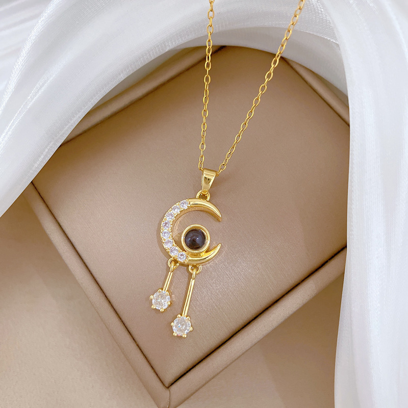Titanstahl Halskette, mit Glasstein & Messing, Mond, Modeschmuck & Micro pave Strass & für Frau, goldfarben, verkauft von PC