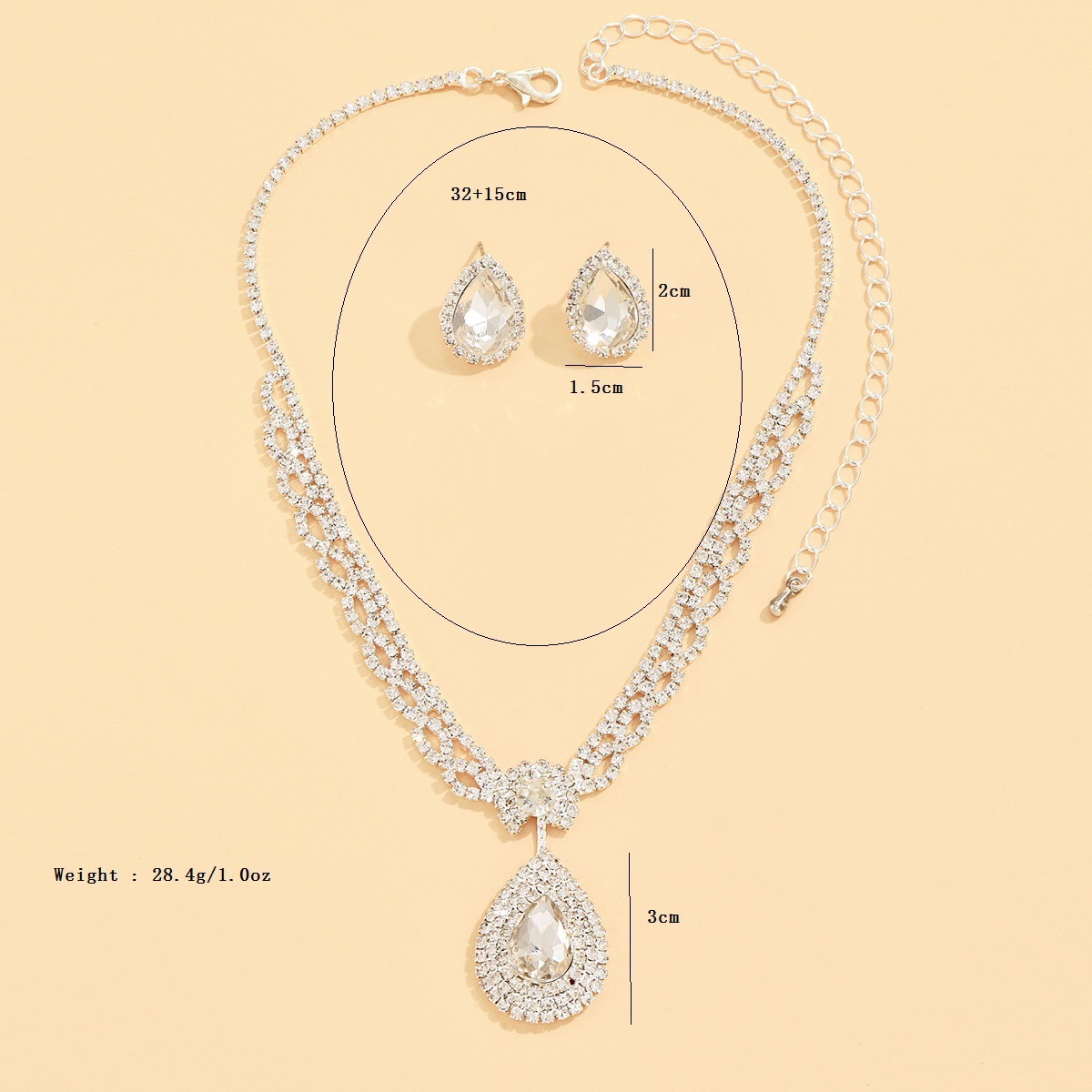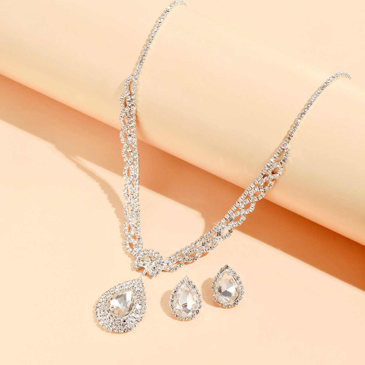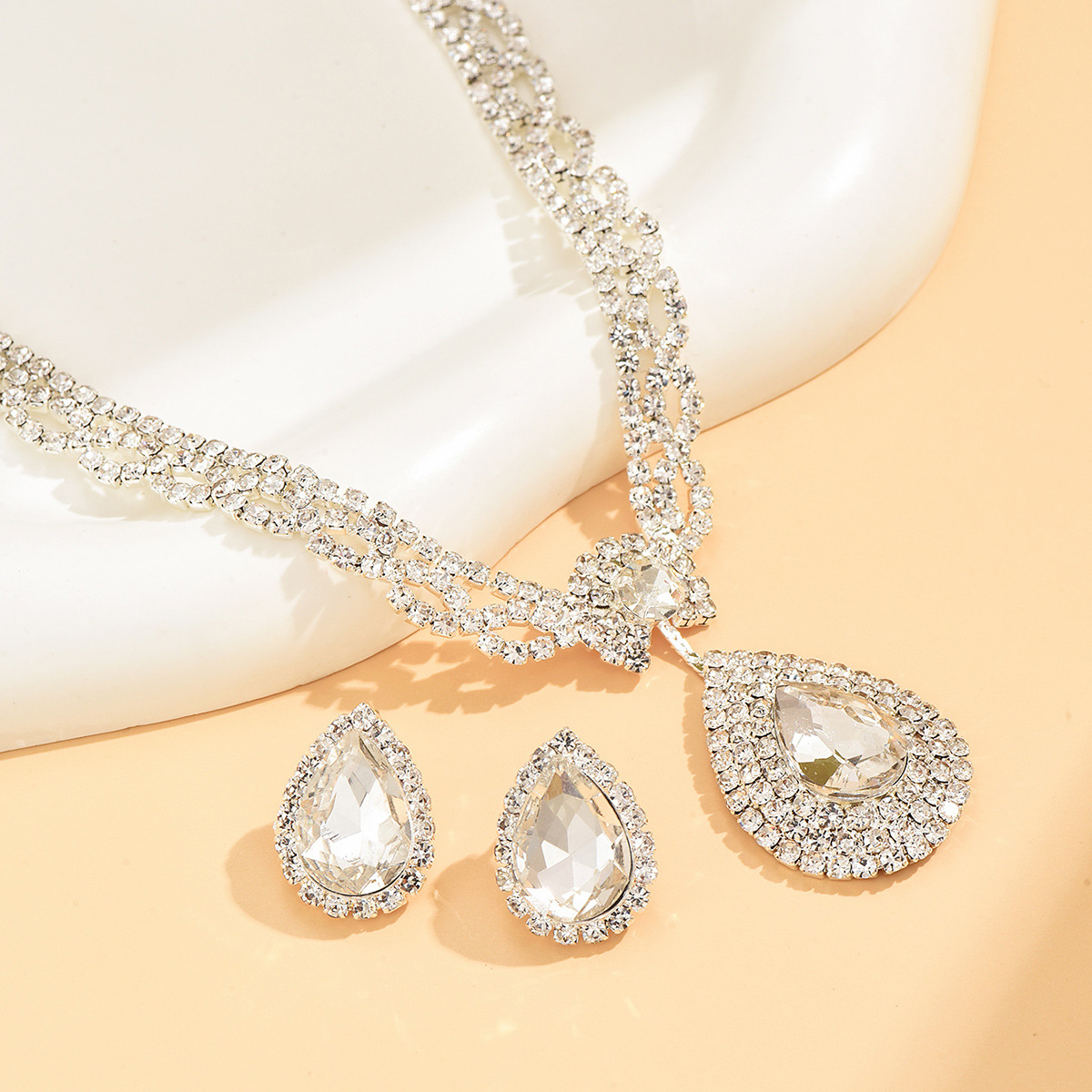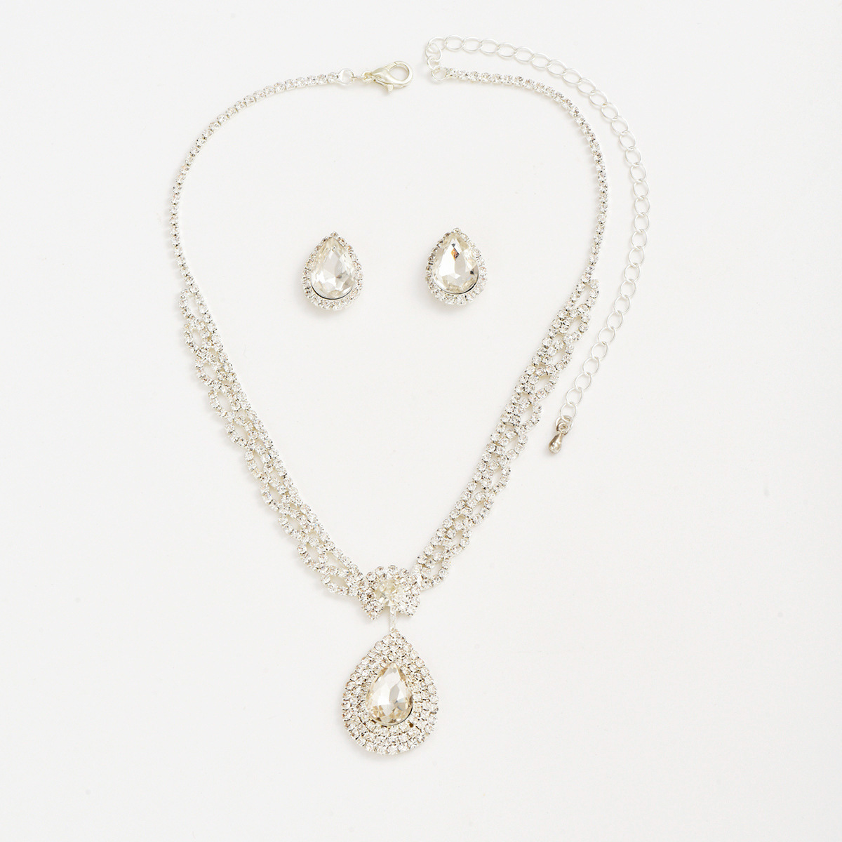 Zinklegierung Mode Schmuckset, Stud Ohrring & Halskette, Tropfen, silberfarben plattiert, 2 Stück & für Frau & mit Strass, verkauft von setzen