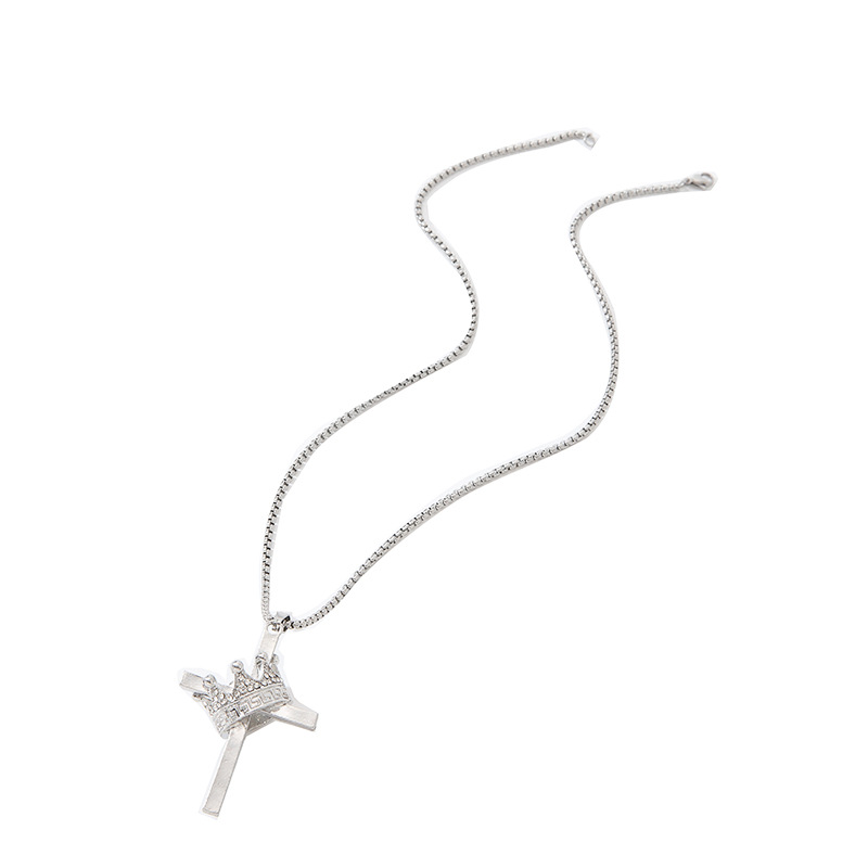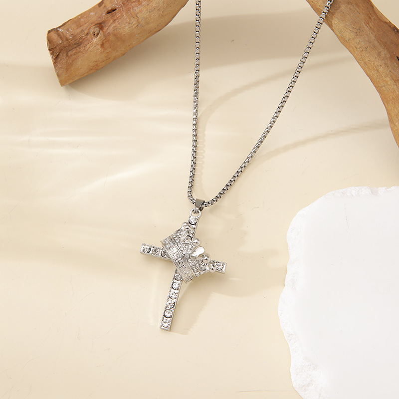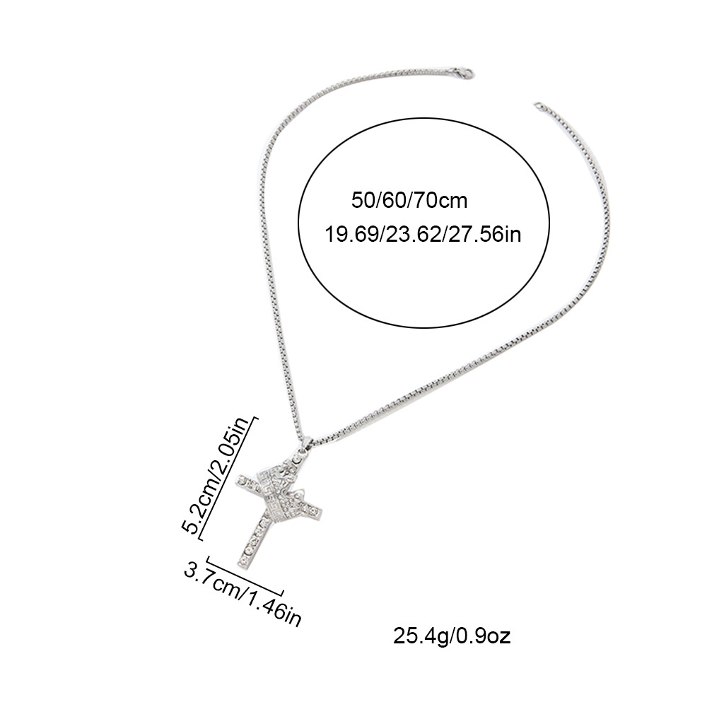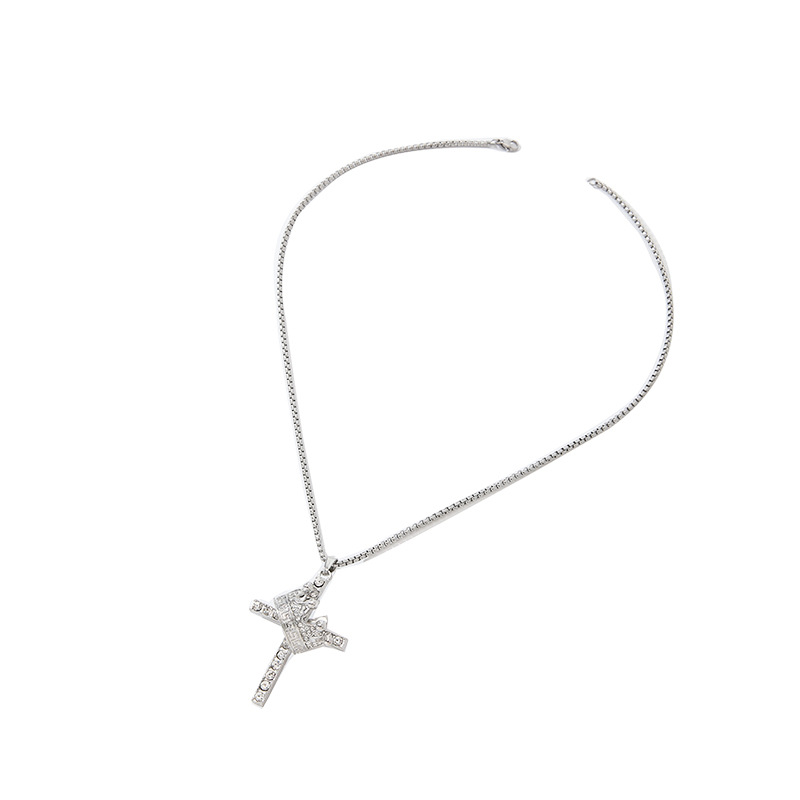 Zinklegierung Pullover Halskette, Kreuz, goldfarben plattiert, Modeschmuck & mit Strass, Silberfarbe, verkauft von PC