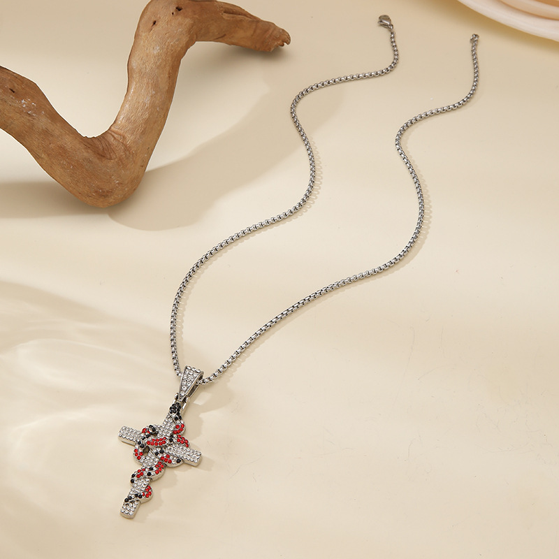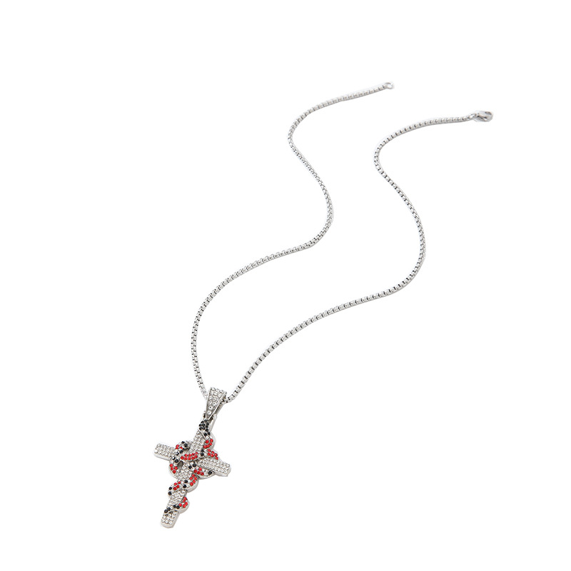 Zinklegierung Pullover Halskette, Kreuz, goldfarben plattiert, Modeschmuck & Micro pave Zirkonia, keine, verkauft von PC