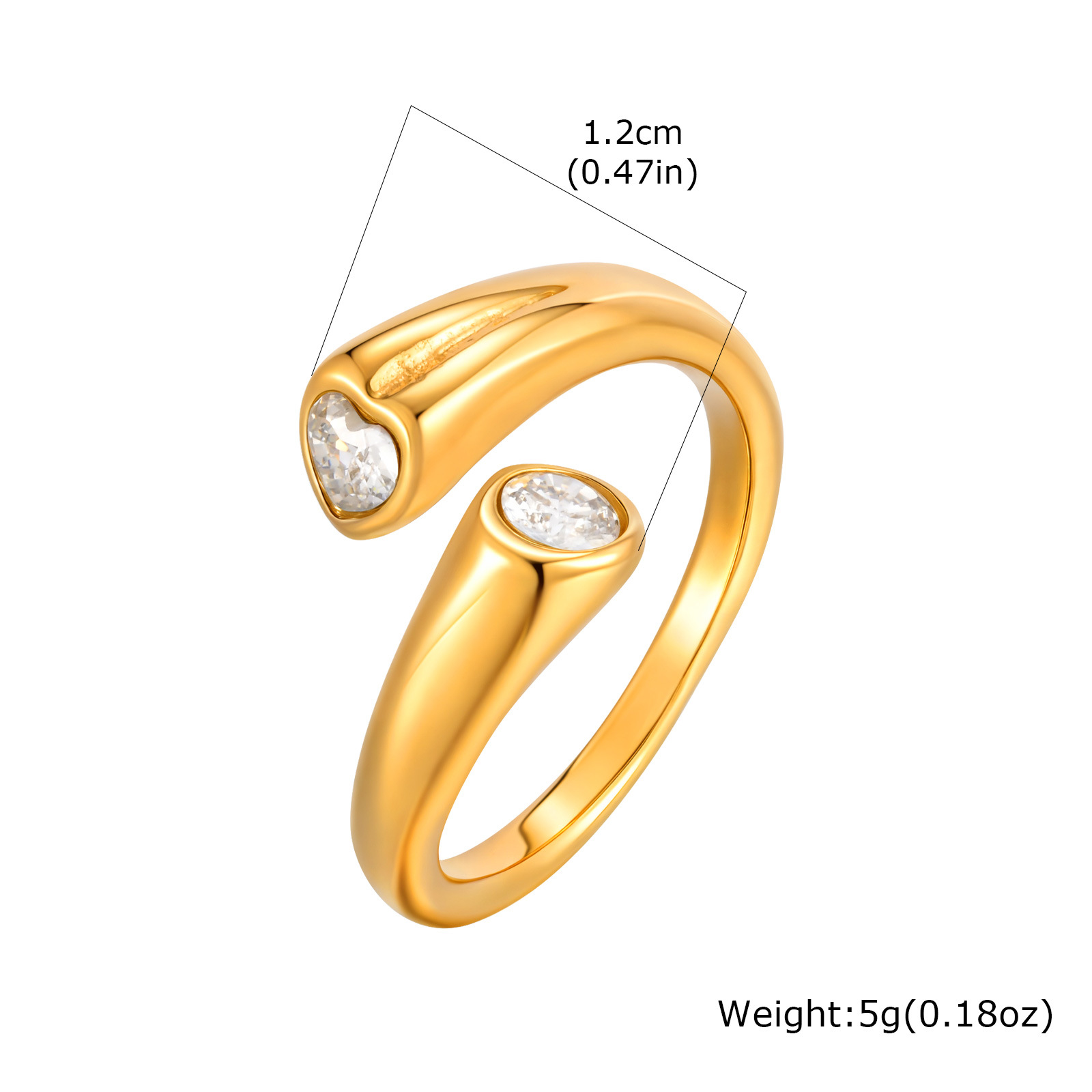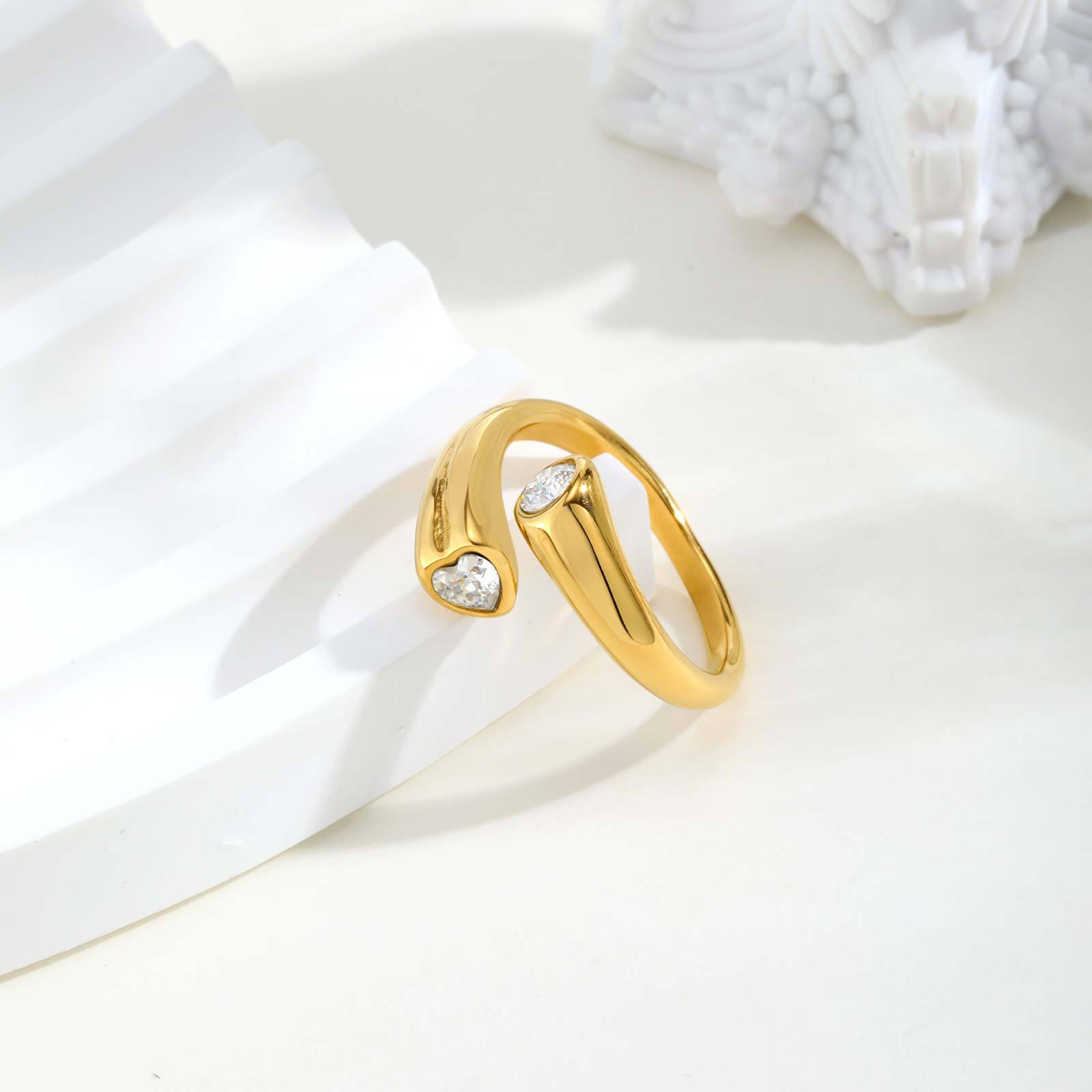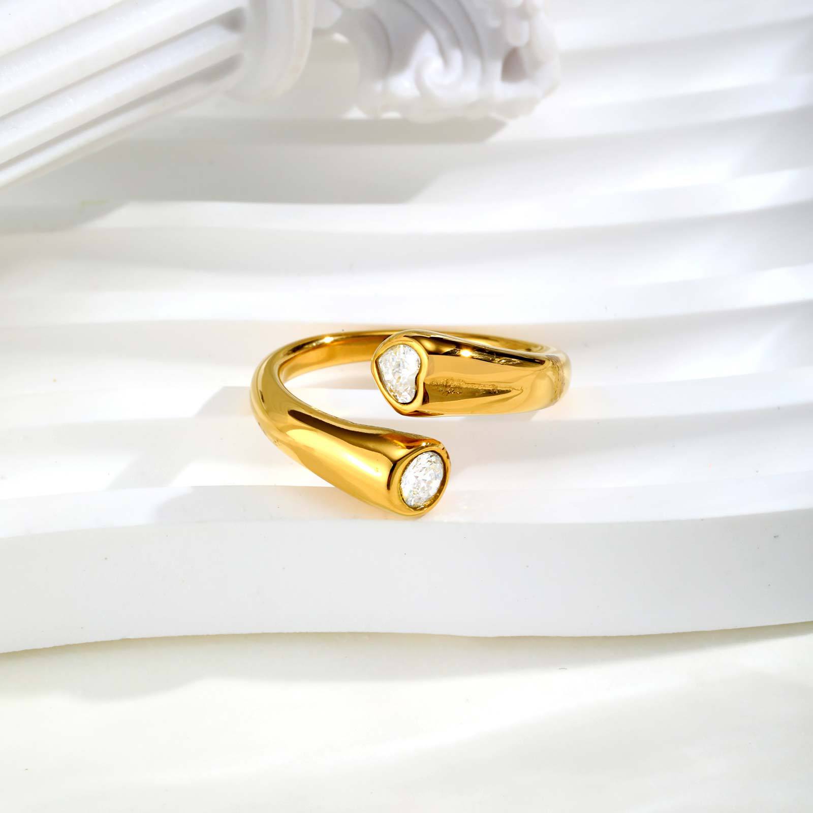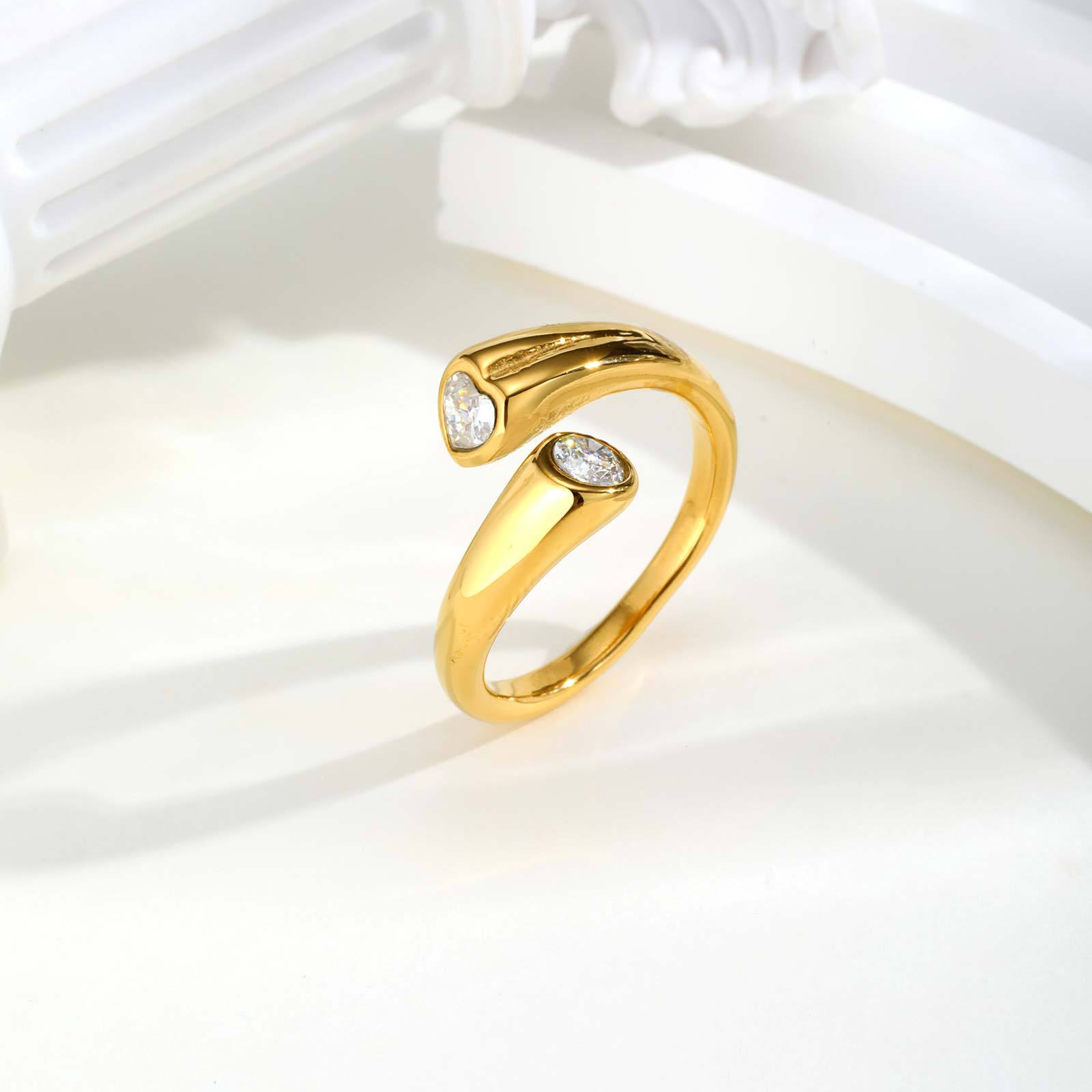 - Zirkonia Edelstahl-Finger- Ring, 304 Edelstahl, goldfarben plattiert