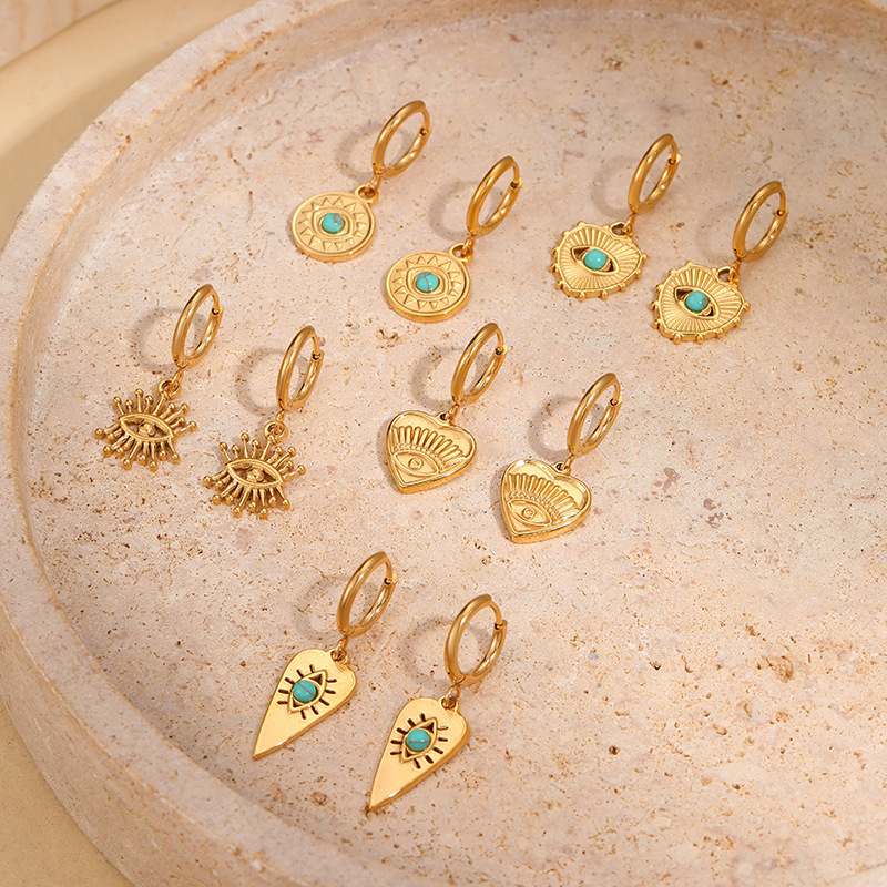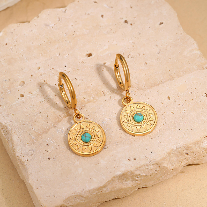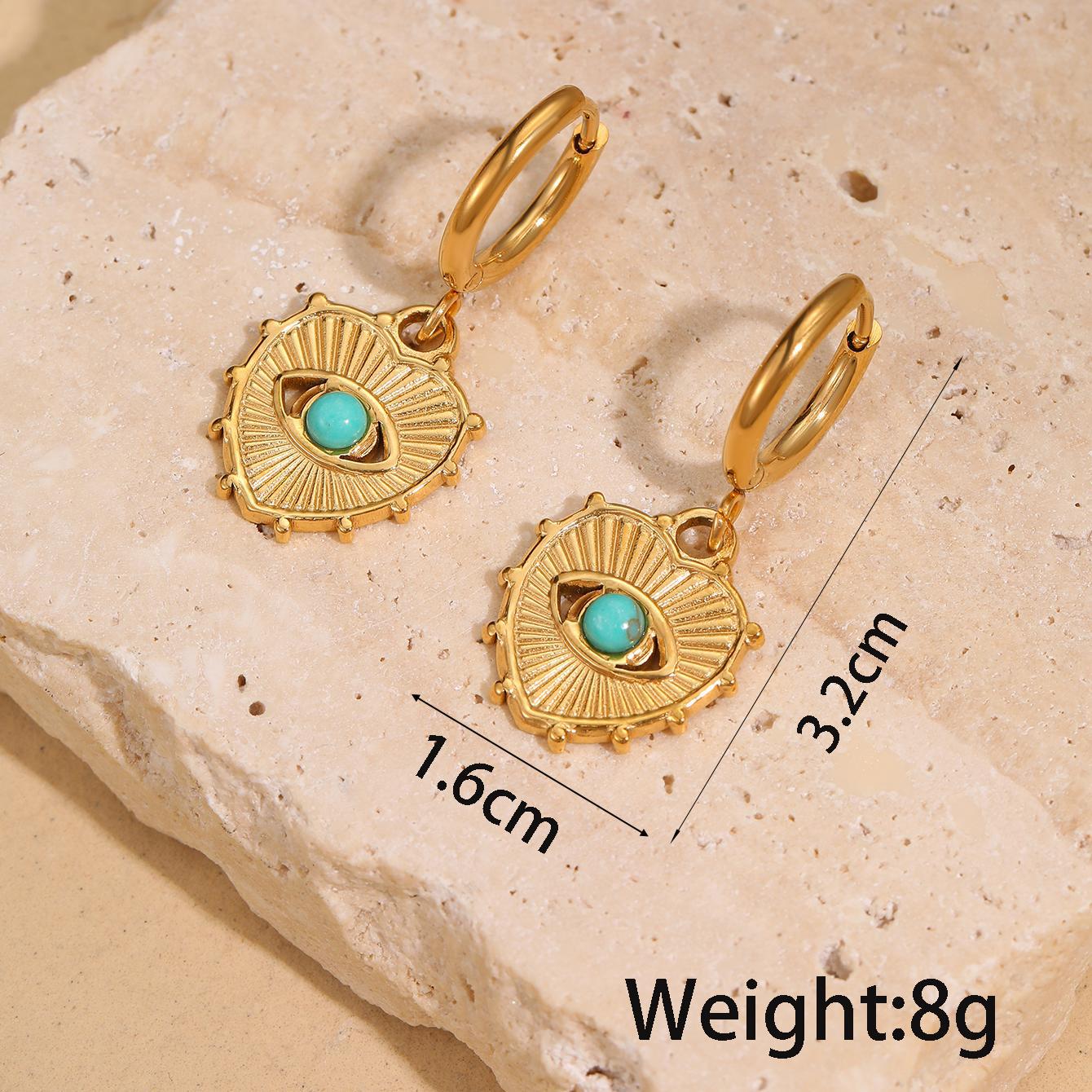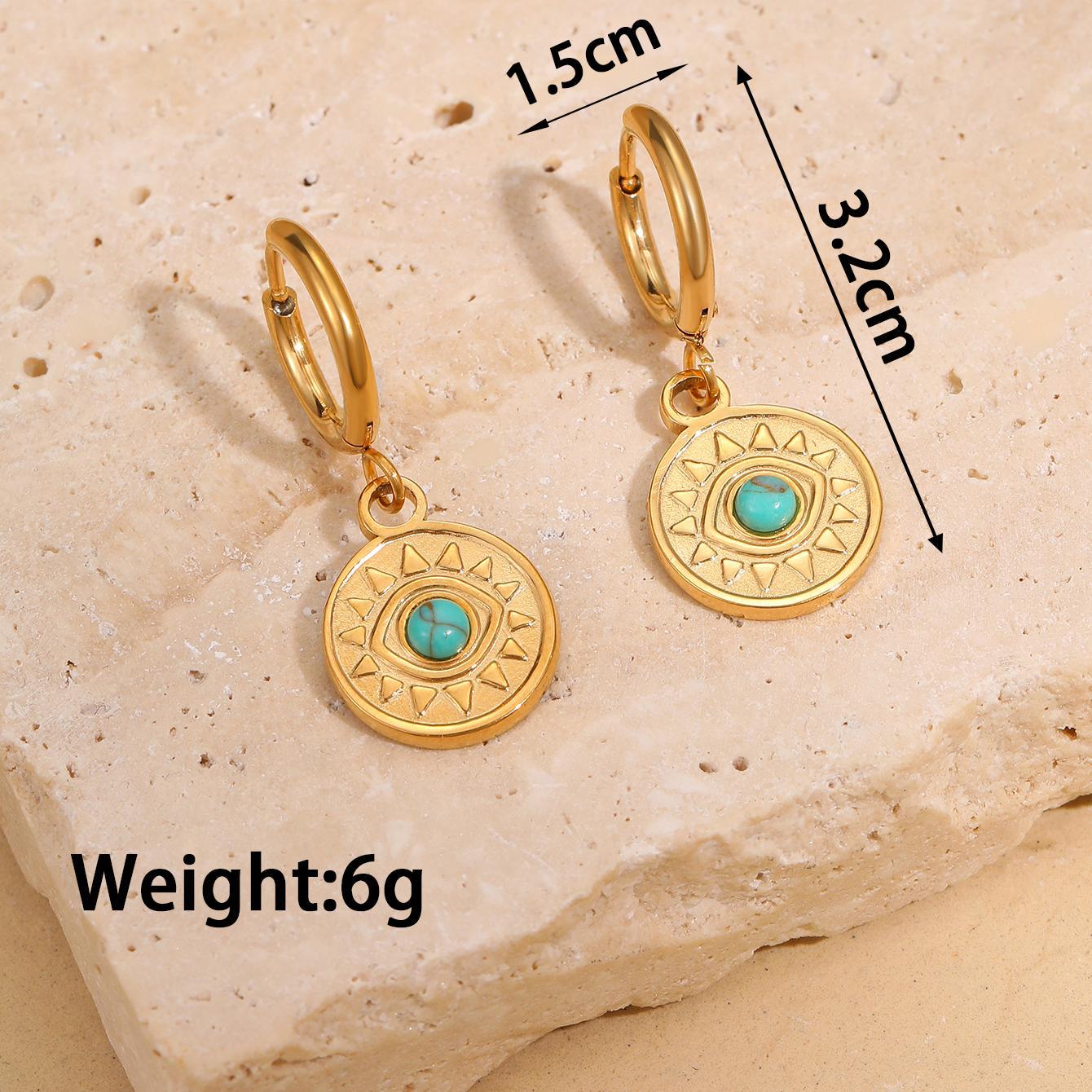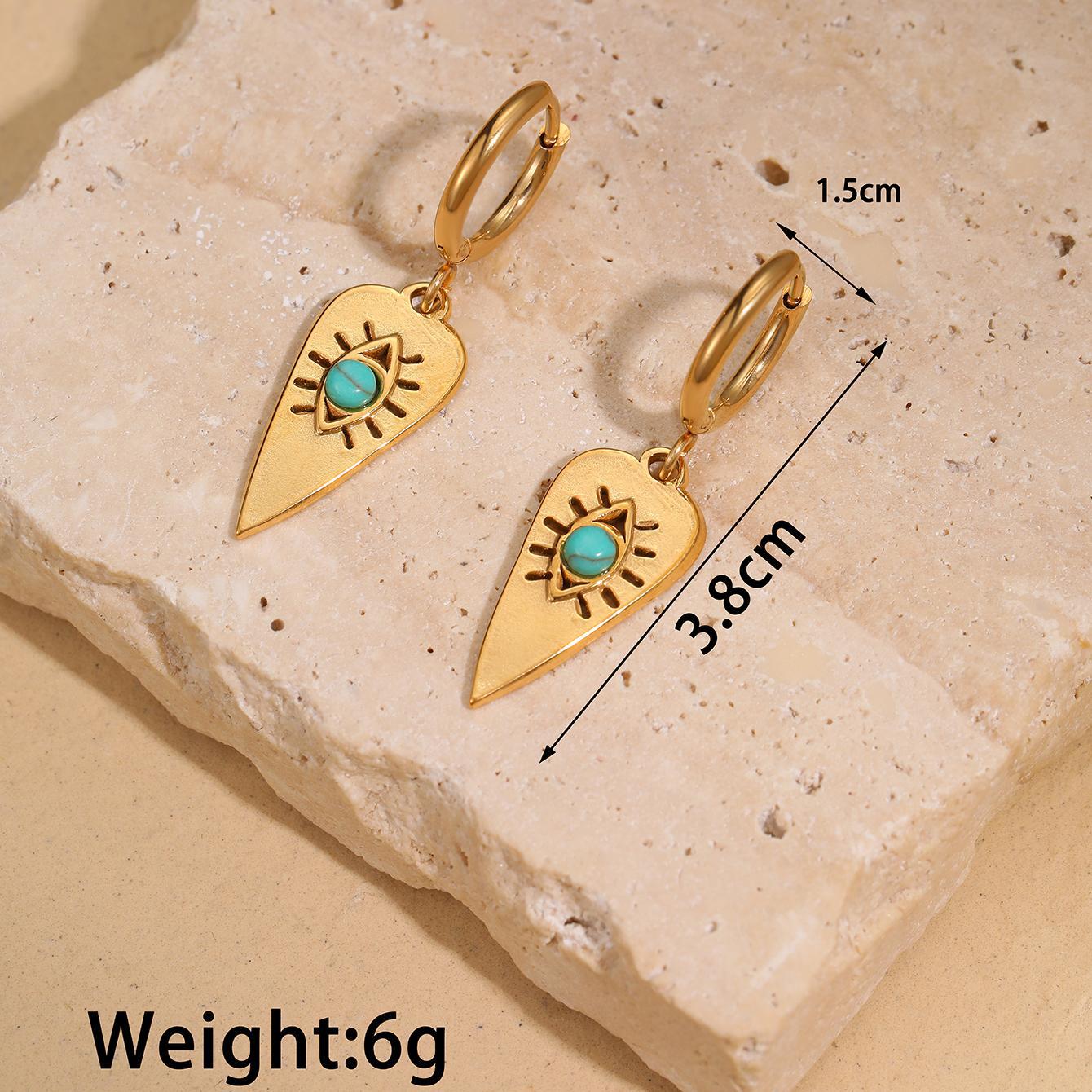 Acero inoxidable gota pendiente, acero inoxidable 304, con Turquesa sintético, 18K chapado en oro, Joyería & diferentes estilos para la opción & para mujer, Vendido por Par