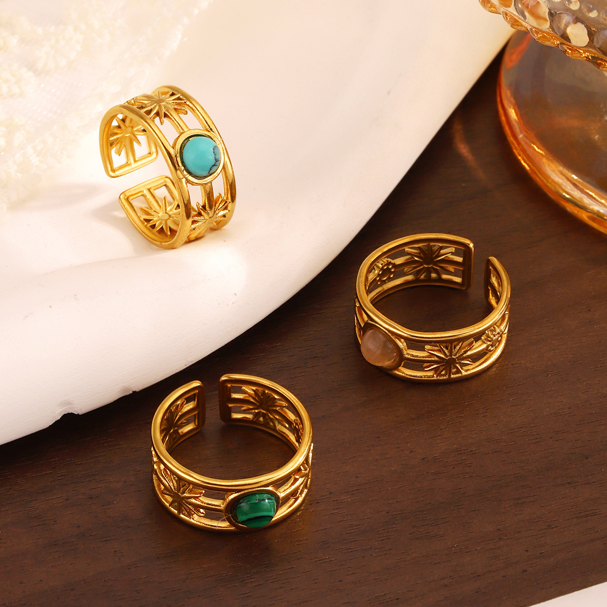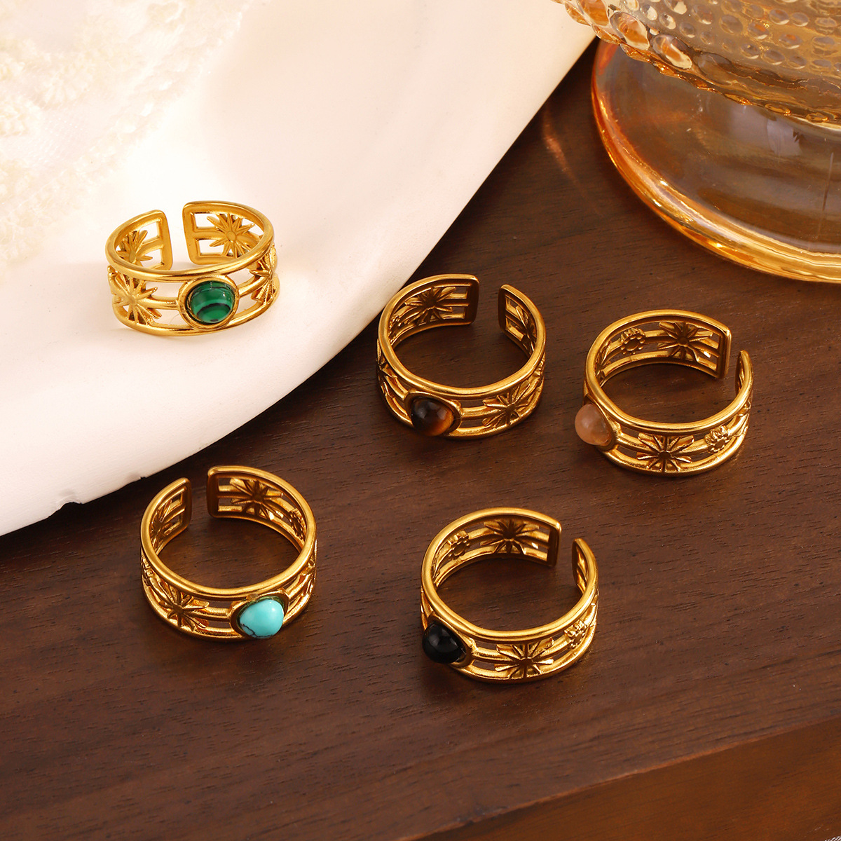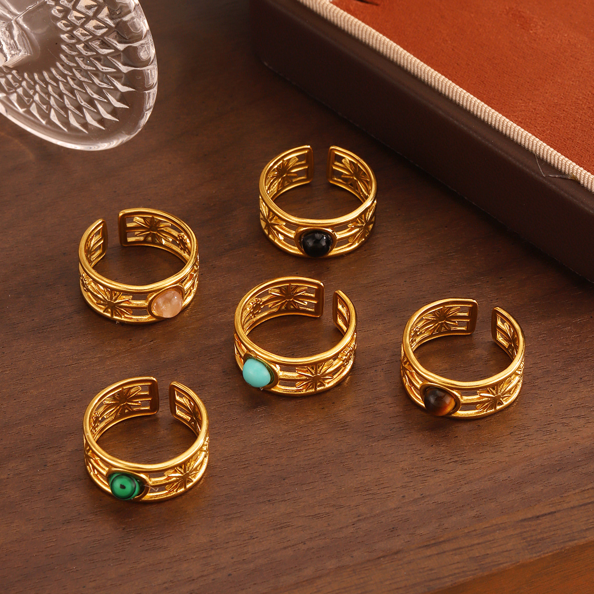 Anillos de Gemas, acero inoxidable 304, con Piedra natural, chapado, diferentes materiales para la opción & para mujer & hueco, dorado, Vendido por UD