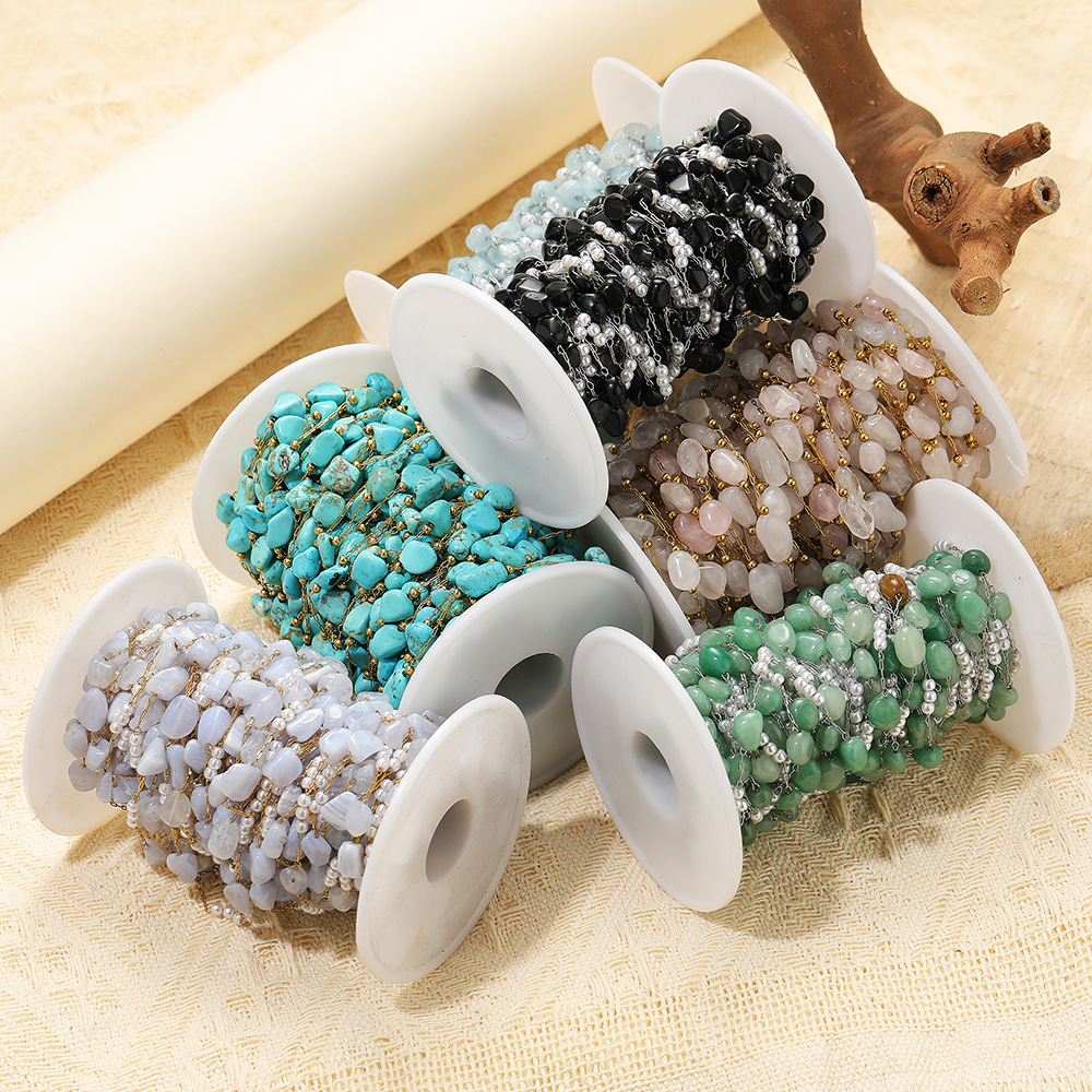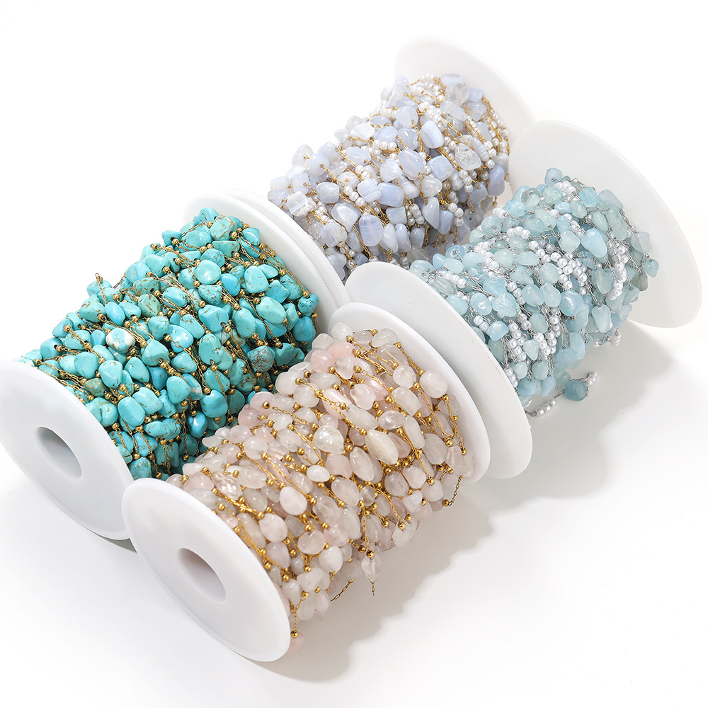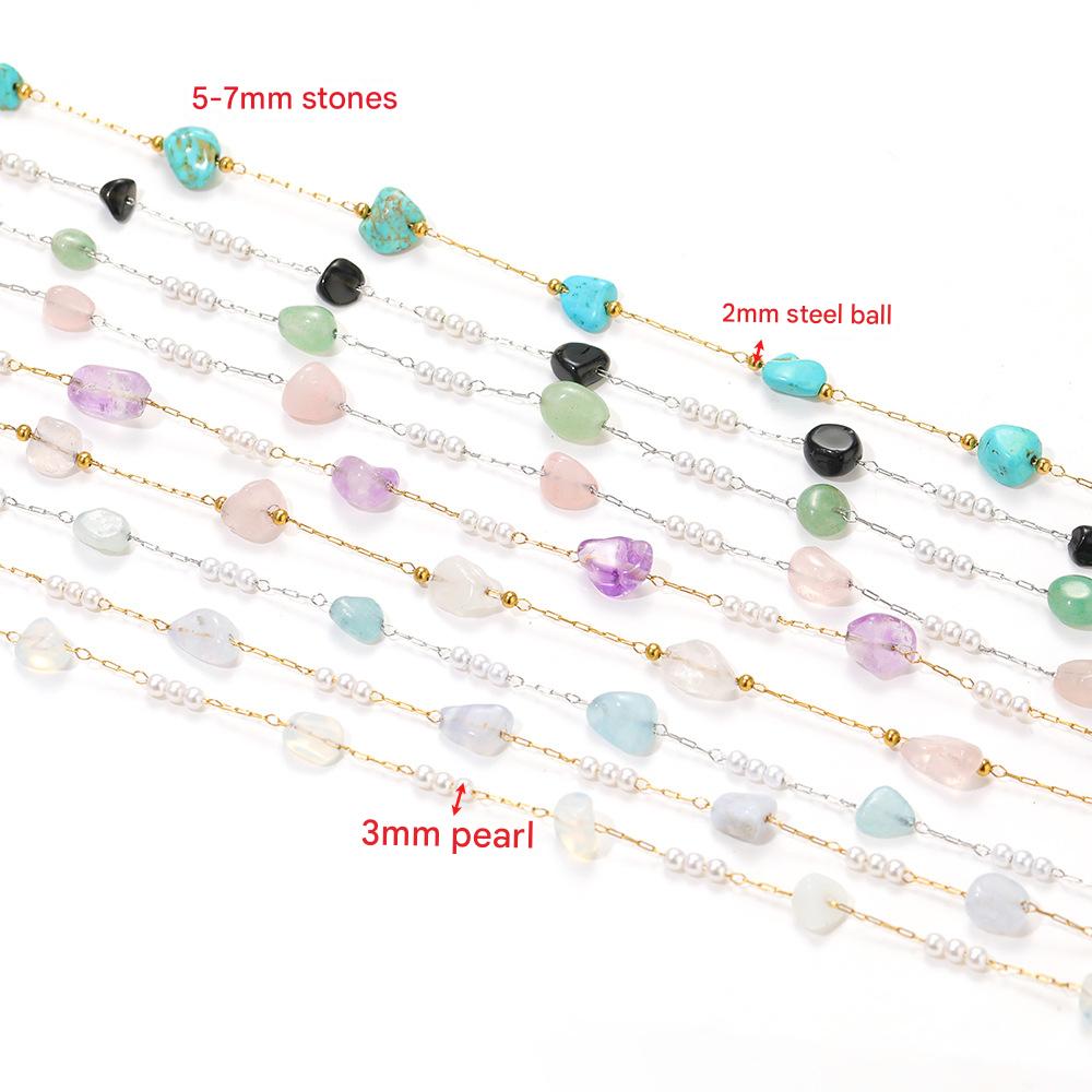 Cadena de cuentas de piedras preciosas, acero inoxidable 304, con Piedra natural & Perlas plásticas, chapado en color dorado, Bricolaje, más colores para la opción, Vendido por m