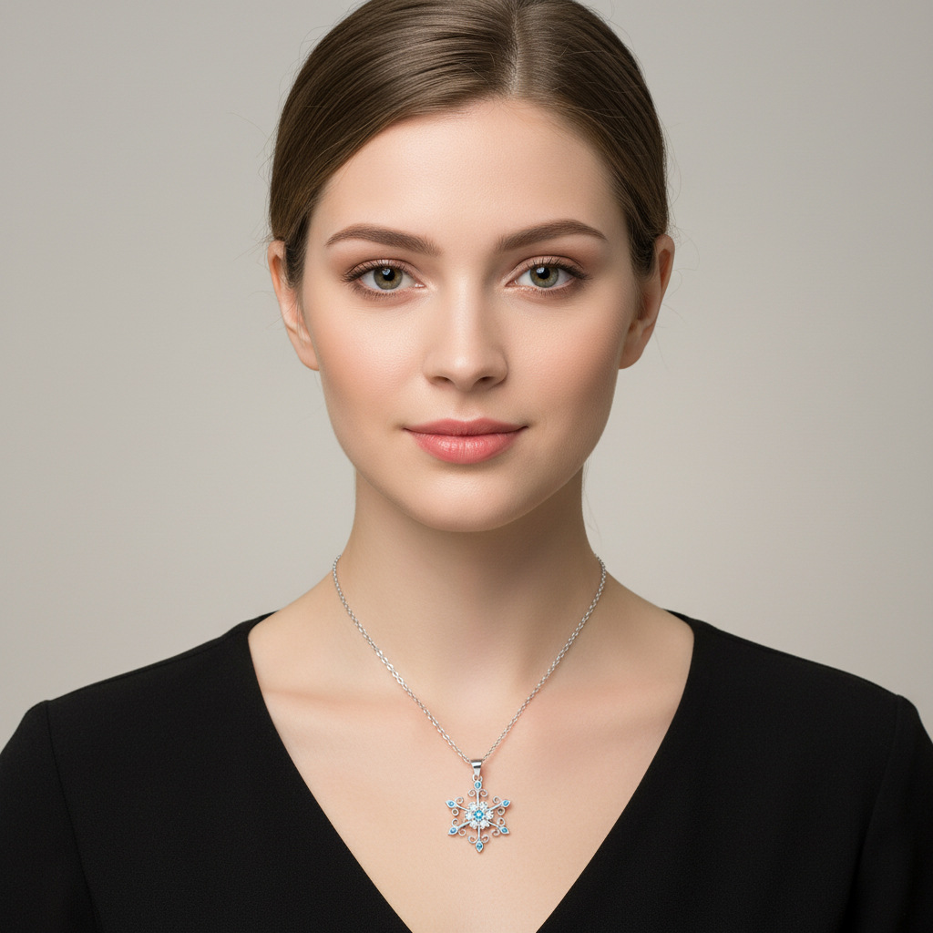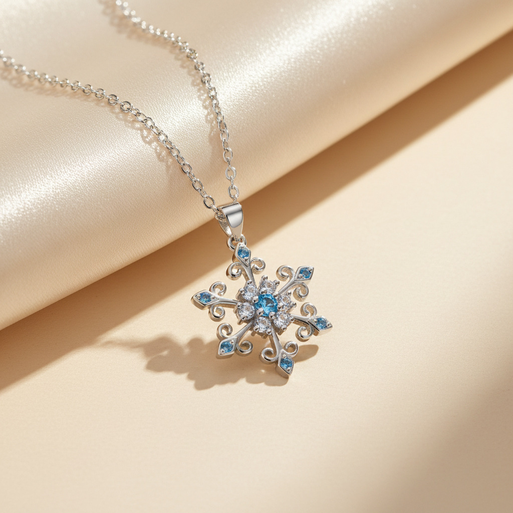 Circón cúbico Micro pavimentar collar de cobre amarillo, metal, Copo de Nieve, chapado en color de platina, cadena oval & micro arcilla de zirconia cúbica & para mujer, azul, 17.60x20.30mm, Vendido para aproximado 45 cm Sarta